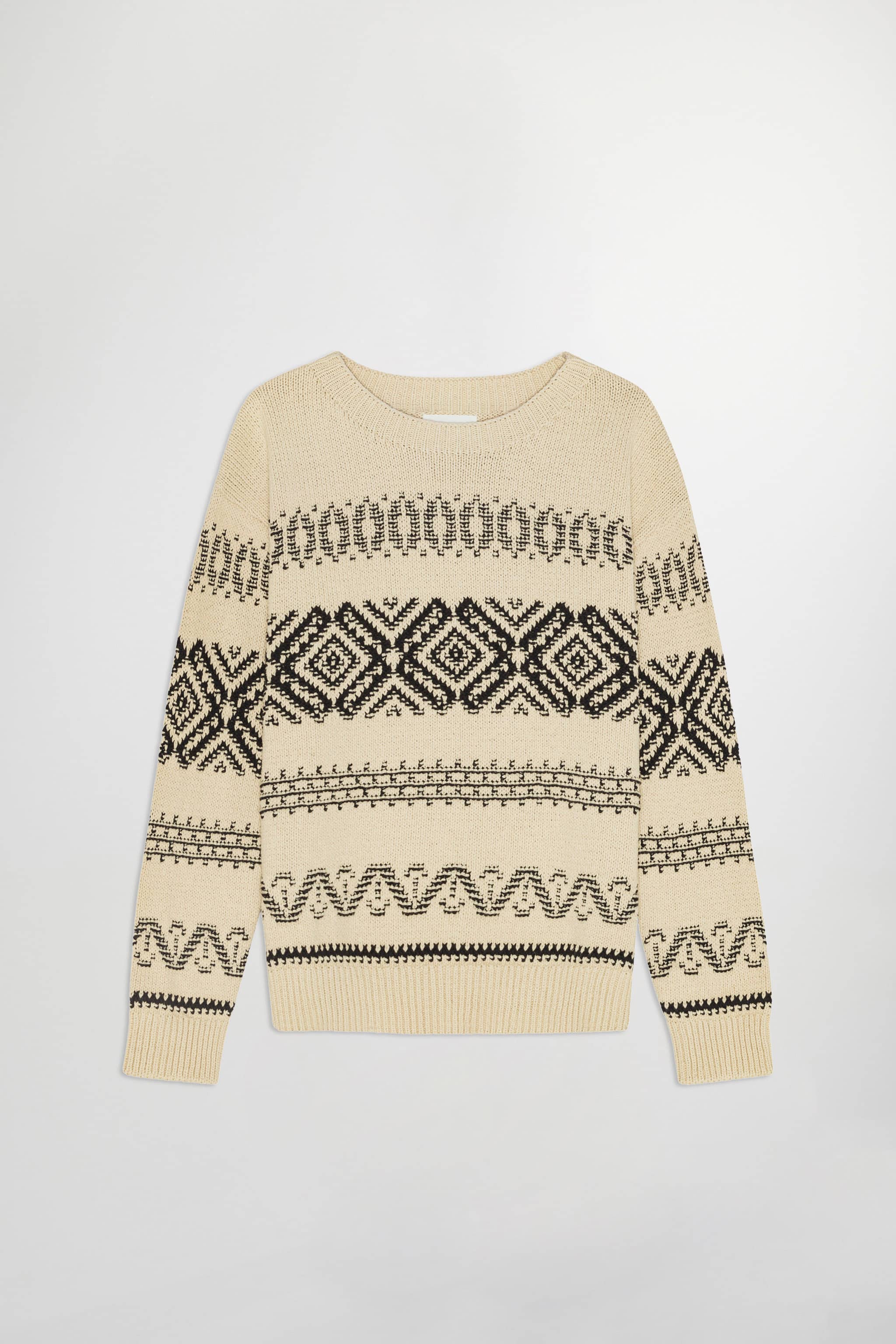 Chunky jacquard-patterned crew neck sweater in a relaxed fit made from organic cotton.