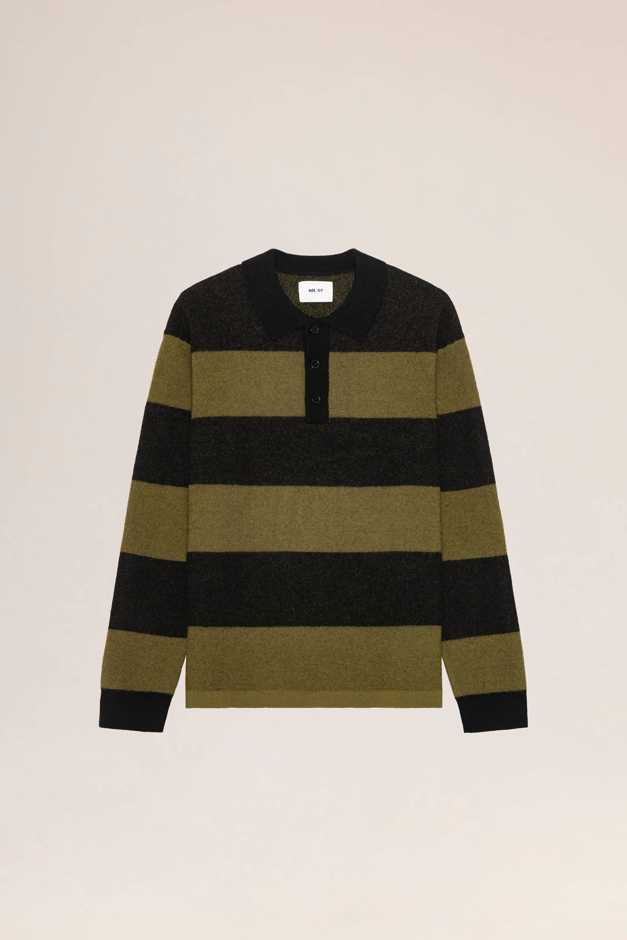 Classic rugby-style polo in boiled wool, featuring a traditional polo collar and finished with Mother-of-Pearl buttons.