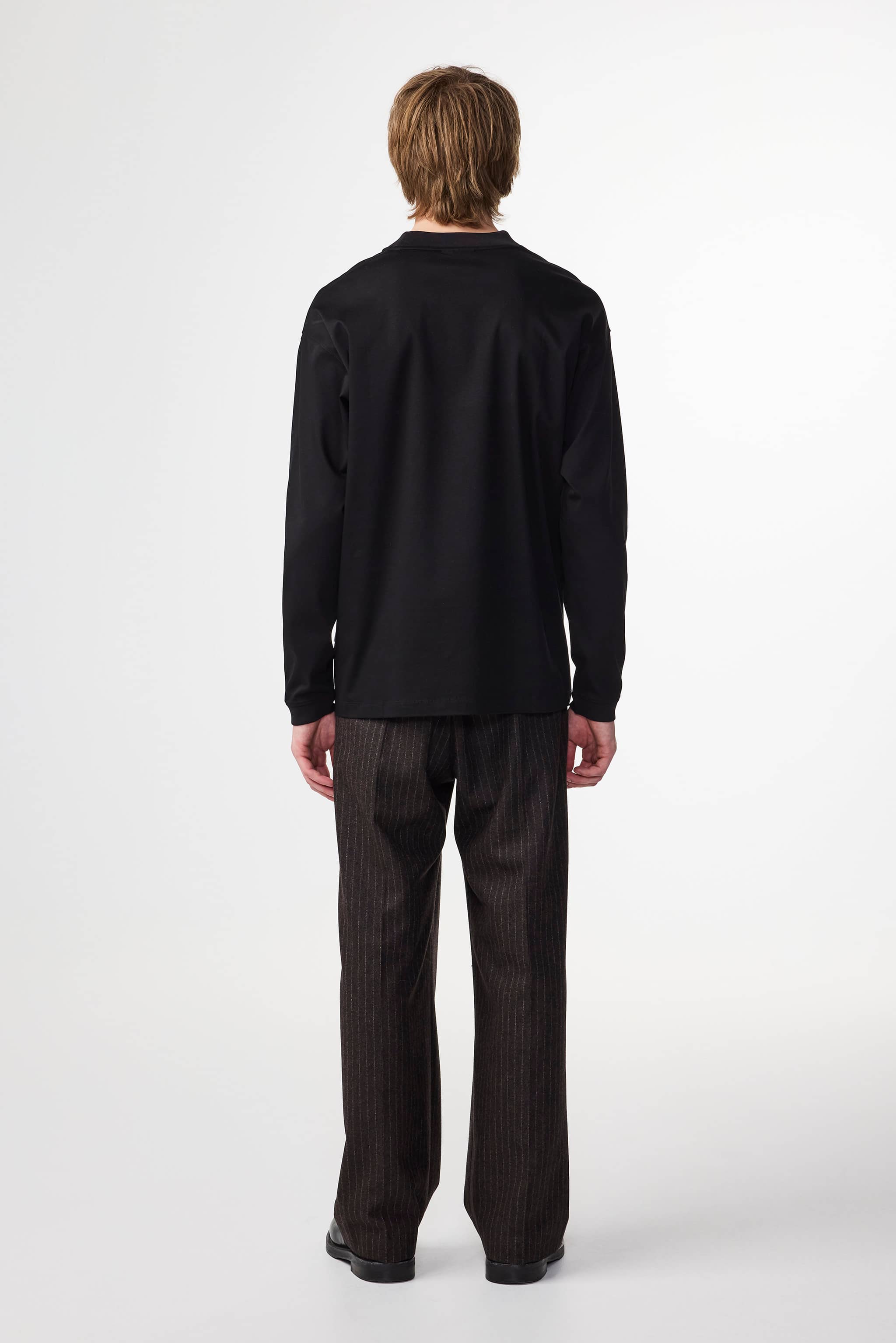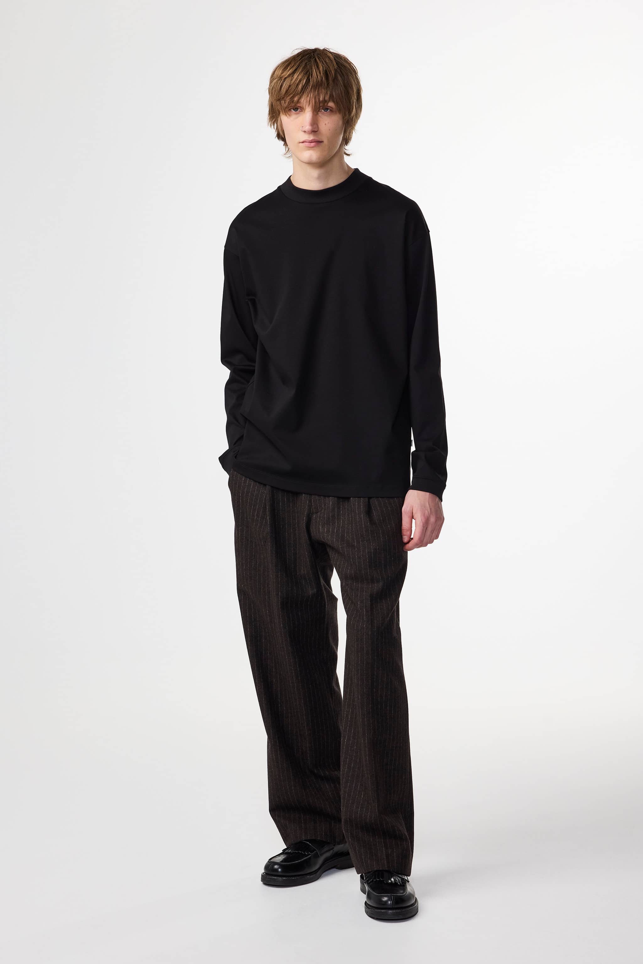 Soft long sleeved tee crafted in organic mercerized cotton. Finished with 1x1 neck rib and cuffs topped with twin-needle stitching details.