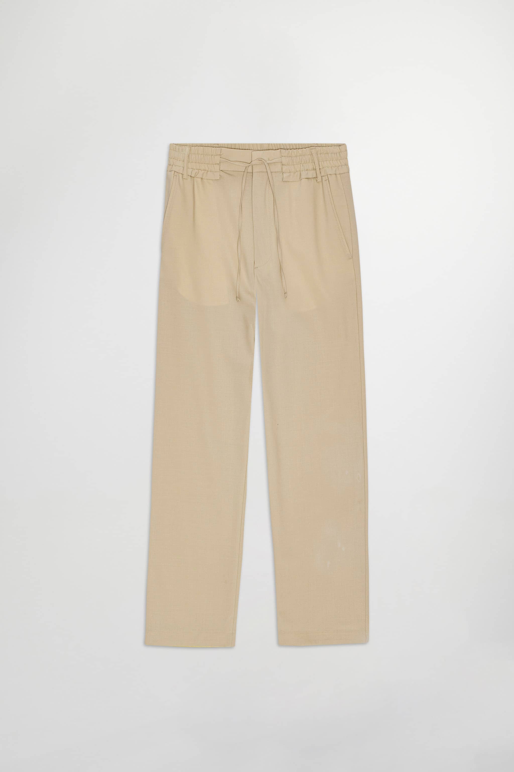 Casual dress trousers in a relaxed fit and straight leg, crafted in 180 g/m2 in a technical wool blend fabric with a touch of stretch and a high waist, a hook and eye closure, and an elasticated waistband with a drawstring closure.