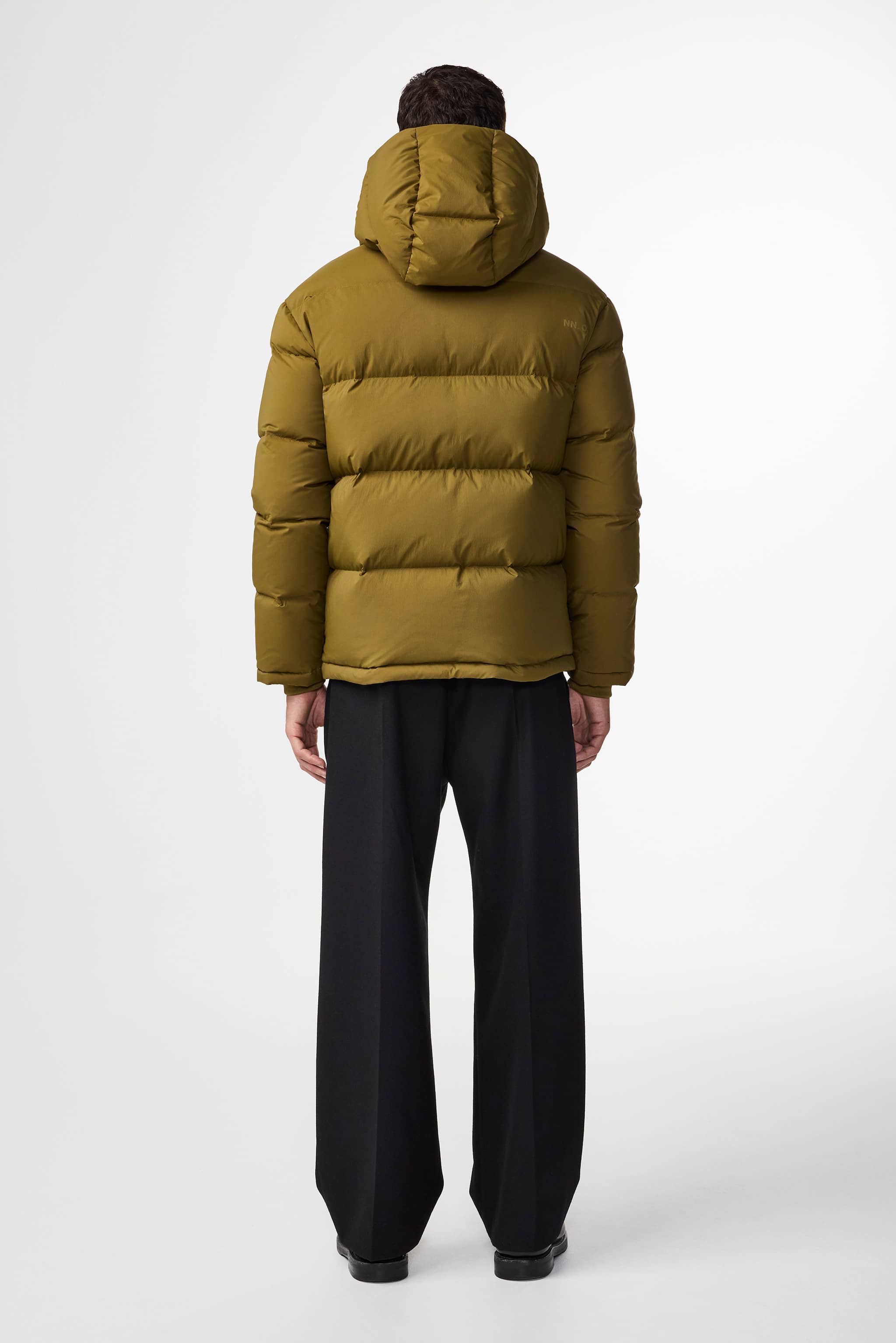 Hip-length winter puffer jacket is made from PFC-free recycled polyamide and is filled with duck down feathers. It is equipped with a hood as well as storm cuffs for extra protection against wind and water. The two front pockets are lined with soft baby fleece and there is a subtle NN.07 logo print on the back of the jacket.
