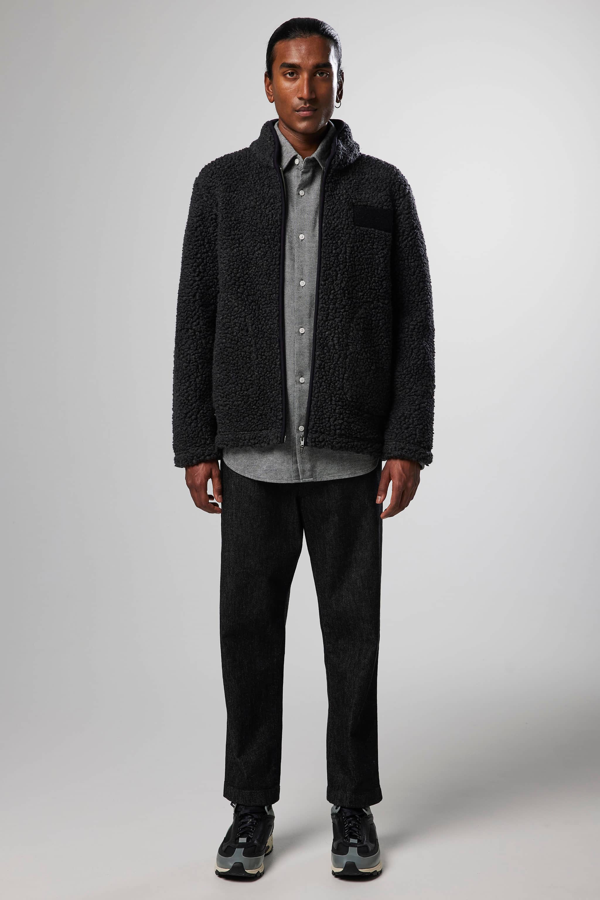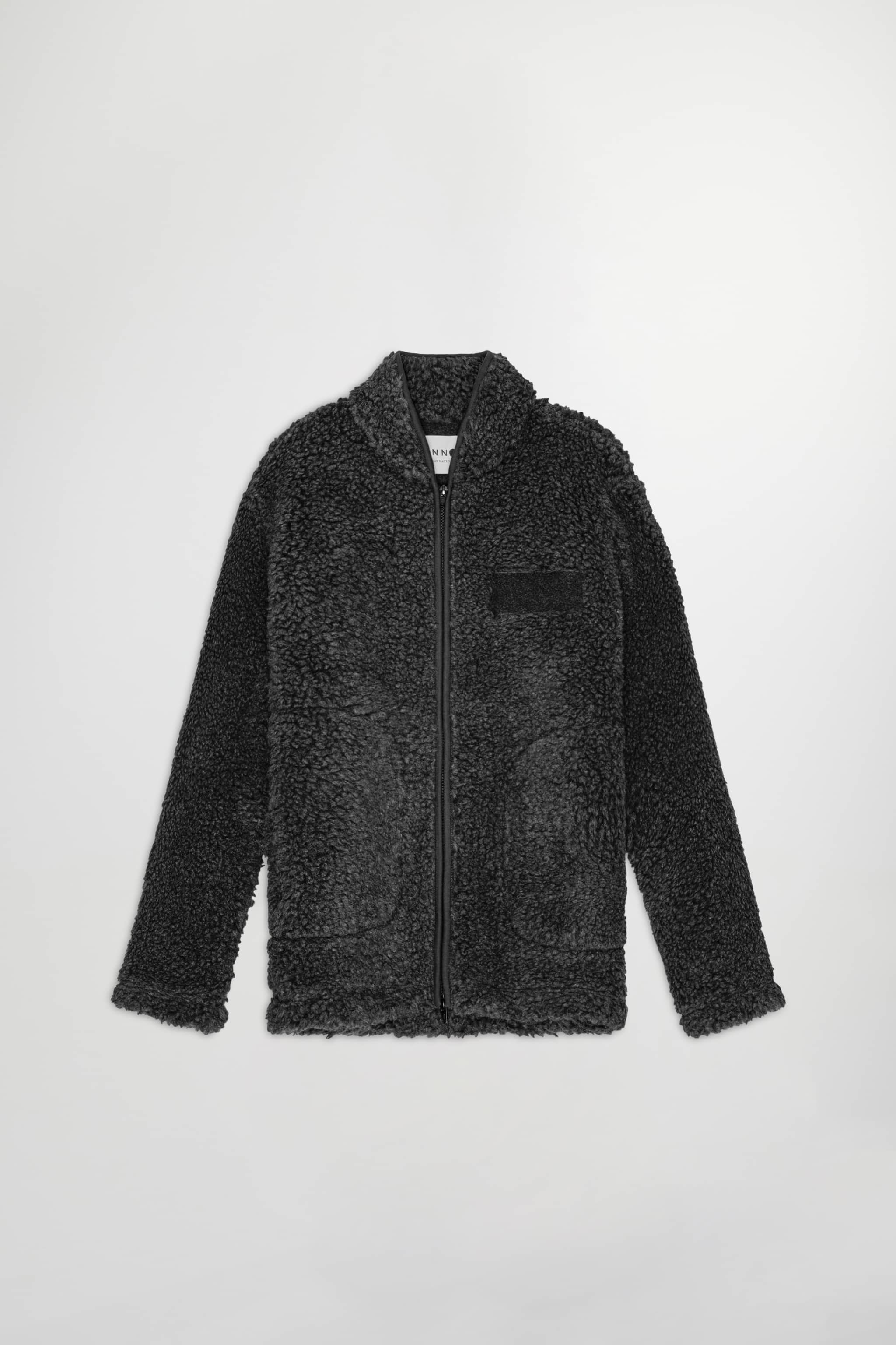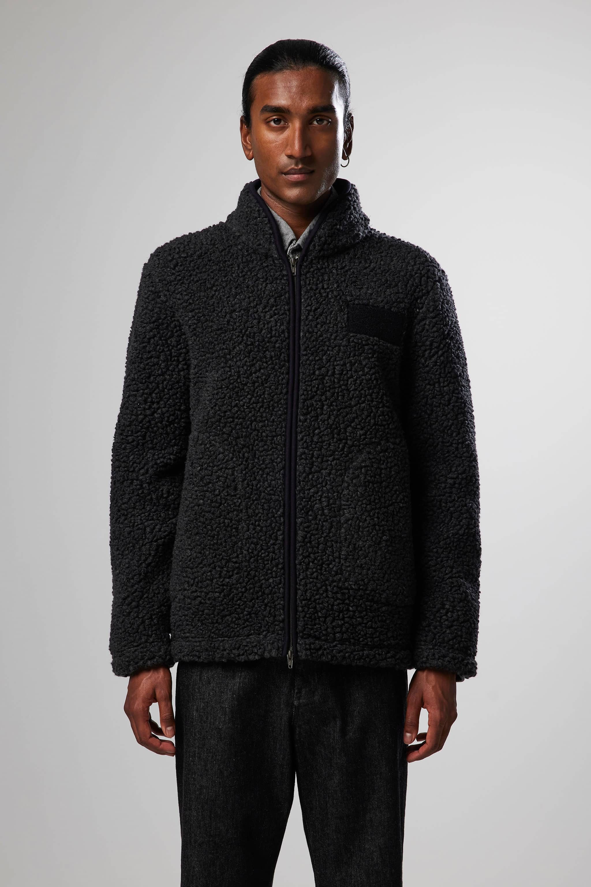 Heavy duty sherpa fleece designed with a two-way metal zipper. Crafted in a wool blend. Complete with a high collar for extra warmth.