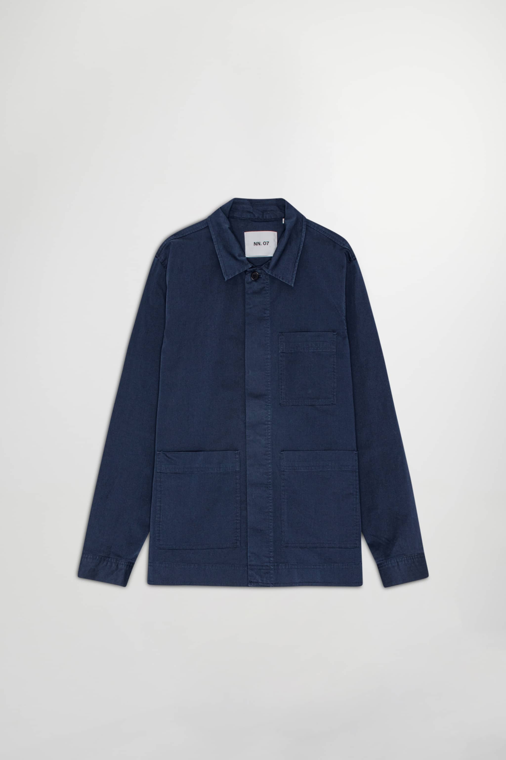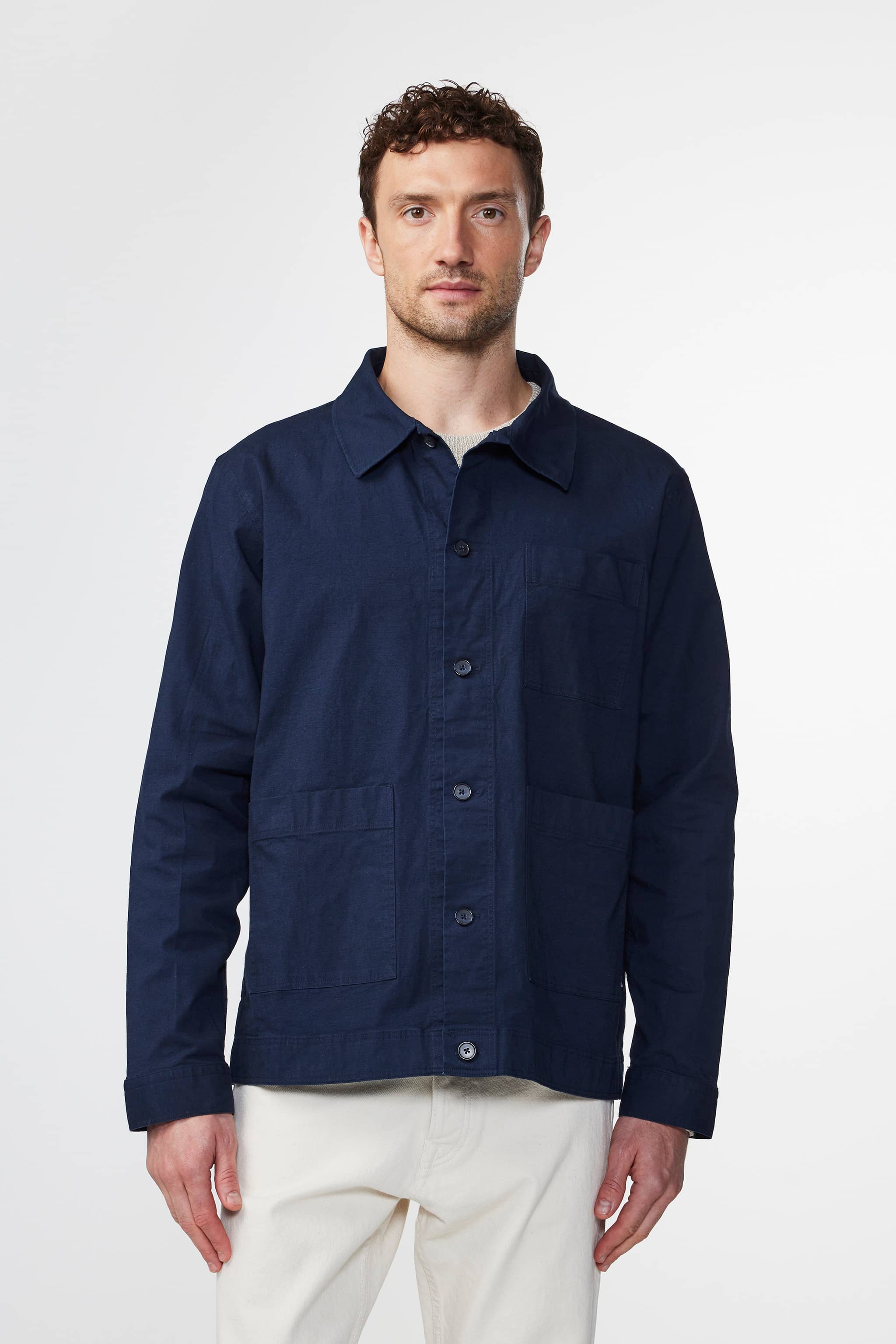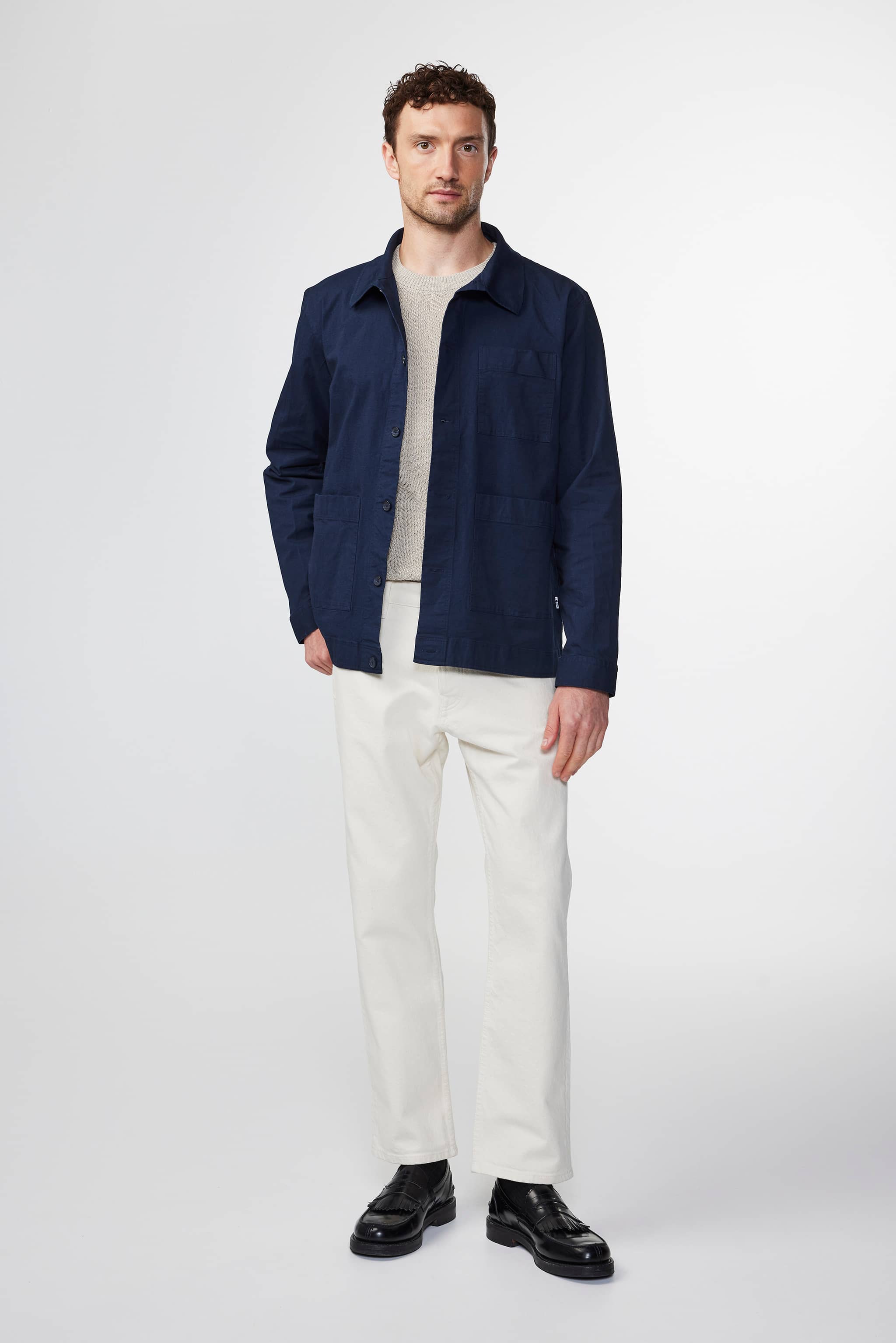 Workwear-inspired overshirt crafted in an organic cotton and TENCEL™ lyocell blend with a touch of stretch, designed with a soft collar, a single chest pocket, and twin patch pockets at the waist.
