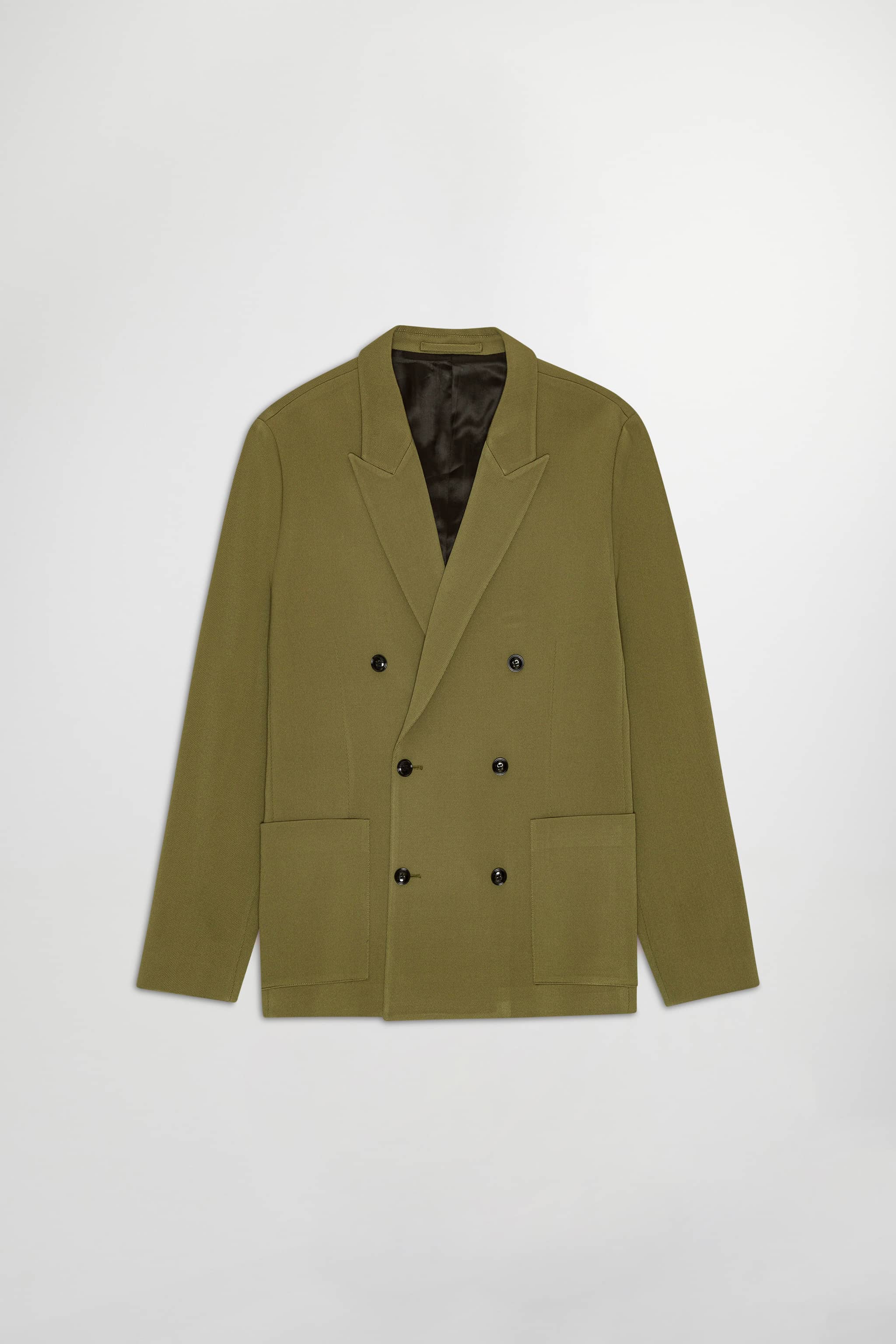 Relaxed fit blazer crafted from a luxurious certified wool twill blend with a touch of stretch.