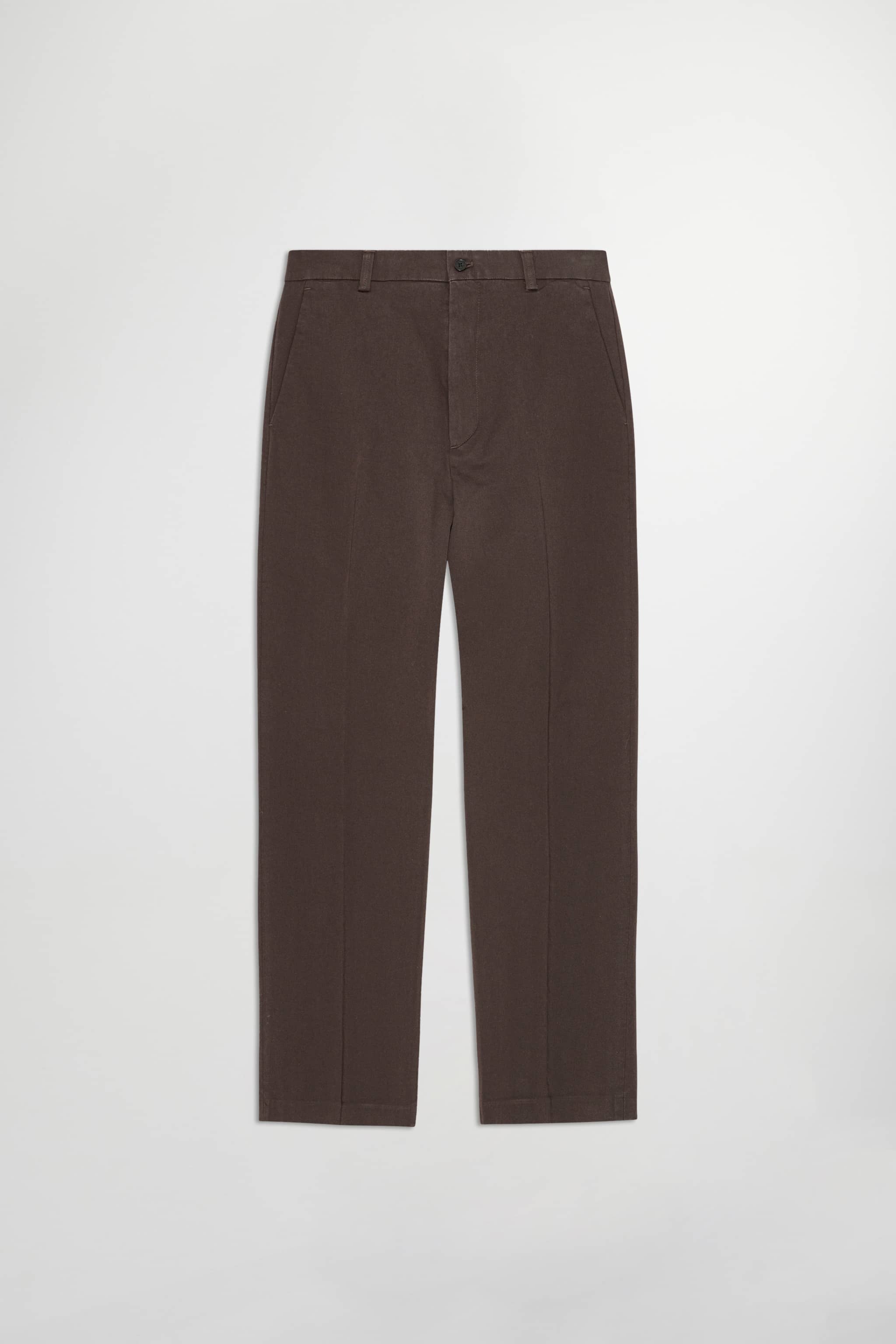 A pair of relaxed, straight-leg trousers crafted in a soft satin 220 g/m2 organic cotton and TENCEL™ lyocell blend with a touch of stretch. Tailored with slanted side pockets and dual back welt pockets.
