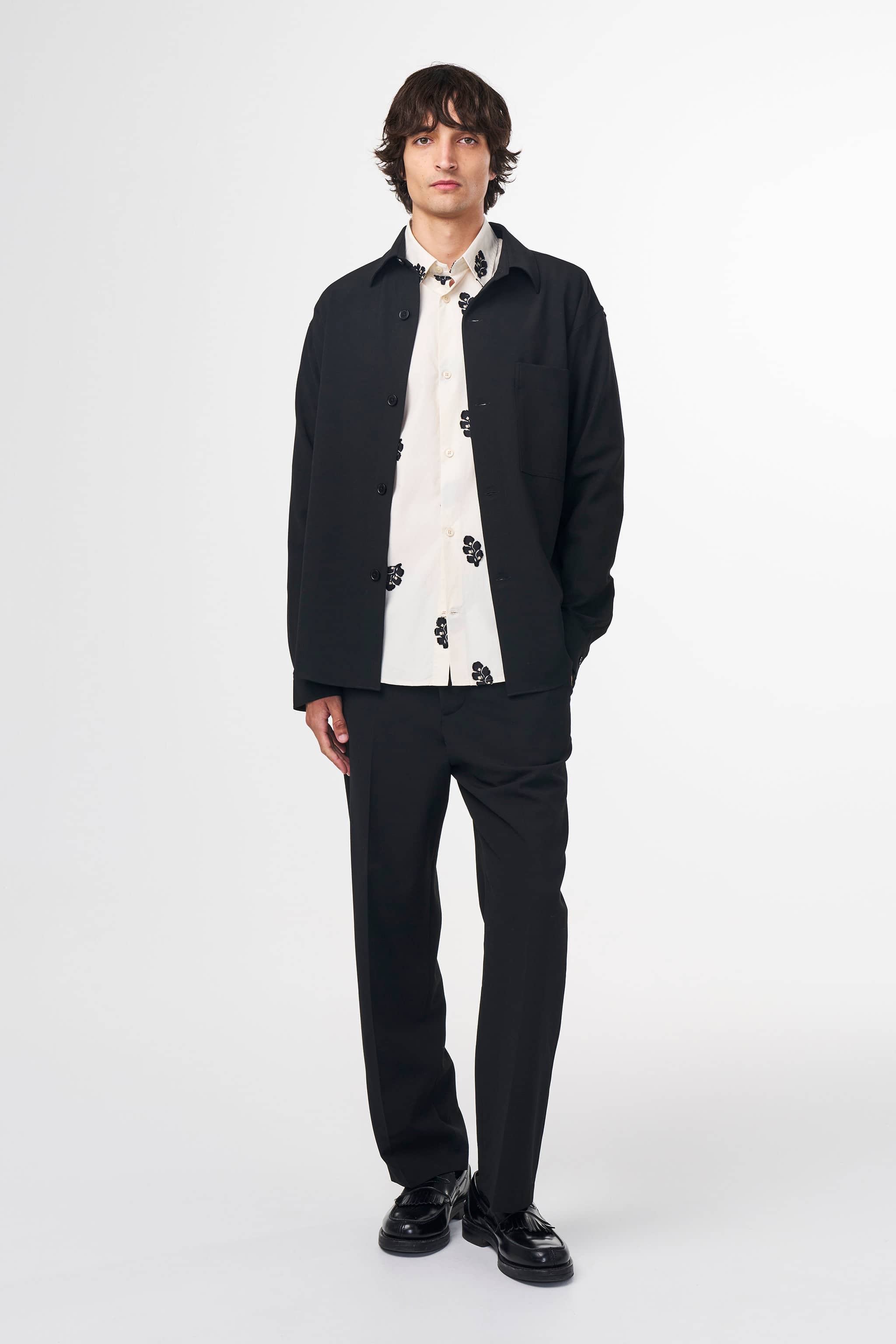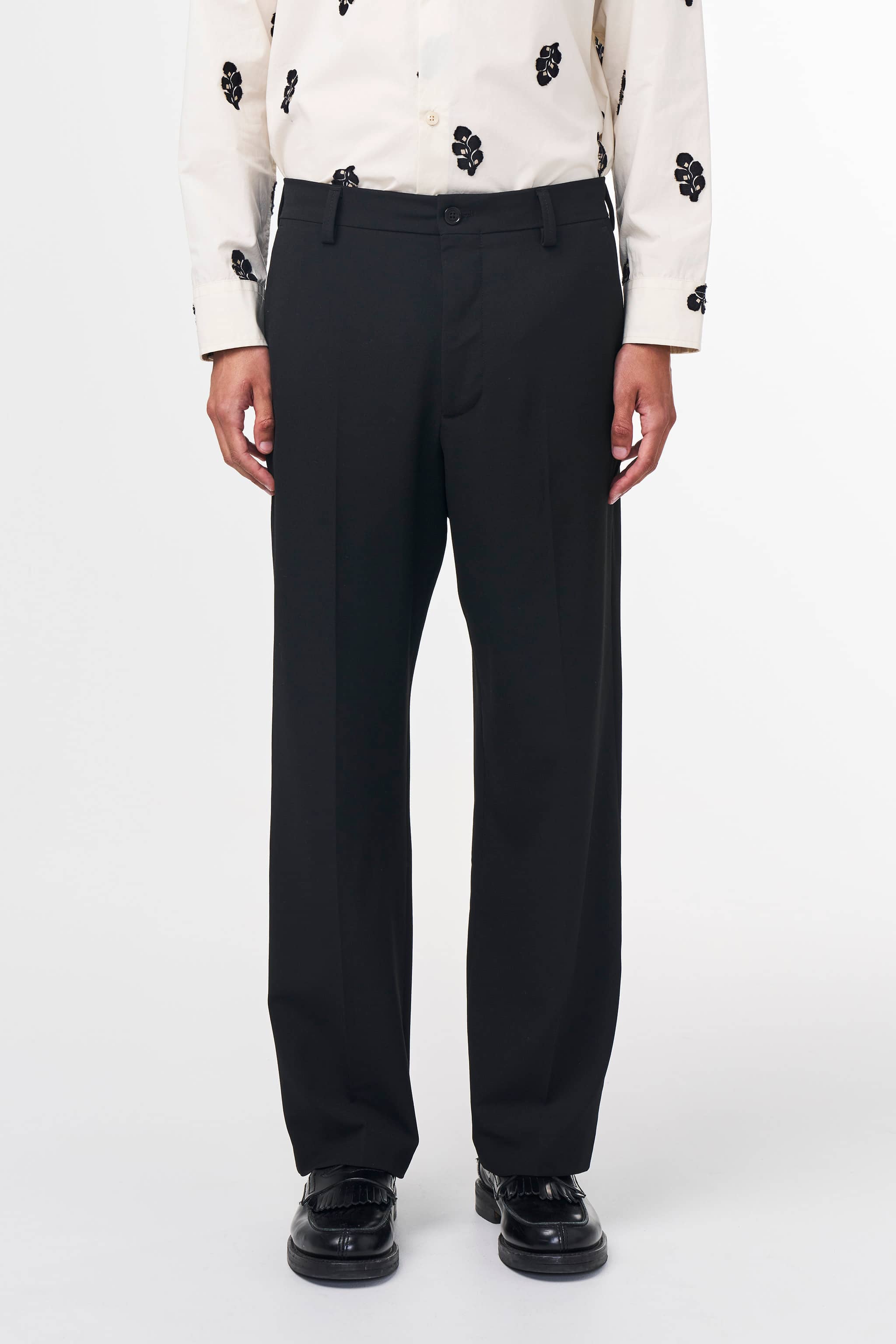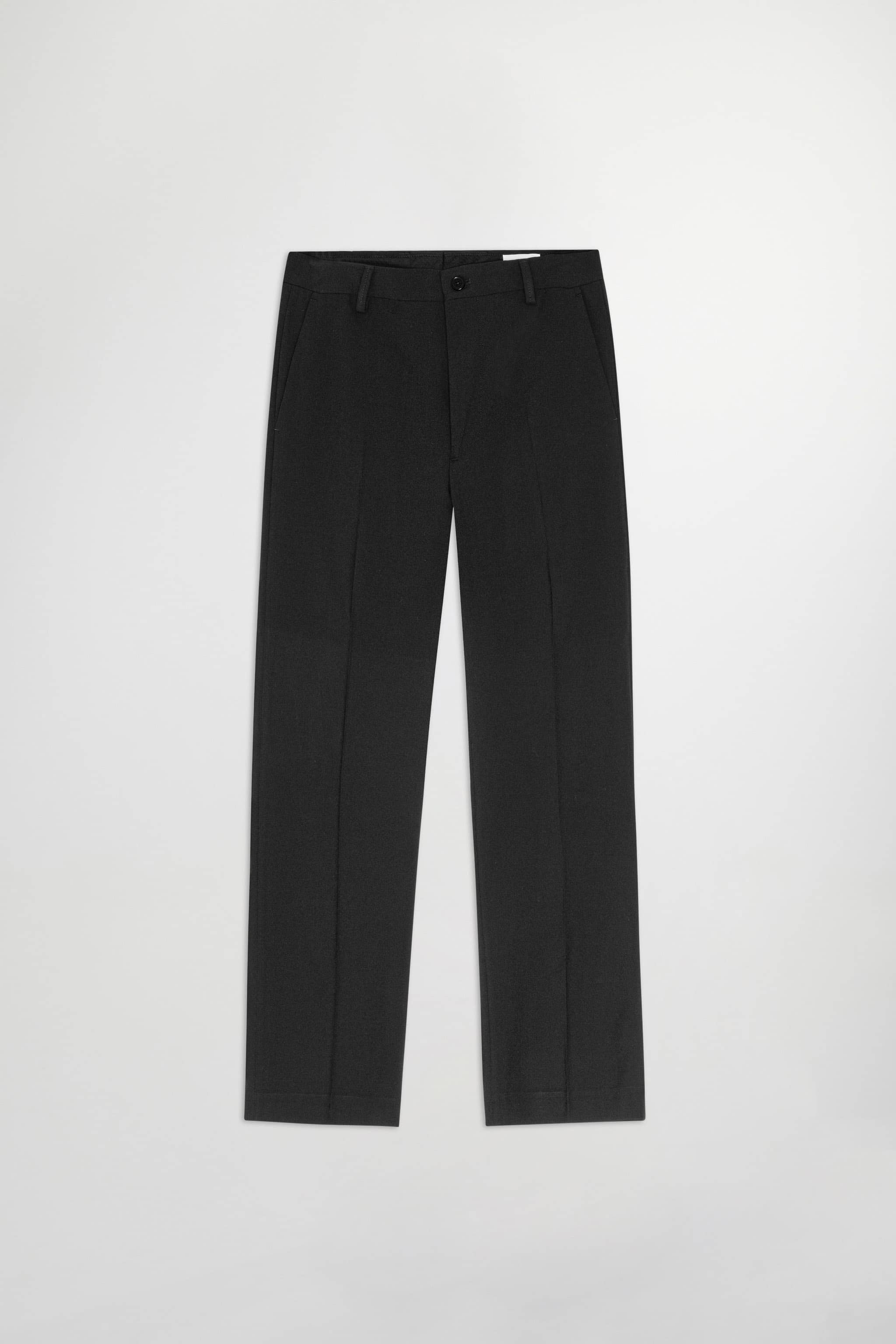 A pair of relaxed fit dress trousers with straight leg crafted in a 360 g/m2 lightweight recycled polyester and LENZING™ ECOVERO™ viscose blend with a touch of stretch. The trousers feature slanted side pockets and dual back welt pockets.