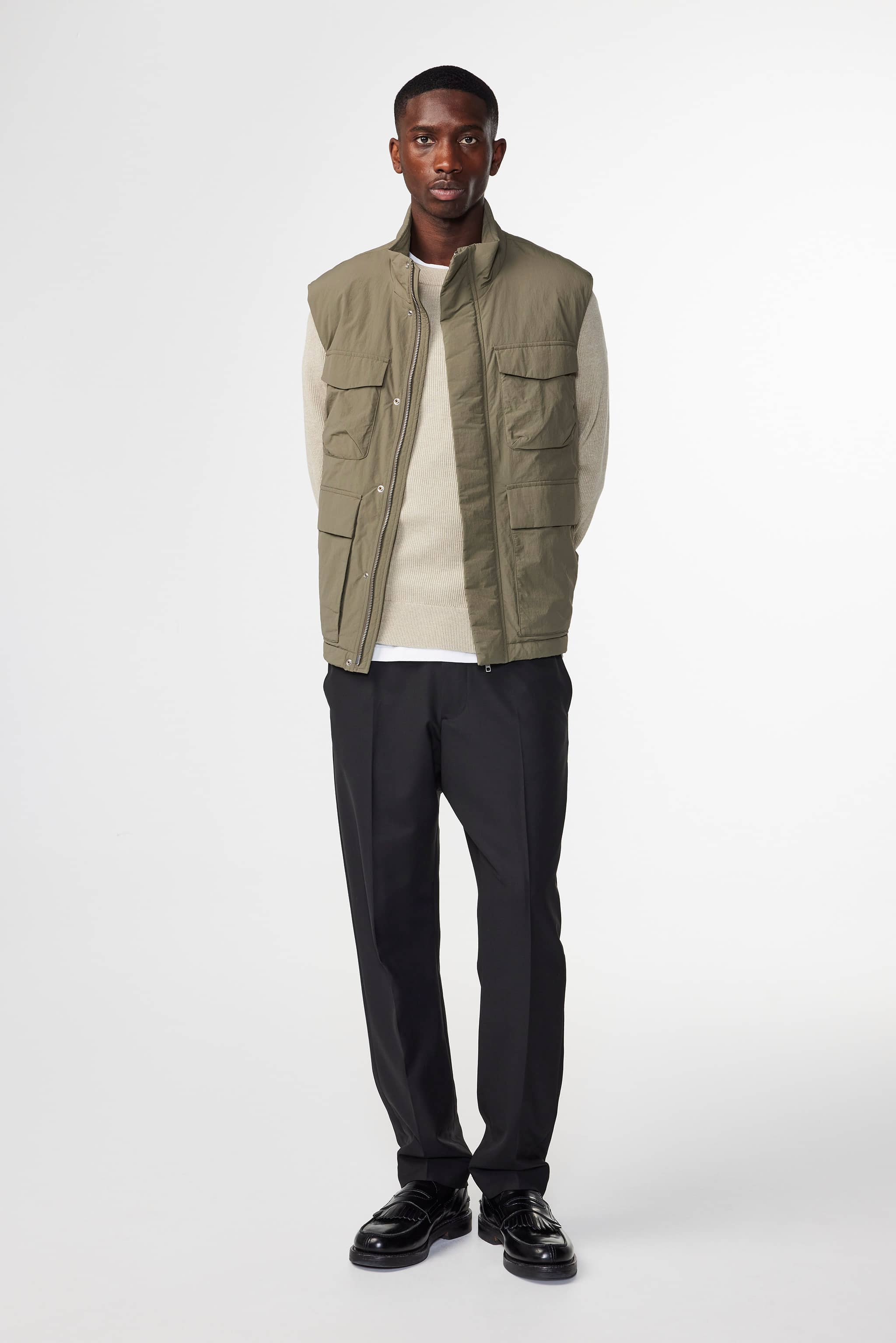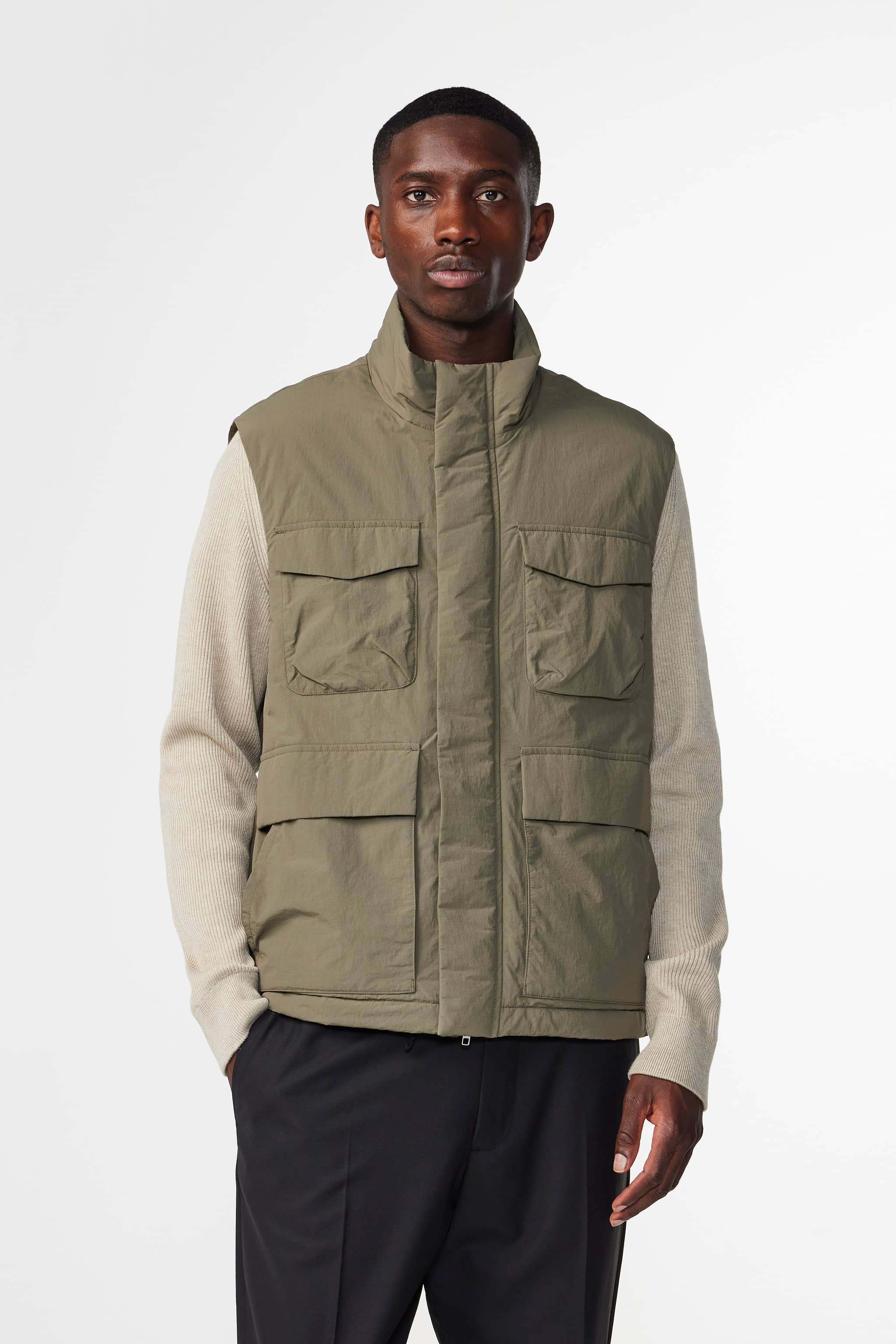 Transseasonal vest crafted from recycled polyamide with Primaloft filling with an NN.07 logo zipper and button closure, finished with four large patch pockets.