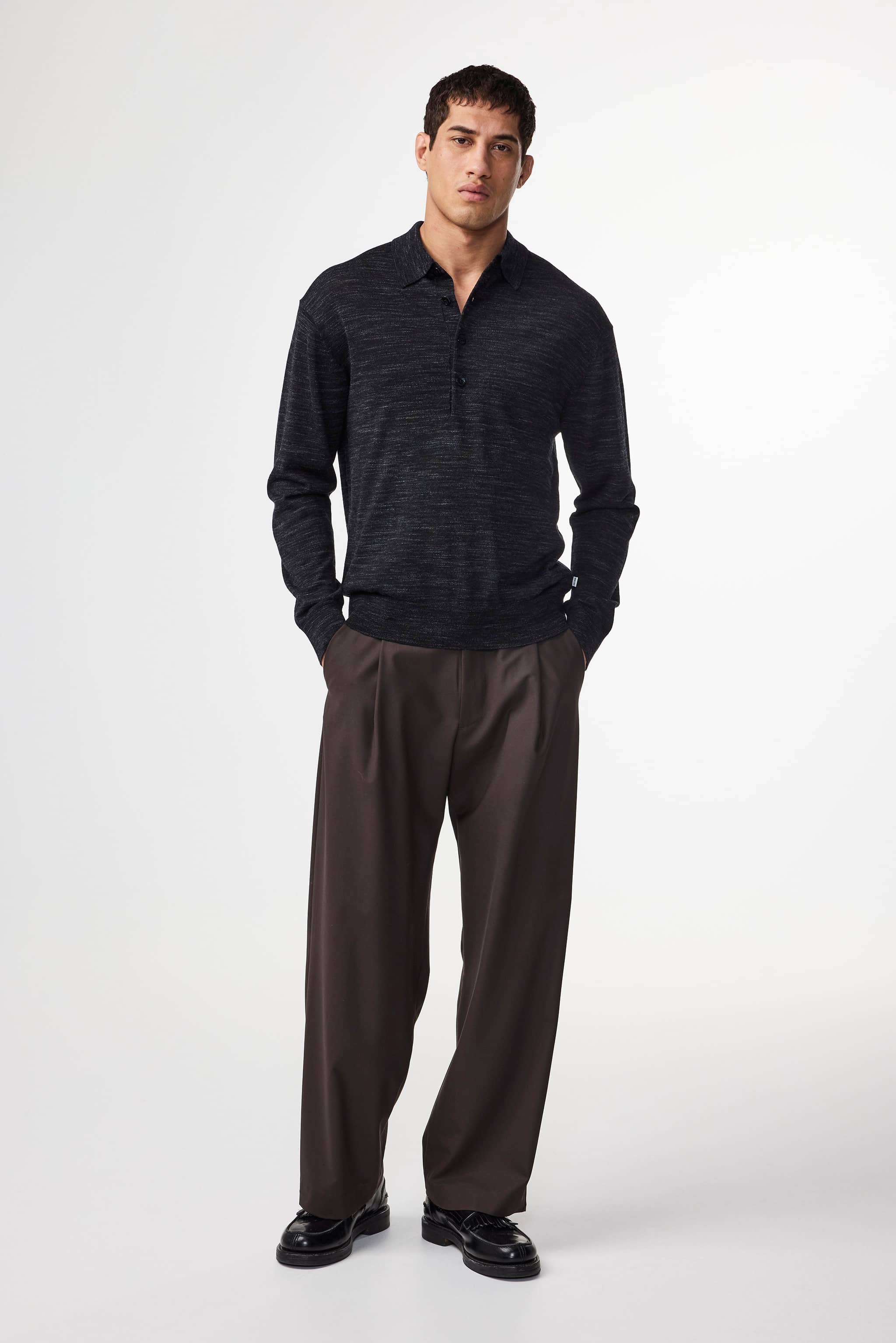 Minimalist polo crafted from soft, responsibly sourced wool yarn. The striped yarn creates a clean, tonal stripe effect. Designed in a relaxed fit and finished with mother-of-pearl buttons.