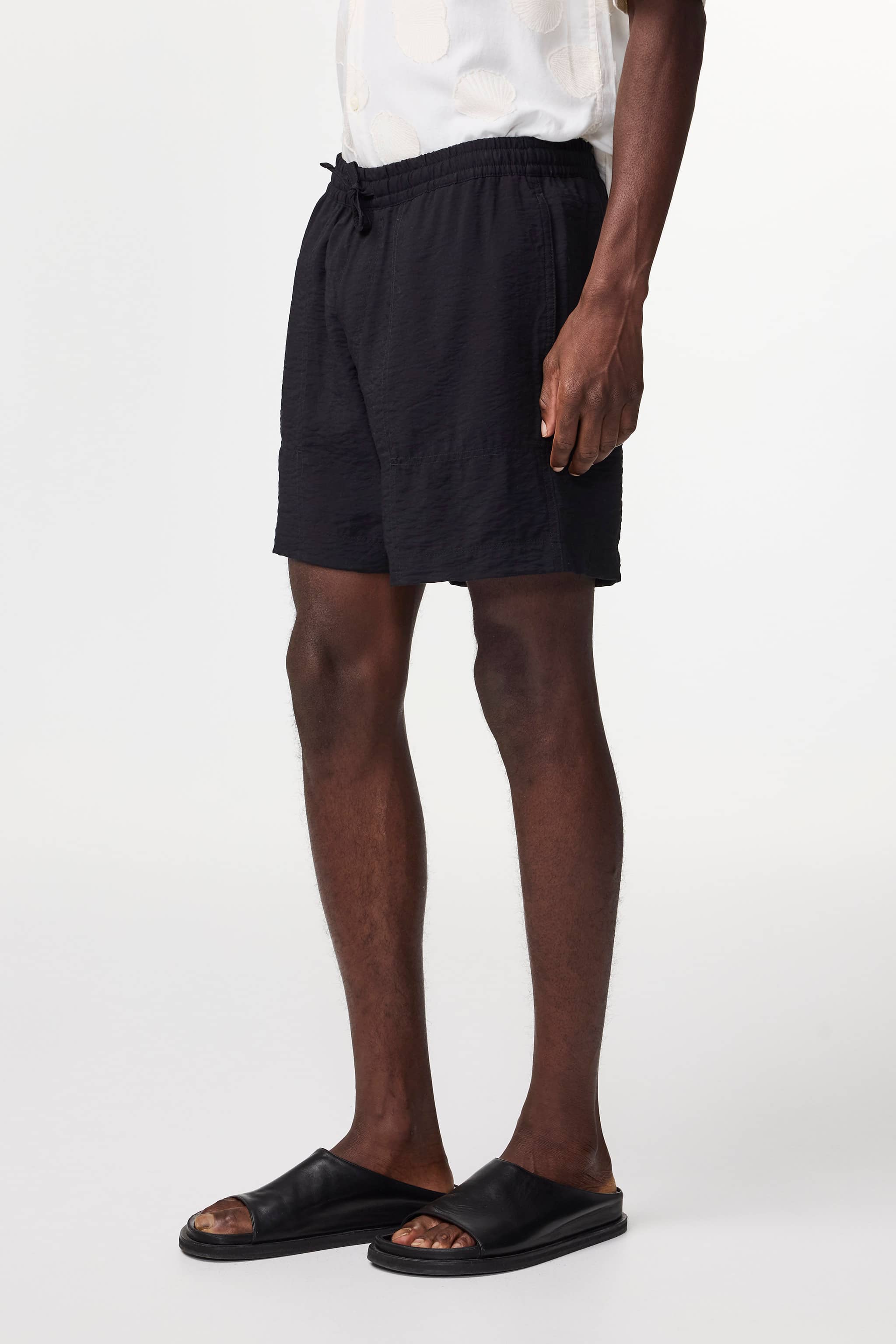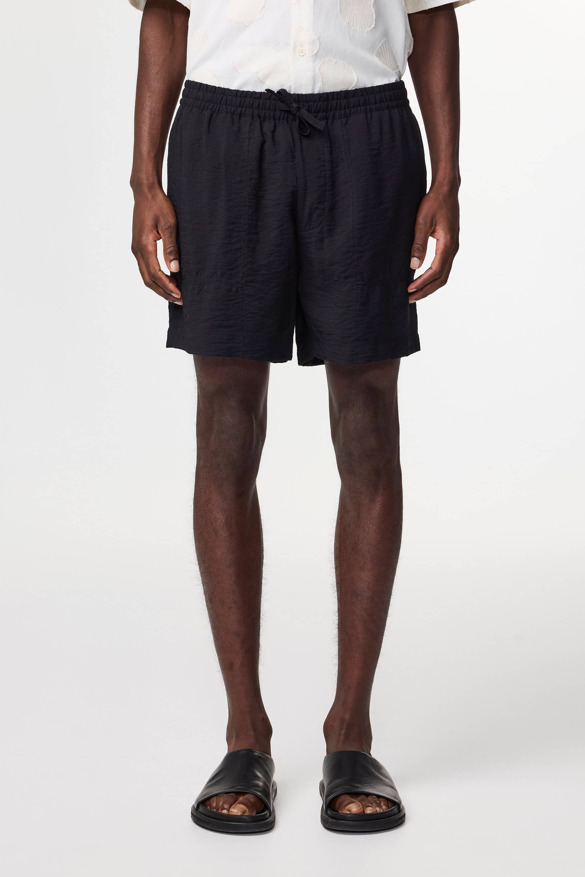 Comfortable shorts crafted in a soft Modal blend with an elasticated waistband and drawstring. The drapey fabric offers a relaxed handfeel, while practical details include side pockets and a back pocket with flap closure.