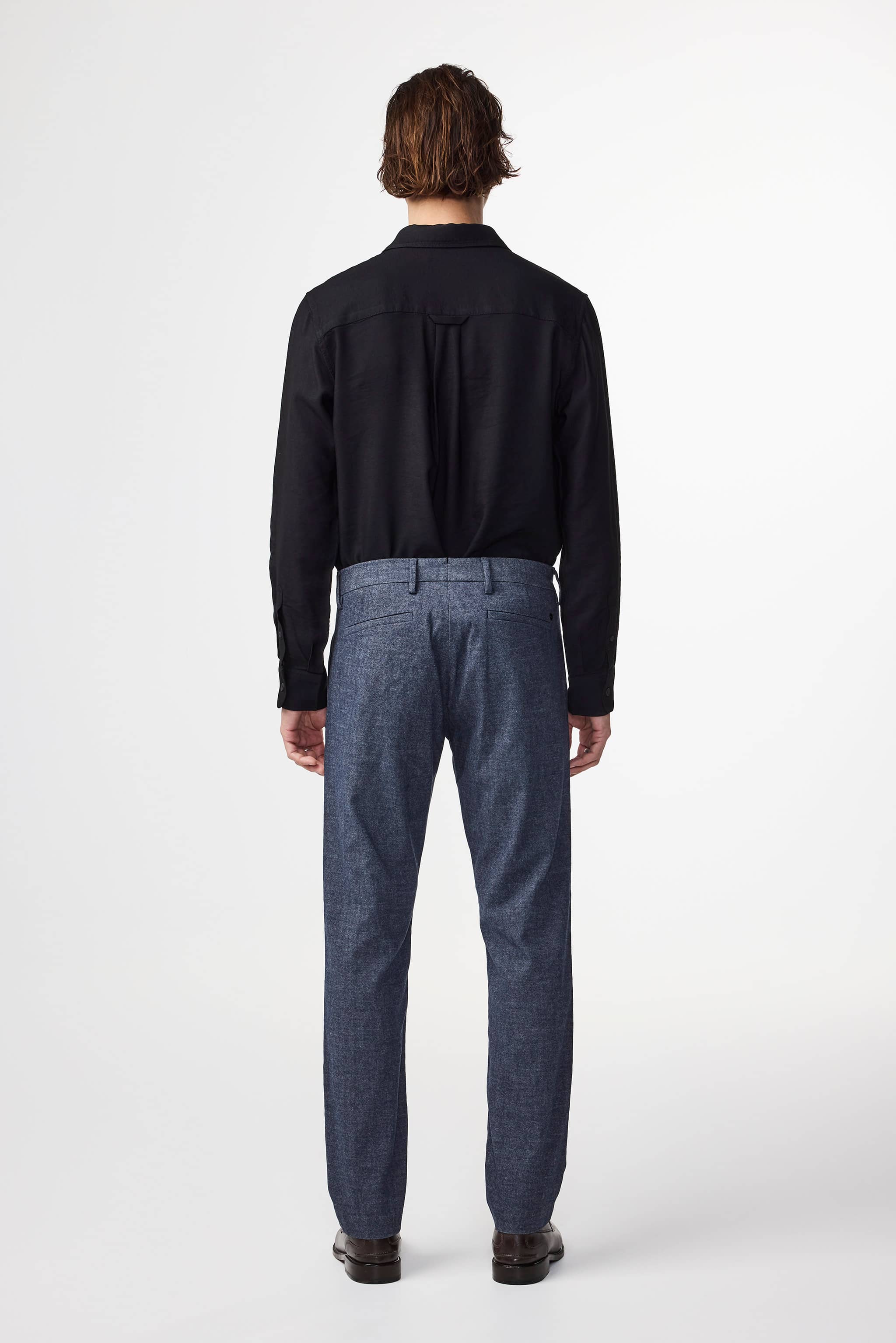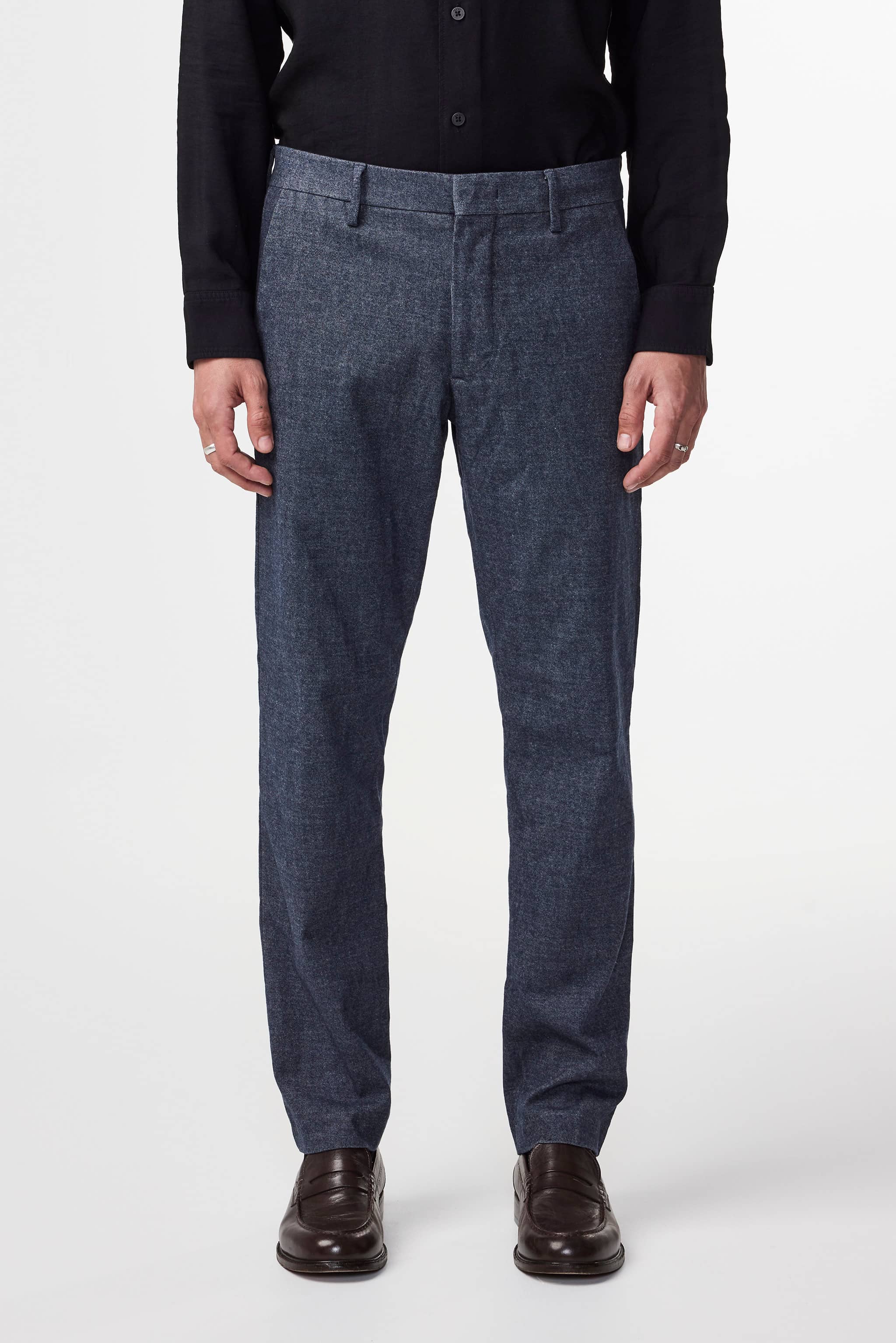 Slim tailored chino with tapered leg crafted in a 279 g/m2 brushed cotton twill melange blend with a touch of stretch for comfort, complete with a crisp crease and blind hem. Tailored details with a Cobrax hook and eye closure and welt flap pockets.