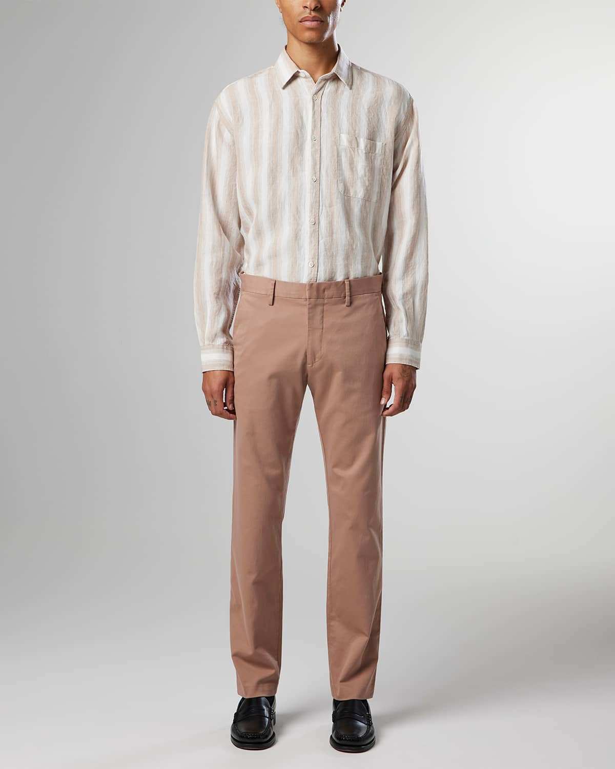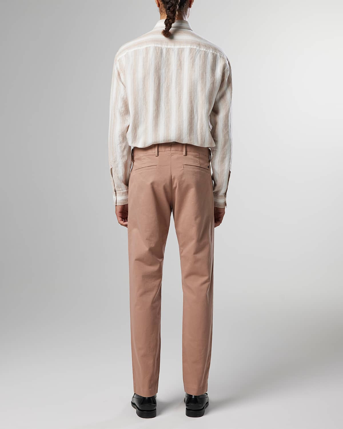 Slim tailored chino with tapered leg crafted in a 260 g/m2 soft organic cotton blend complete with a crisp crease and blind hem. Tailored details with a Cobrax hook and eye closure and welt pockets.