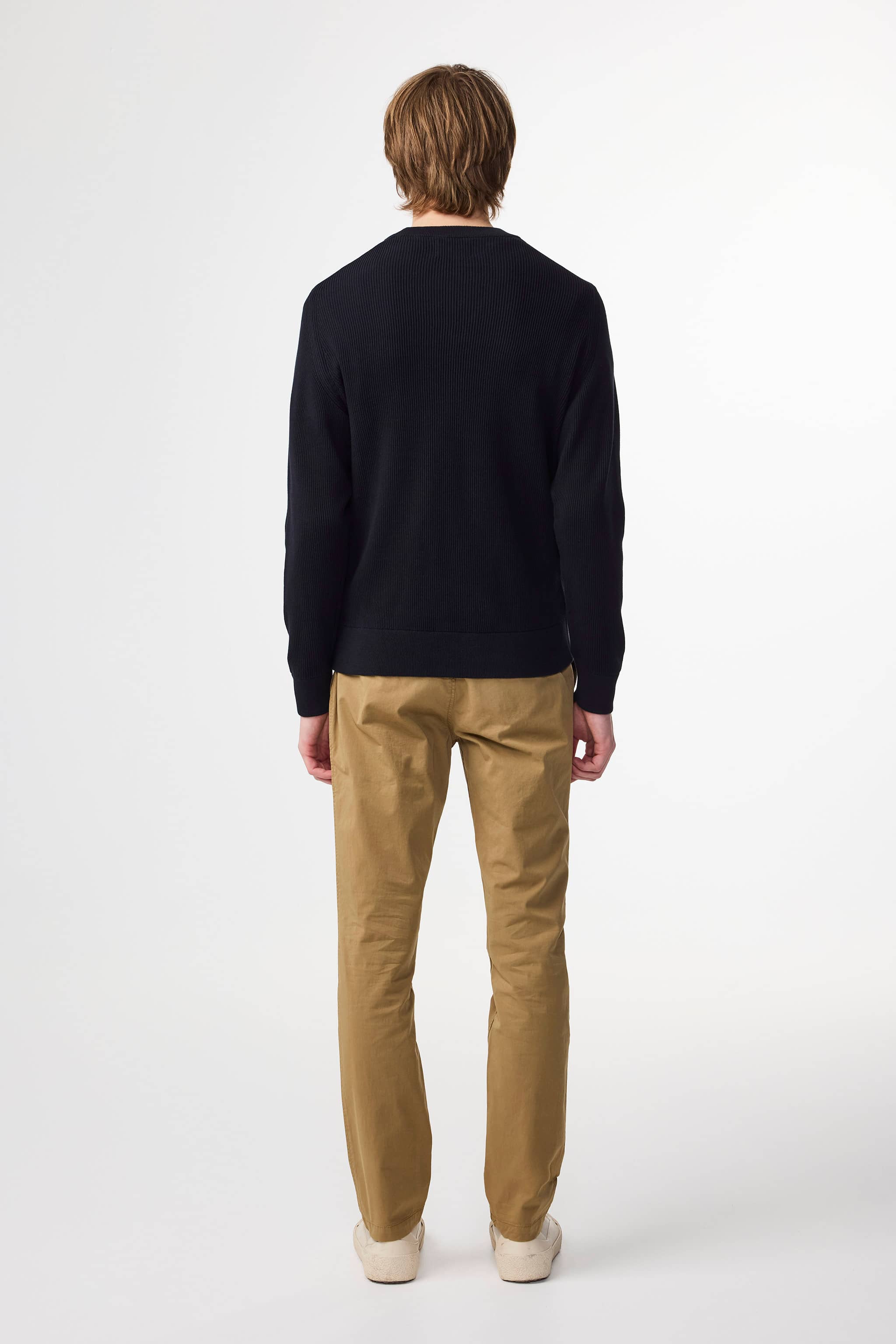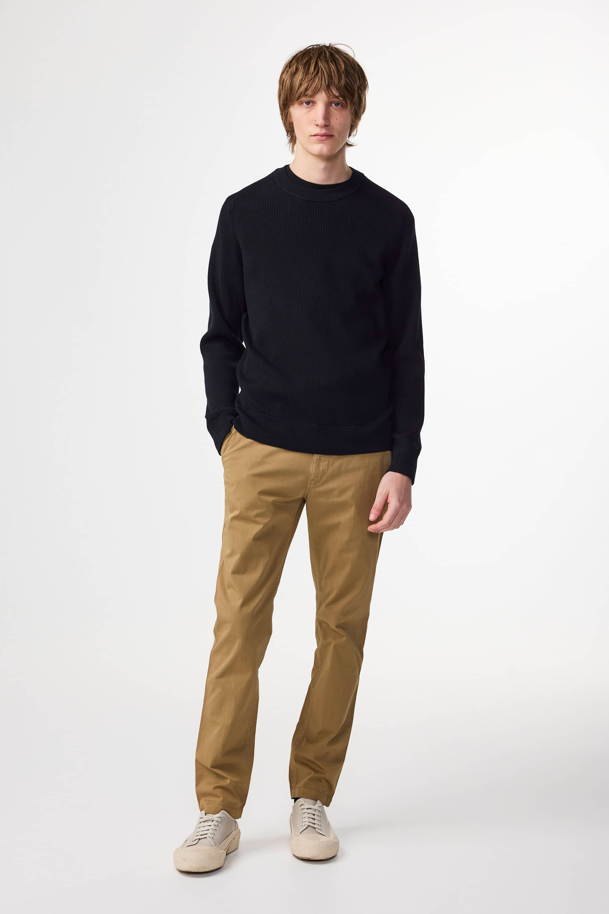 Regular fit chinos with a tapered leg in a Panama weave with a drapey handfeel and medium weight.