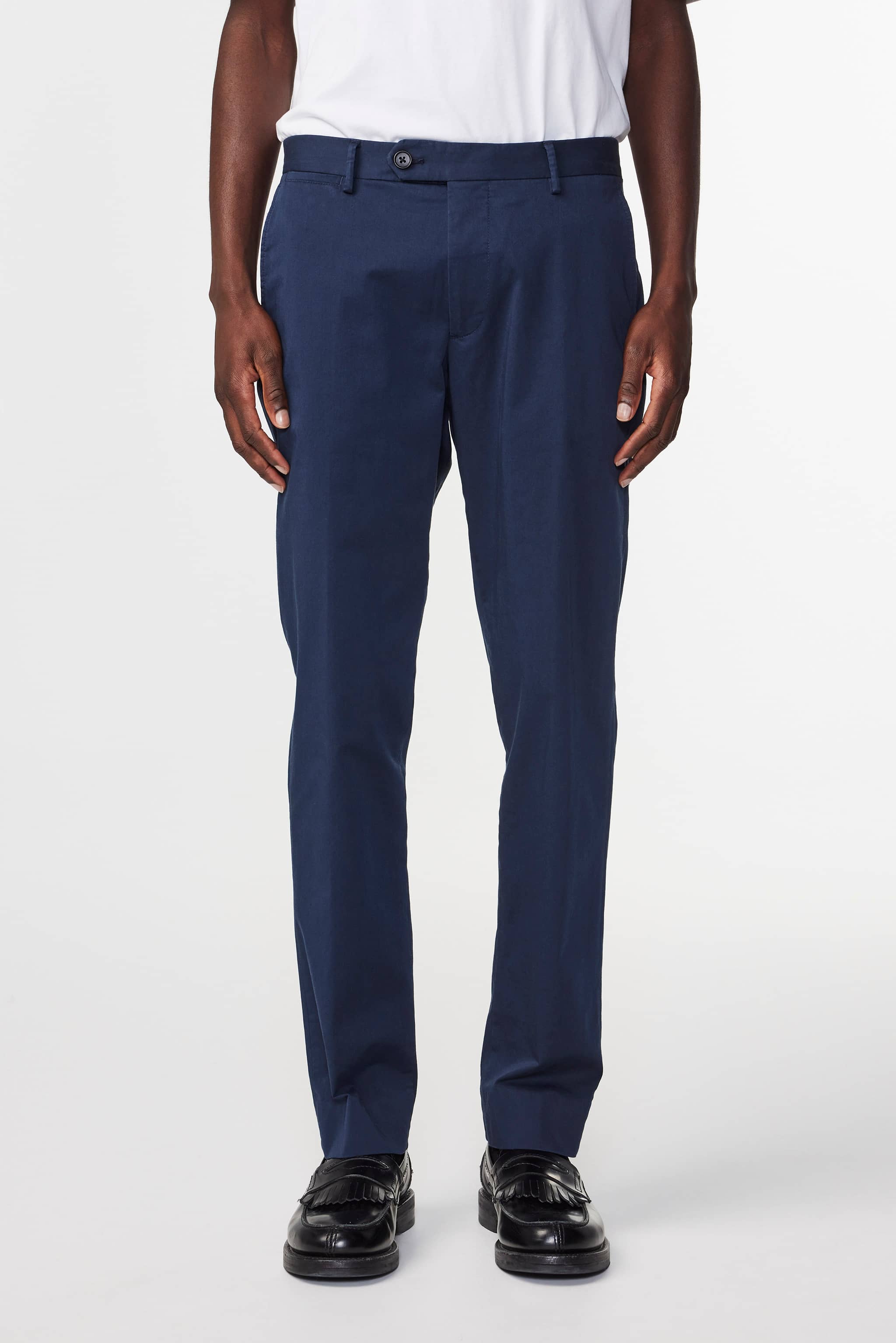 Slim fit tapered leg chino crafted from a lightweight 220 g/m2 organic cotton blend with a touch of stretch for additional comfort. Made in a satin weave and tailored with Cobrax hook-and-eye closure, twin flap back pockets, and a crisp crease.