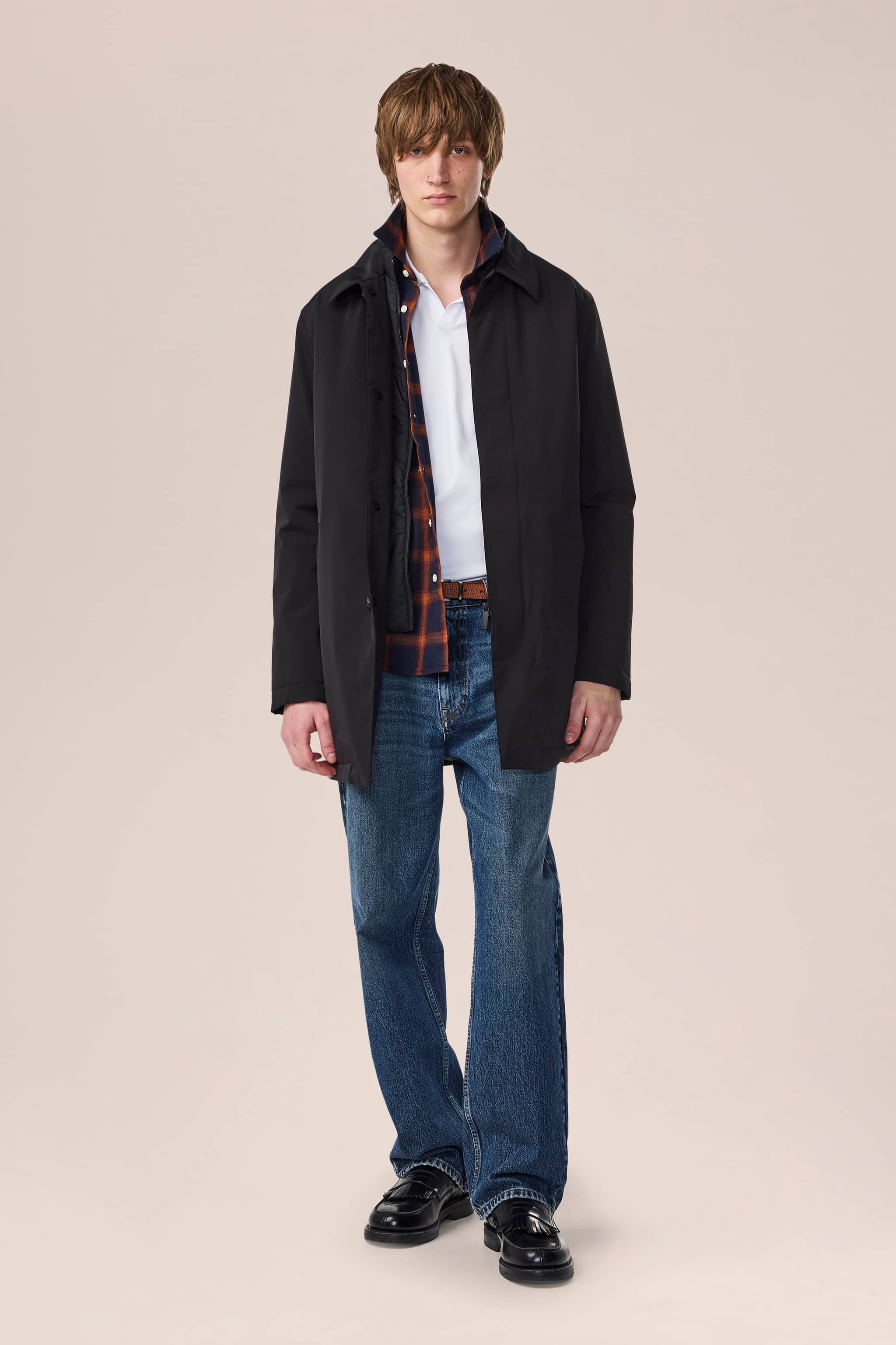 Transseasonal trench coat crafted from a recycled polyester-blend stretch twill with a crisp handfeel. Features 10,000mm waterproof protection and fully seam-sealed windproof construction with ultra-breathable properties. Suitable for temperatures from 0°C and above with its Primaloft® Gold insulation and microfleece-lined pockets. Includes an inside layer that can be zipped up while the front closes with buttons.