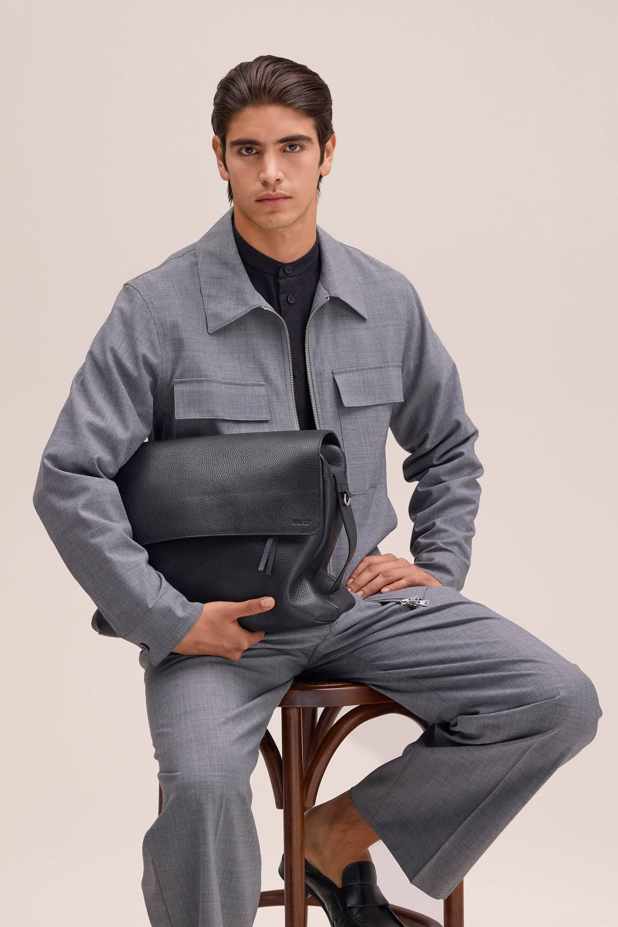 Relaxed-fit trousers crafted from a washable wool-blend fabric with a drapey handfeel.