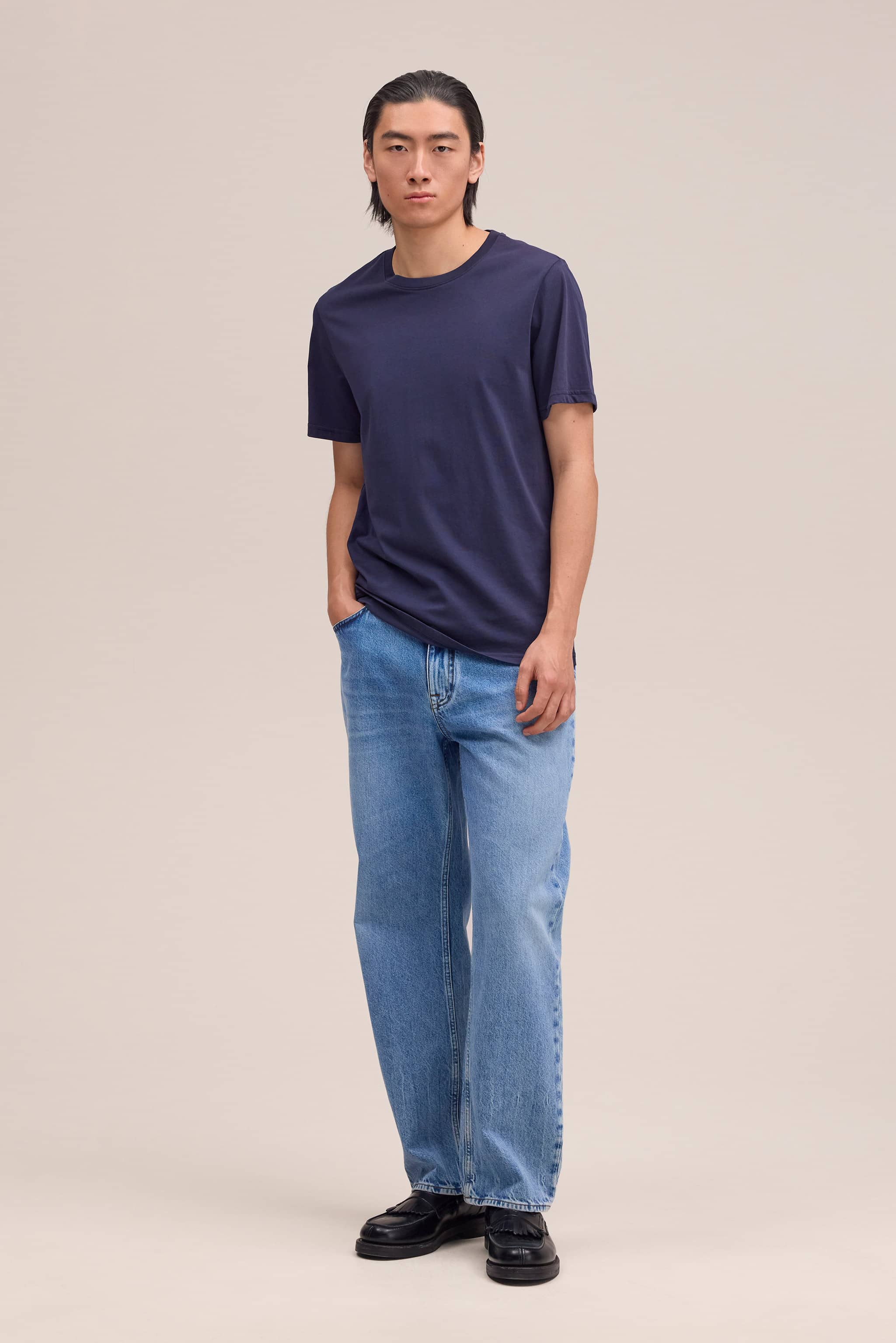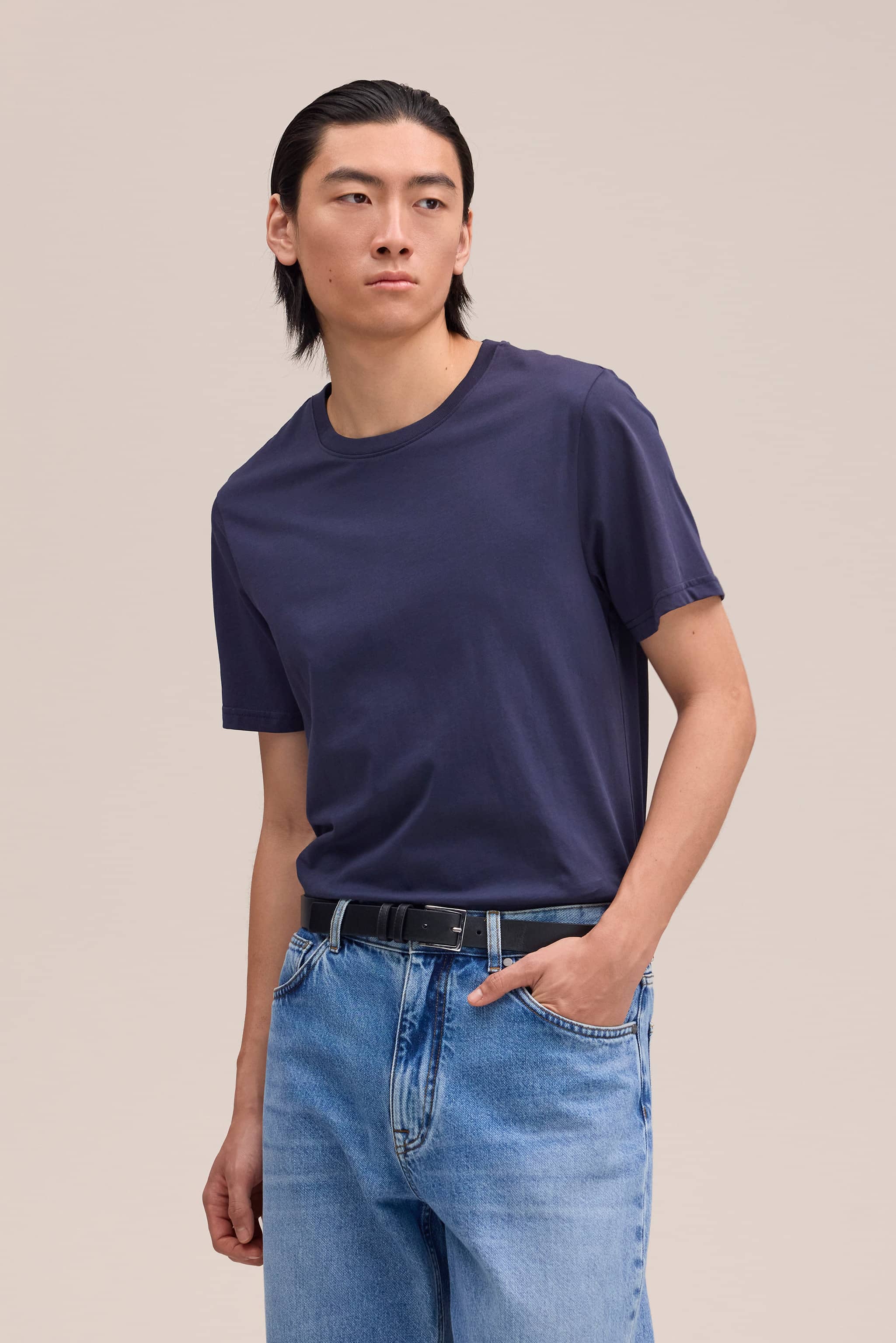 Slim-fit t-shirt crafted from lightweight organic cotton with a fine, smooth handfeel. Designed with a ribbed neckline and edge stitching for a refined finish.