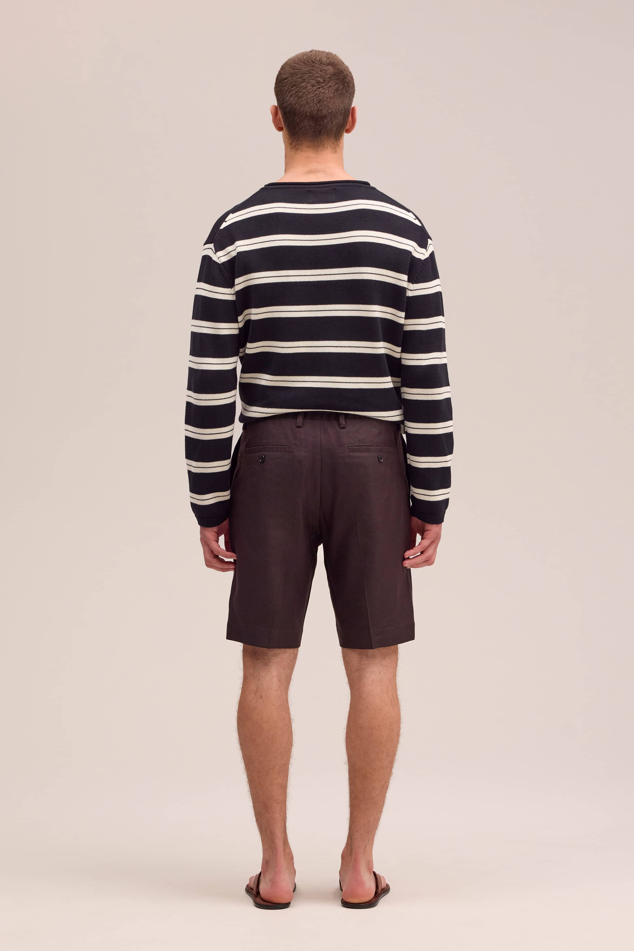 Striped crew neck sweater in a relaxed fit made from medium-weight organic cotton. Designed with a rolled edge neck and short rib trims for a soft finish.