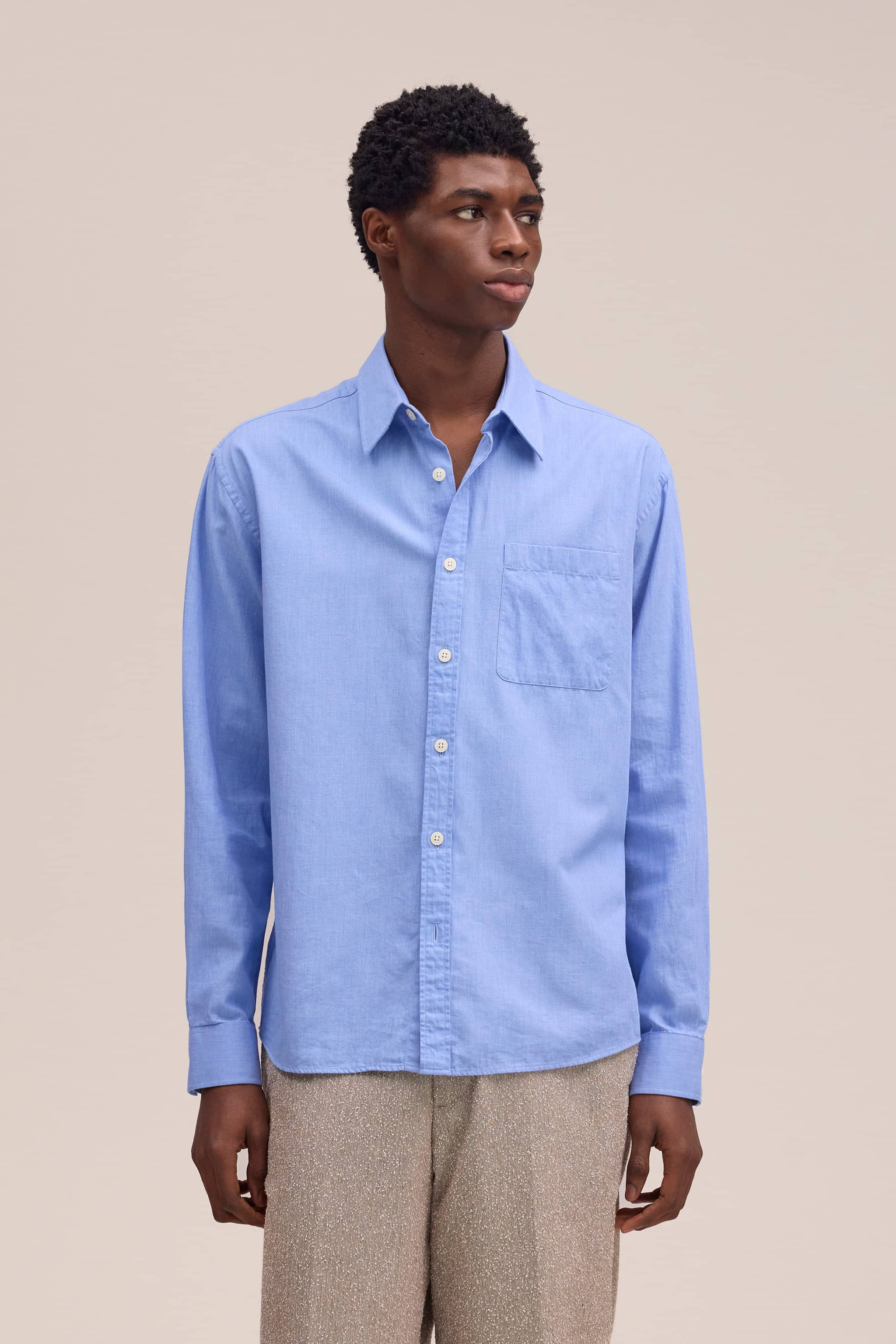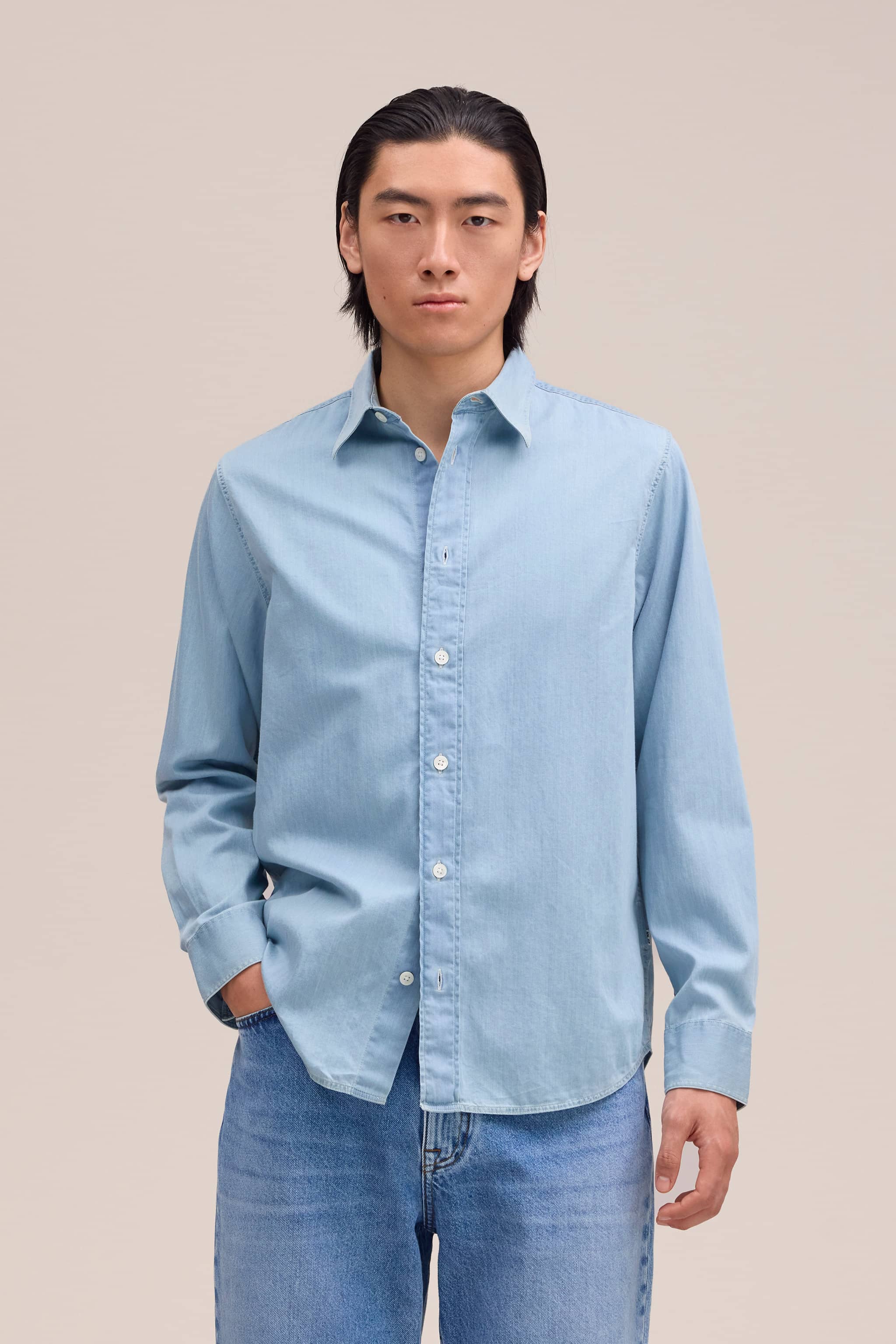 Relaxed shirt crafted from soft organic cotton in a chambray weave.