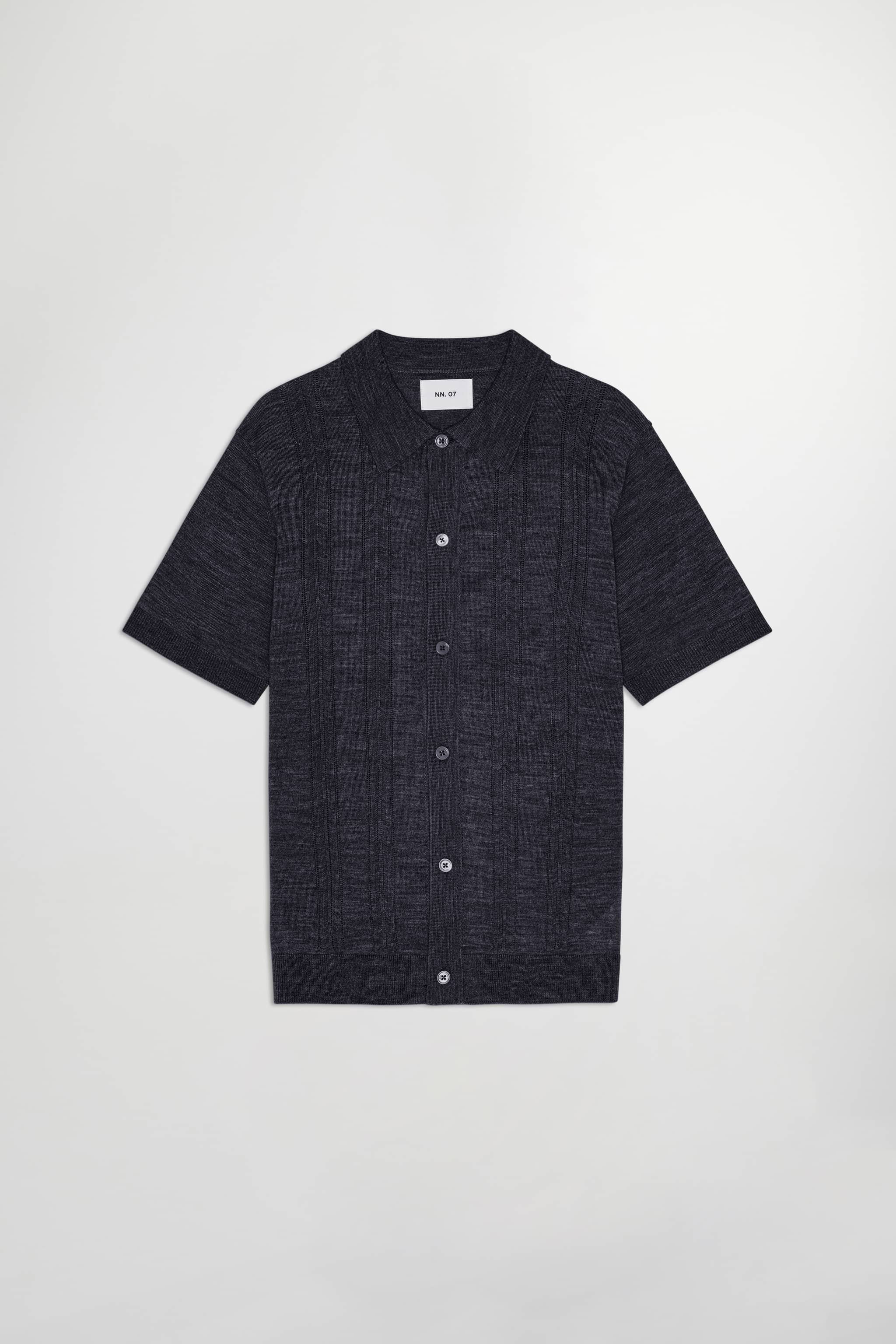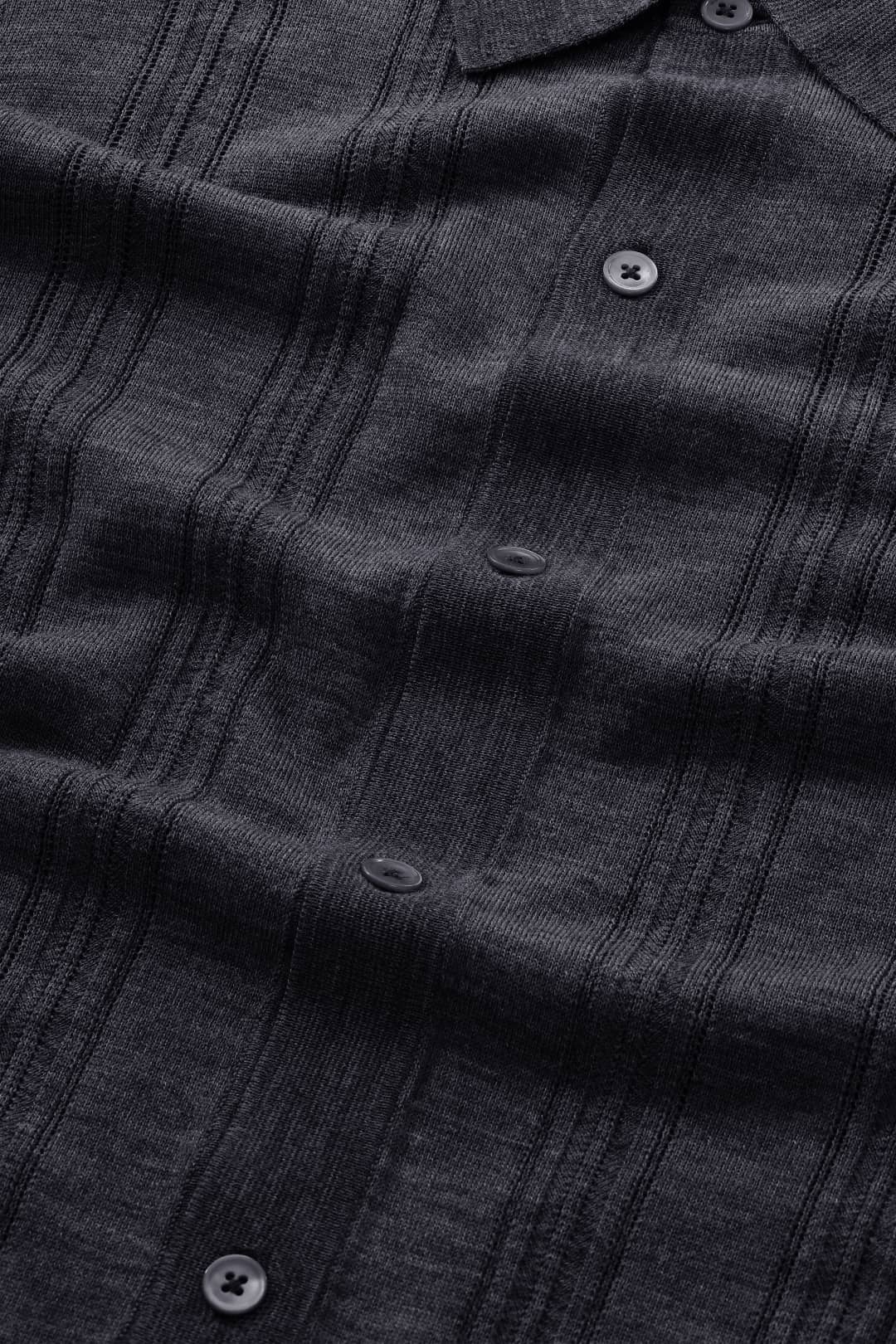 Camp collar knit crafted from medium-weight organic cotton with a soft, textured stitch.
