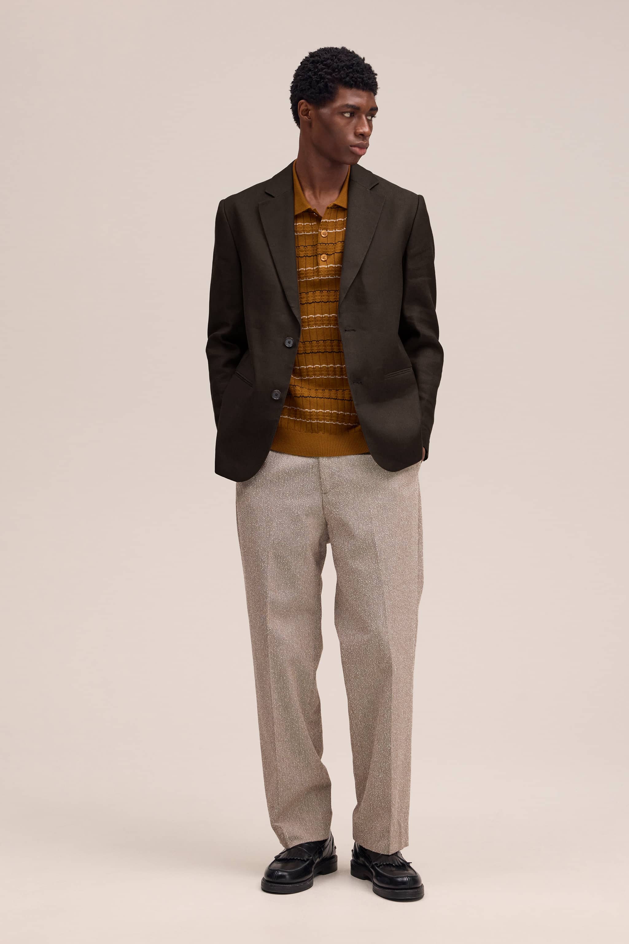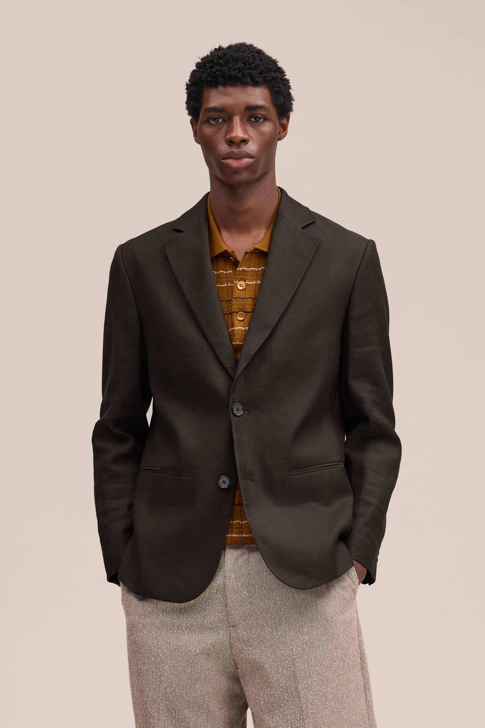 Fully lined blazer jacket designed with a relaxed silhouette crafted in an LENZING™ ECOVERO™ Viscose and linen blend. Complete with two welt pockets.