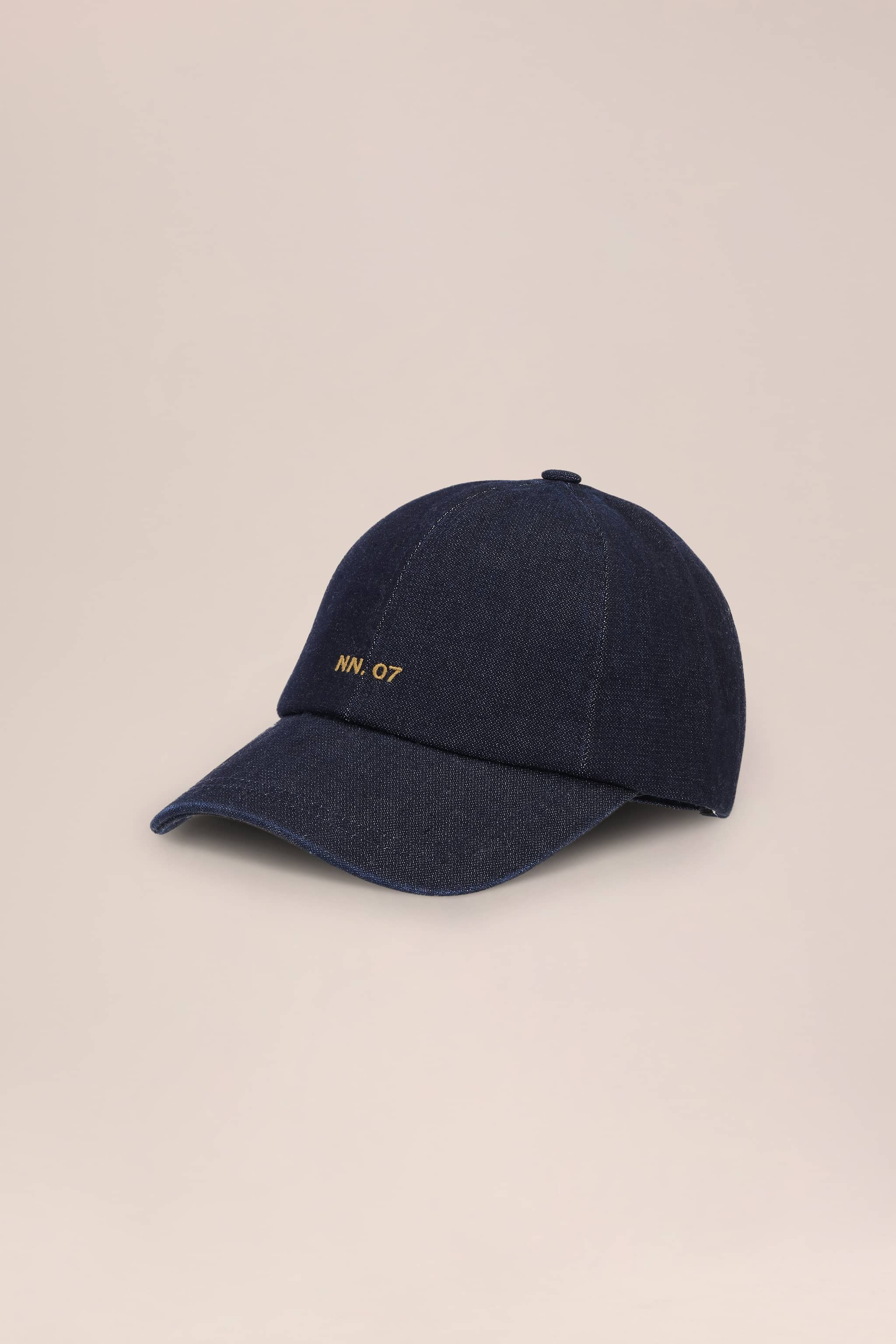 Baseball cap crafted from cotton canvas with a distinctive tonal denim finish and subtle tobacco topstitching for added texture and edge. Features an NN.07 logo at the front and finished with an adjustable metal back tab for a comfortable, personalized fit.