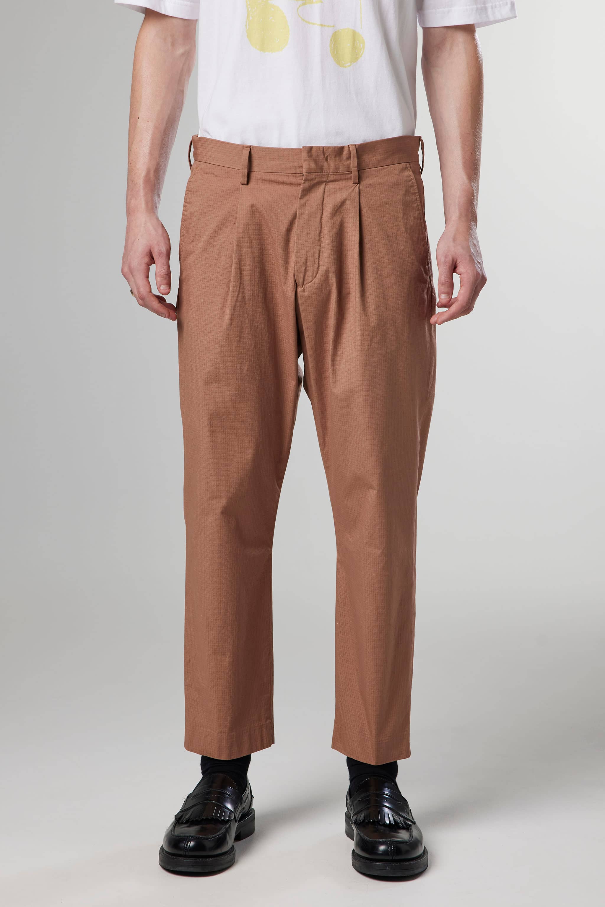 Technical ripstop trousers in a regular fit with tapered leg, crafted in a lightweight 165 g/m2 organic cotton blend with a touch of stretch. Features a press folds, blind hem, and hidden closure.