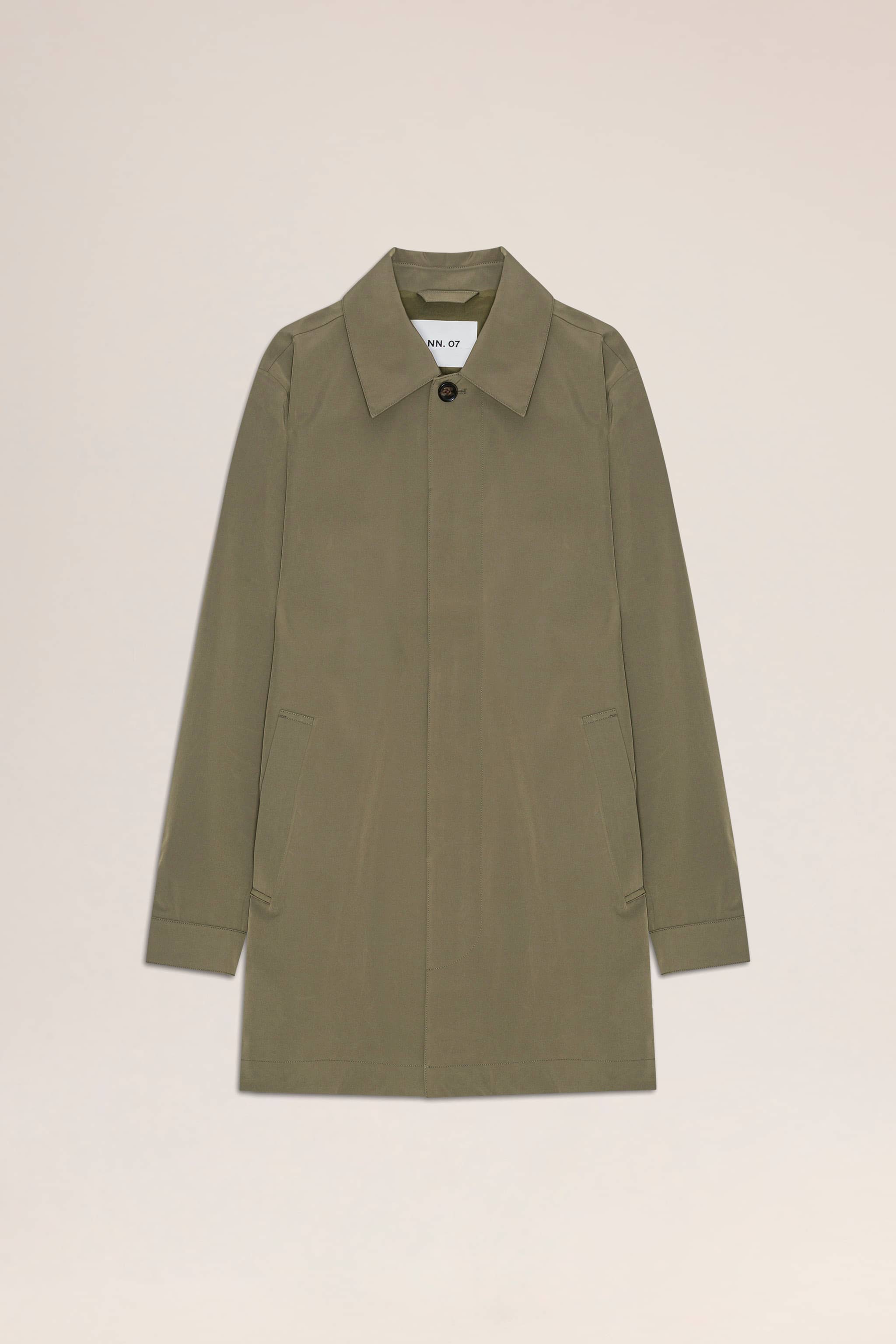 A mid-length, lightweight, transseasonal coat made from breathable, waterproof technical fabric. The coat comes fully lined with a 2-layer stretch polyester PU laminate, including a hidden button placket, logo mesh air vents, and two front pockets and finished with one inside zip chest pocket and two inside patch pockets.