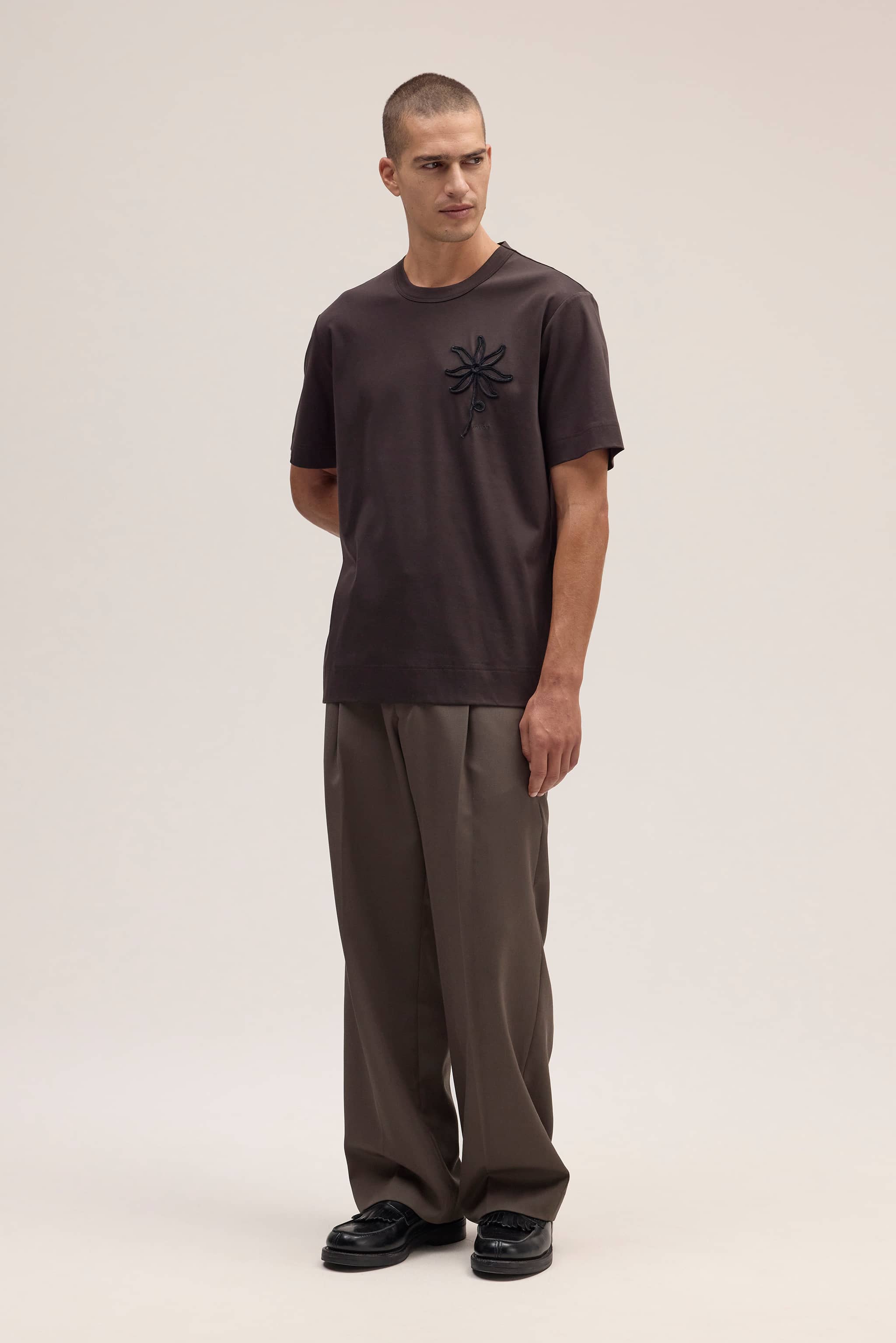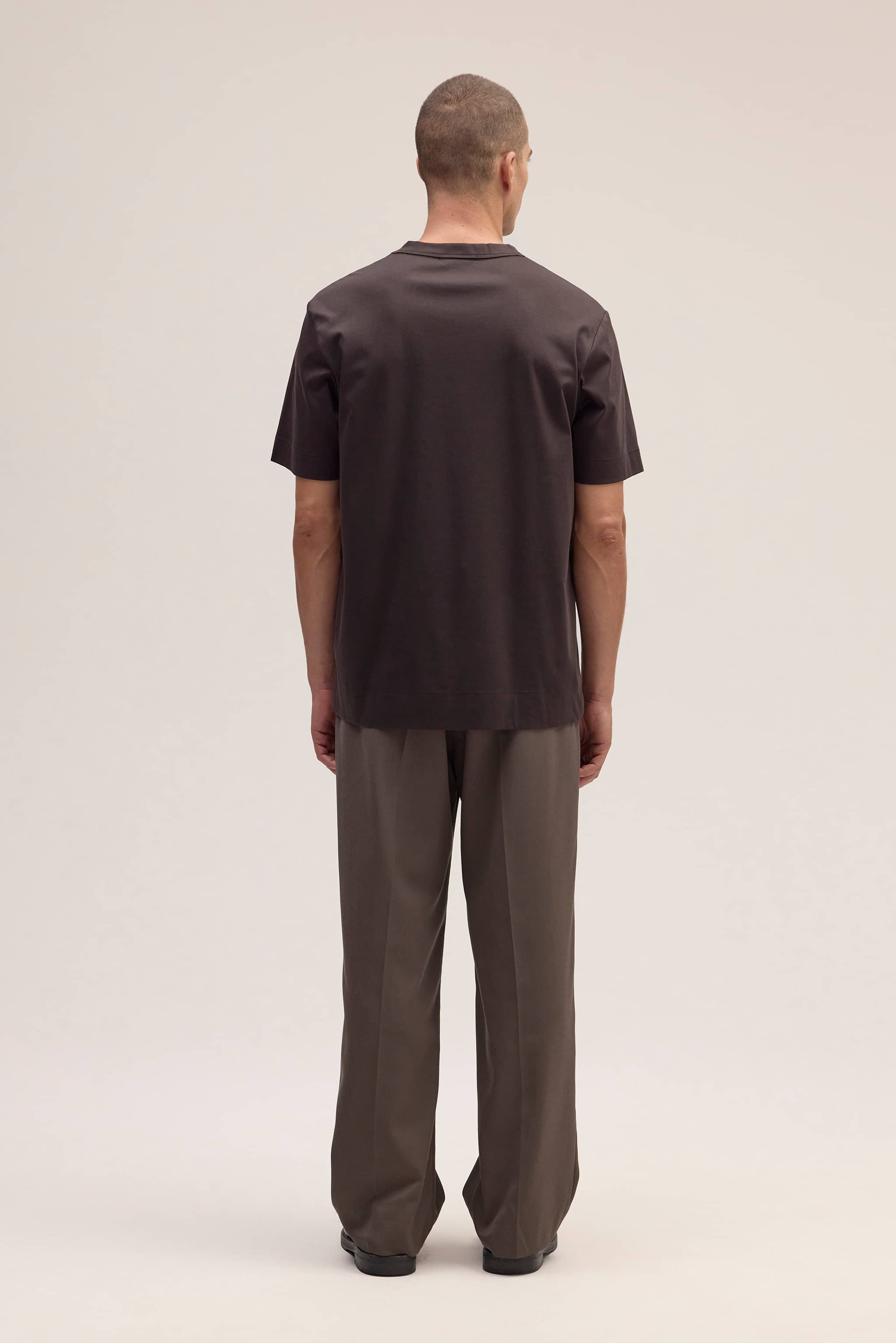 Regular fit t-shirt crafted from mercerized organic cotton jersey interlock, providing a smooth, refined handfeel. Designed with a clean neckline, binding details, and a unique chest application.