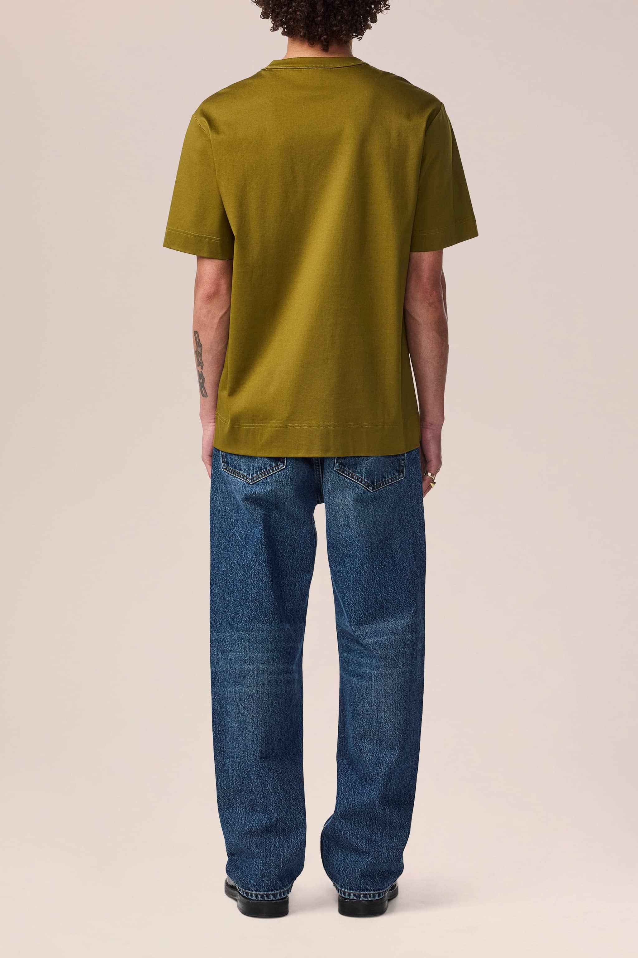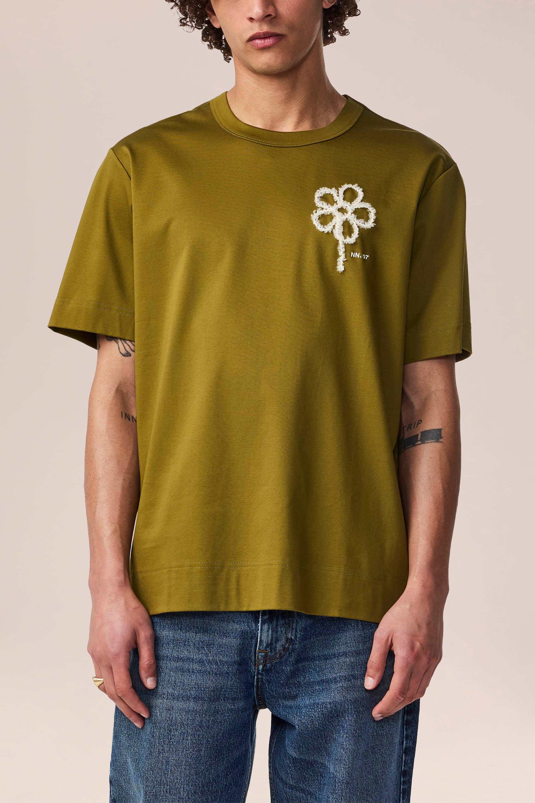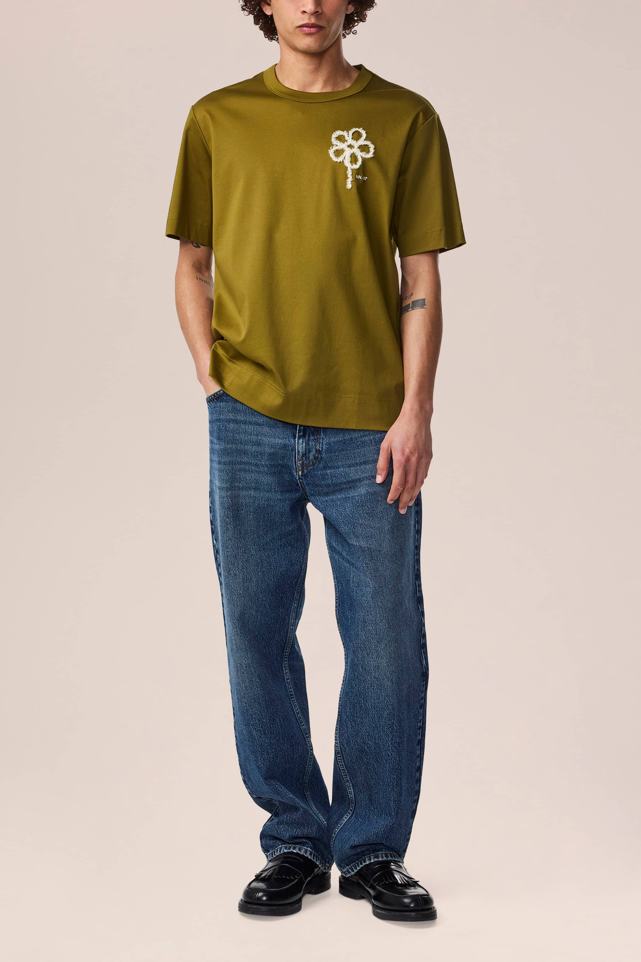 Relaxed-fitting t-shirt crafted in a mercerised organic cotton jersey interlock with a wide bottom hem and completed with embroidery at the chest.