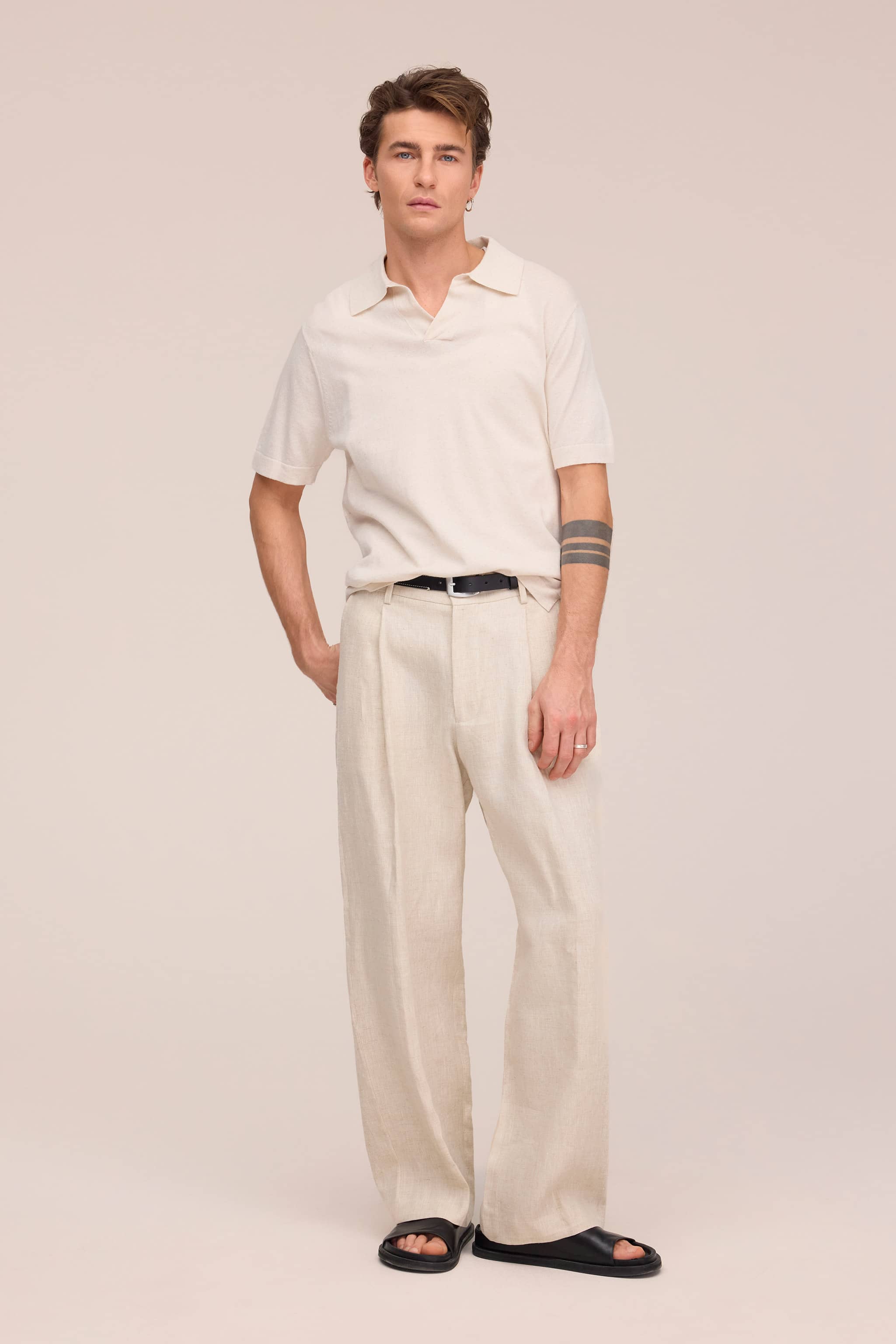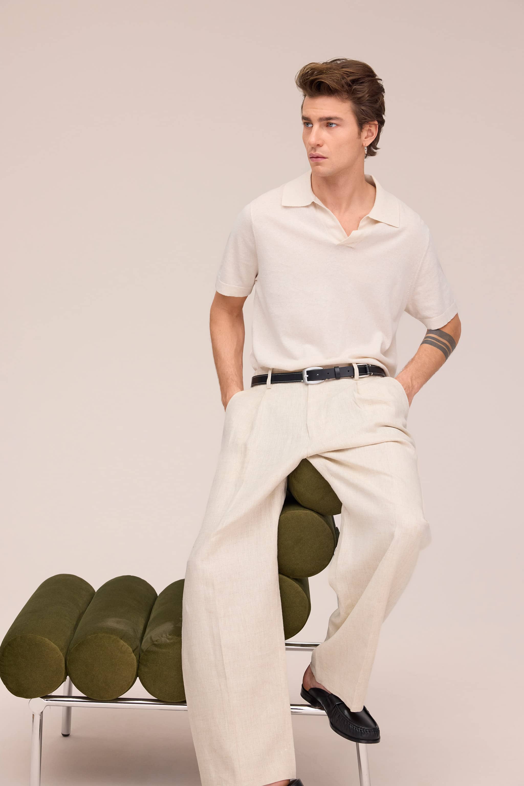 Lightweight open-collar polo crafted in a soft cotton-linen blend jersey. Features side slits and an ultra-breathable design that delivers exceptional comfort and a delicate handfeel.