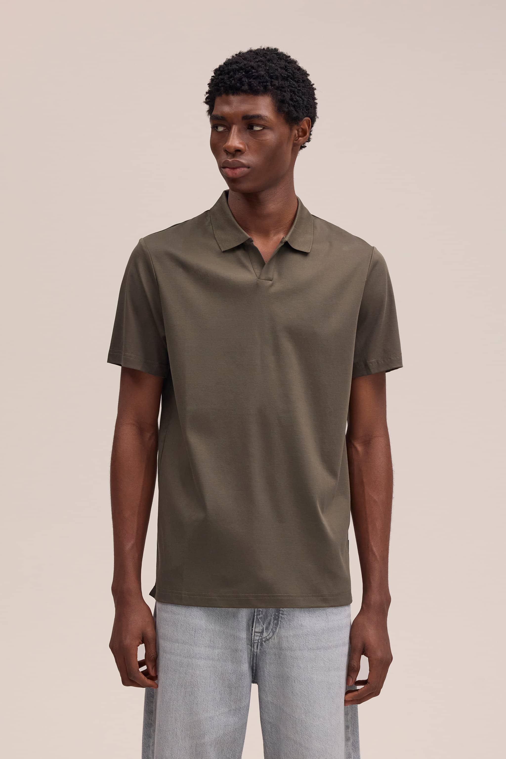 Open-collar polo crafted in organic cotton jersey finished with twin-needle stitching throughout.
