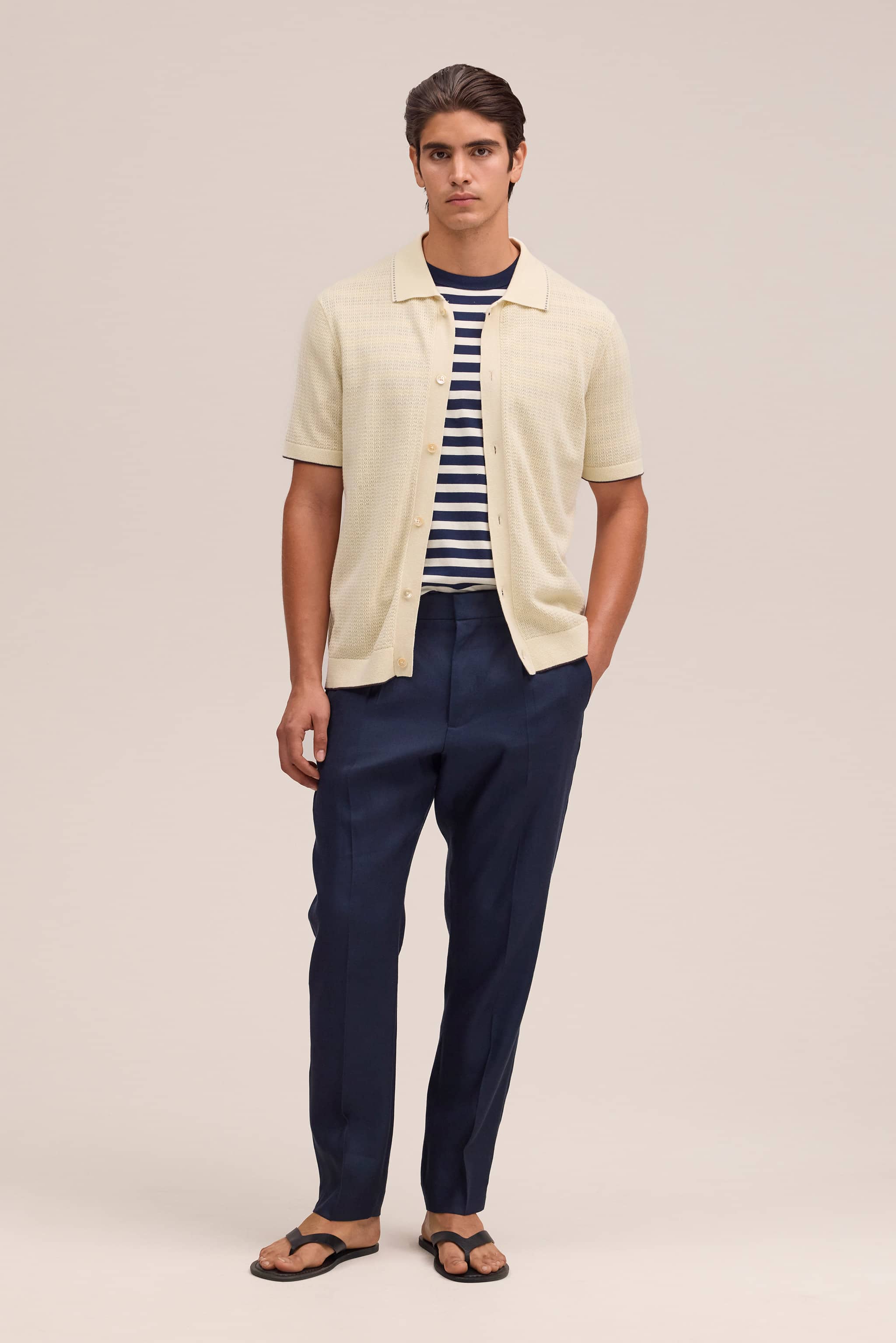 Regular fit chinos with a tapered leg in a Panama weave with a drapey handfeel and medium weight.