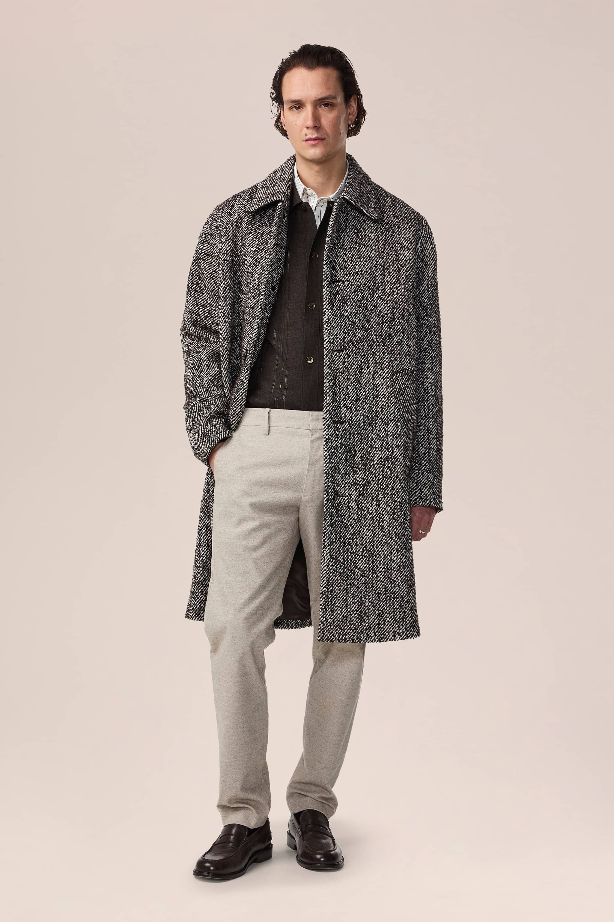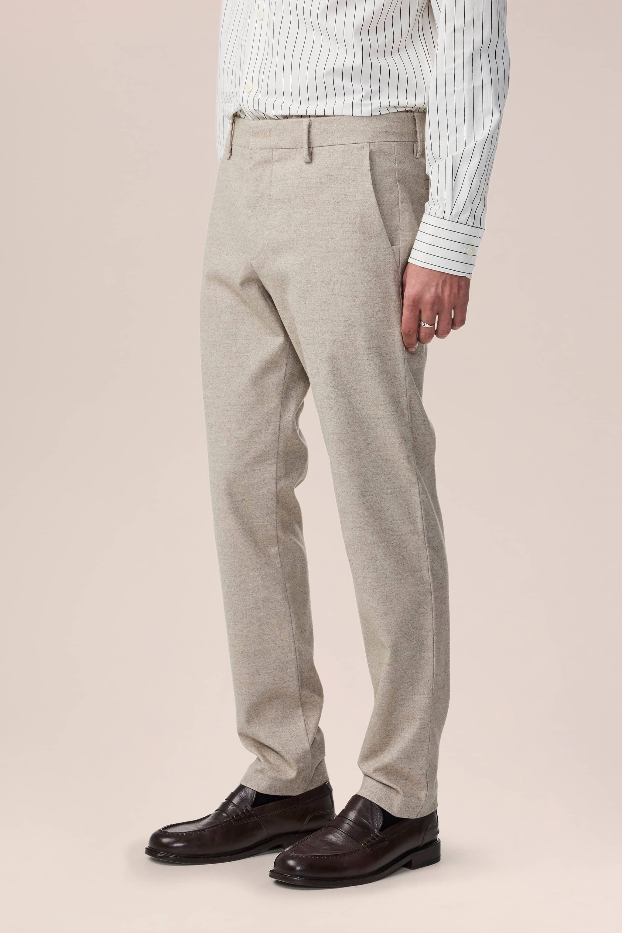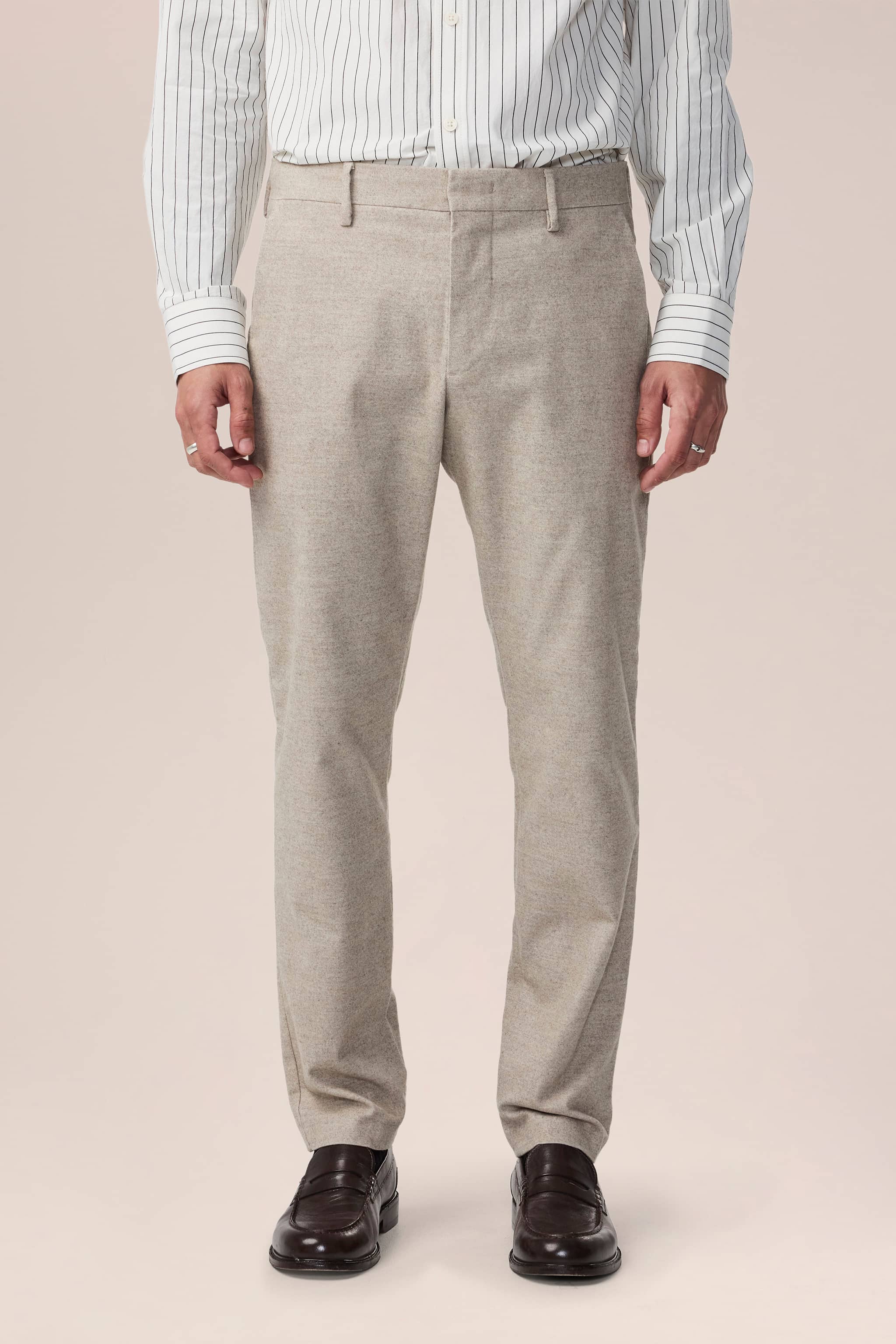 Slim tailored chino with tapered leg crafted in a 279 g/m2 brushed cotton twill melange blend with a touch of stretch for comfort, complete with a crisp crease and blind hem. Tailored details with a Cobrax hook and eye closure and welt flap pockets.
