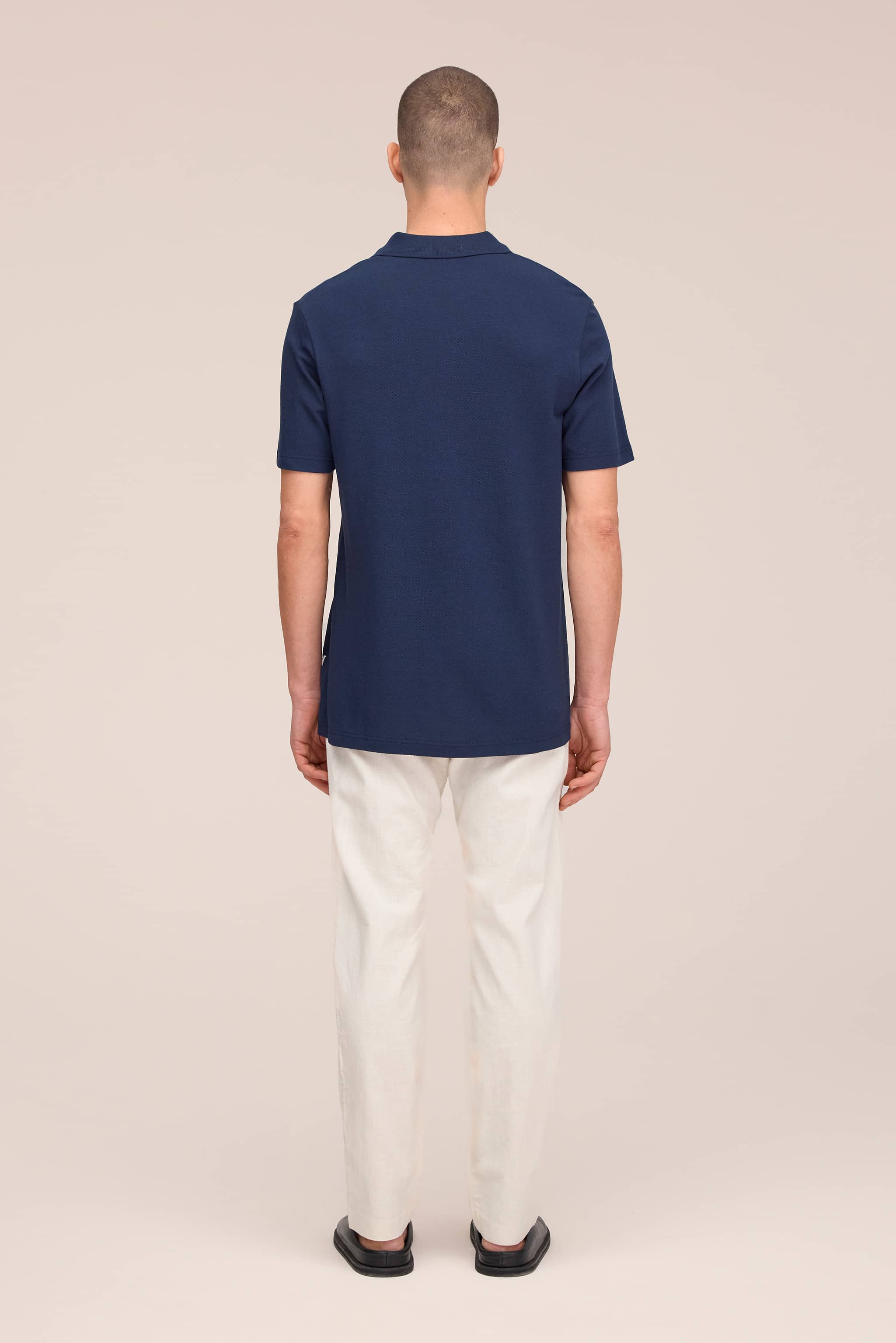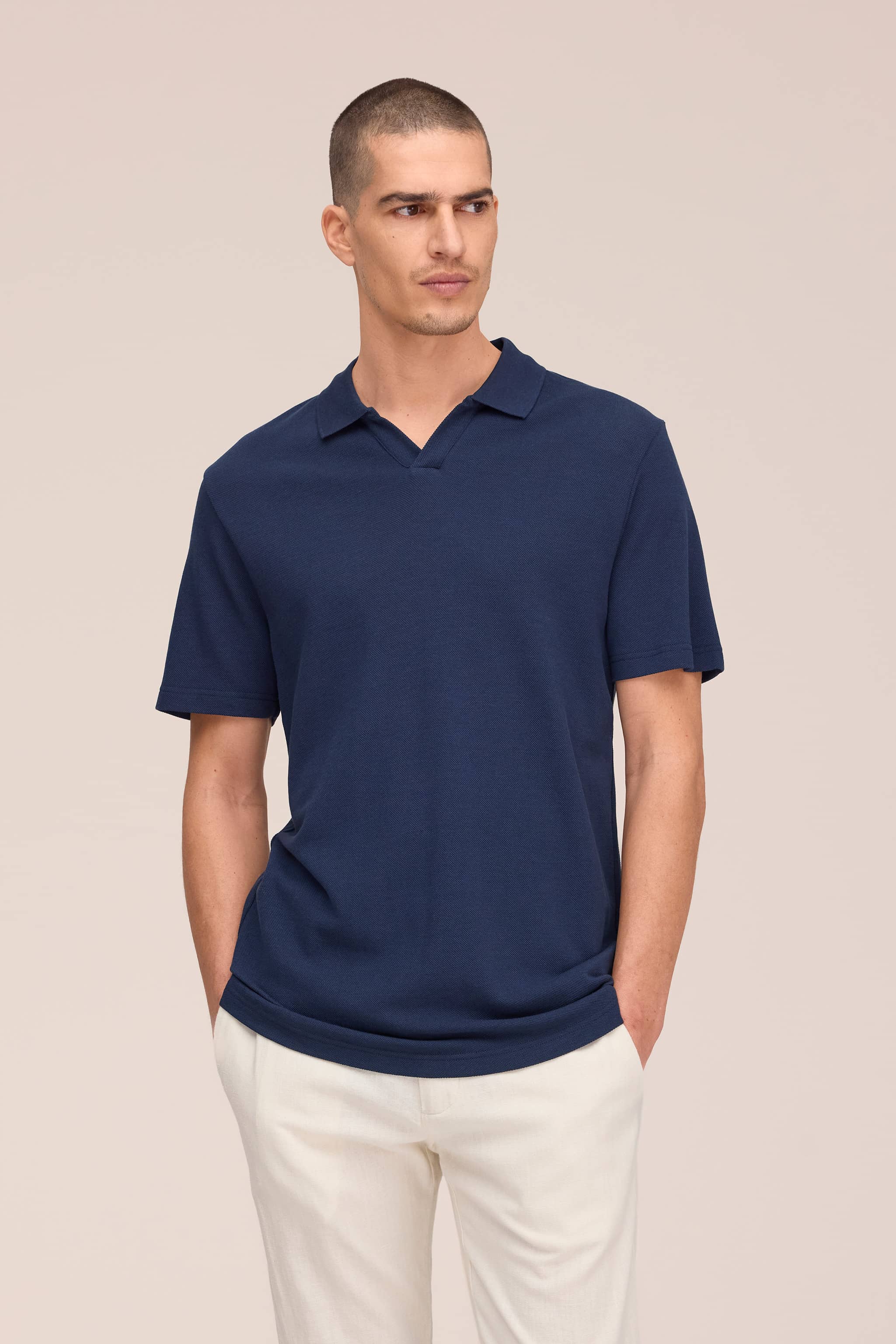 Open collar polo crafted in cotton and TENCEL™ lyocell jersey finished with twin-needle stitching throughout.