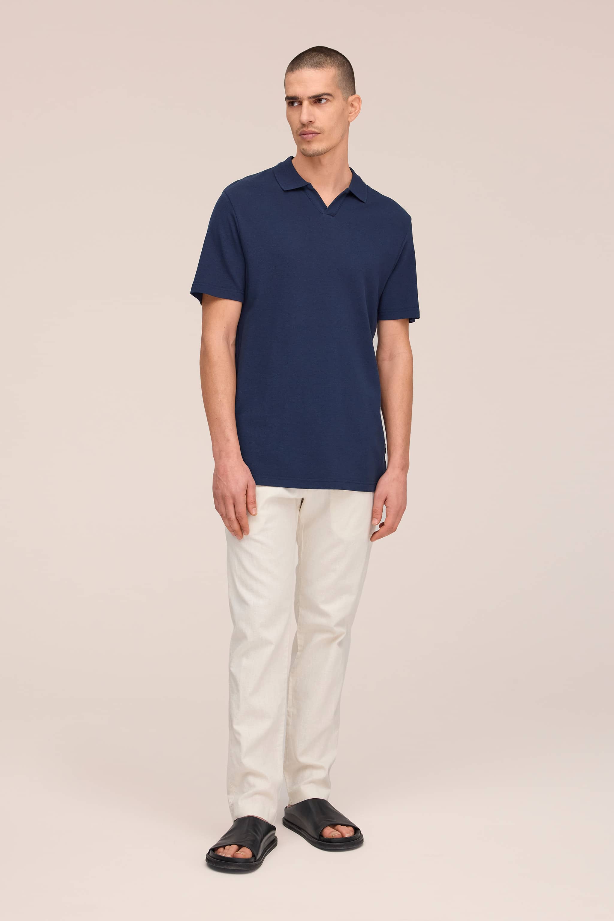 Lightweight open-collar polo crafted in a cotton and linen blend.