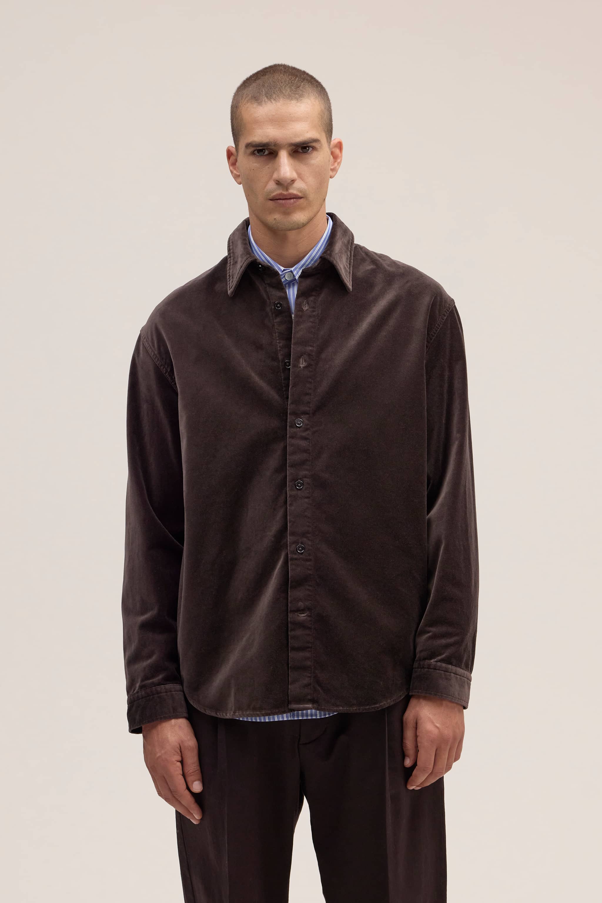 Relaxed-fit overshirt crafted from cotton moleskin with a soft, heavier weight. Designed for warmth and durability, finished with NN.07 logo river shell buttons.