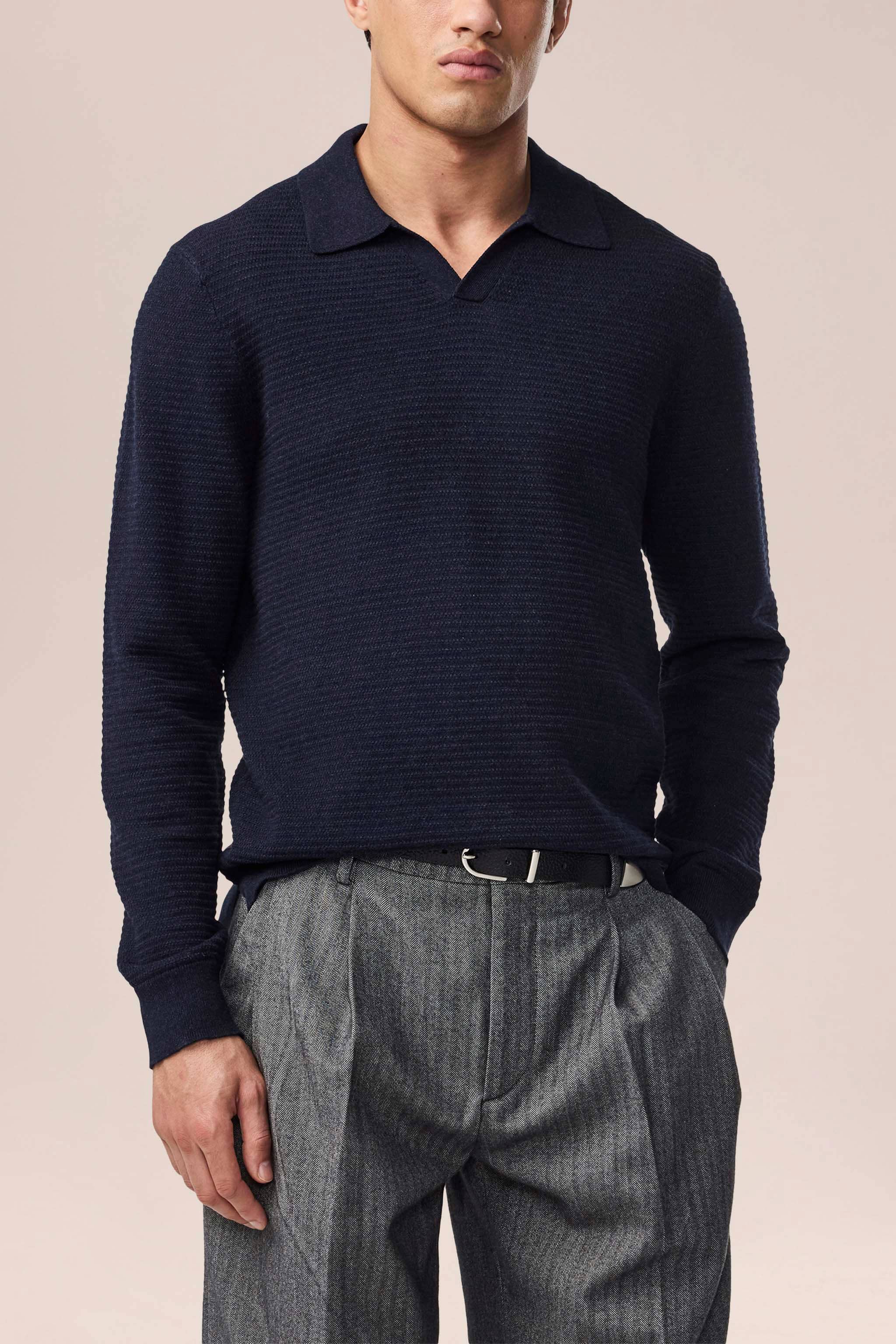 Classic open-collar polo crafted from organic cotton jersey. Designed with subtle textured stitching, this knit delivers a soft, comfortable feel.