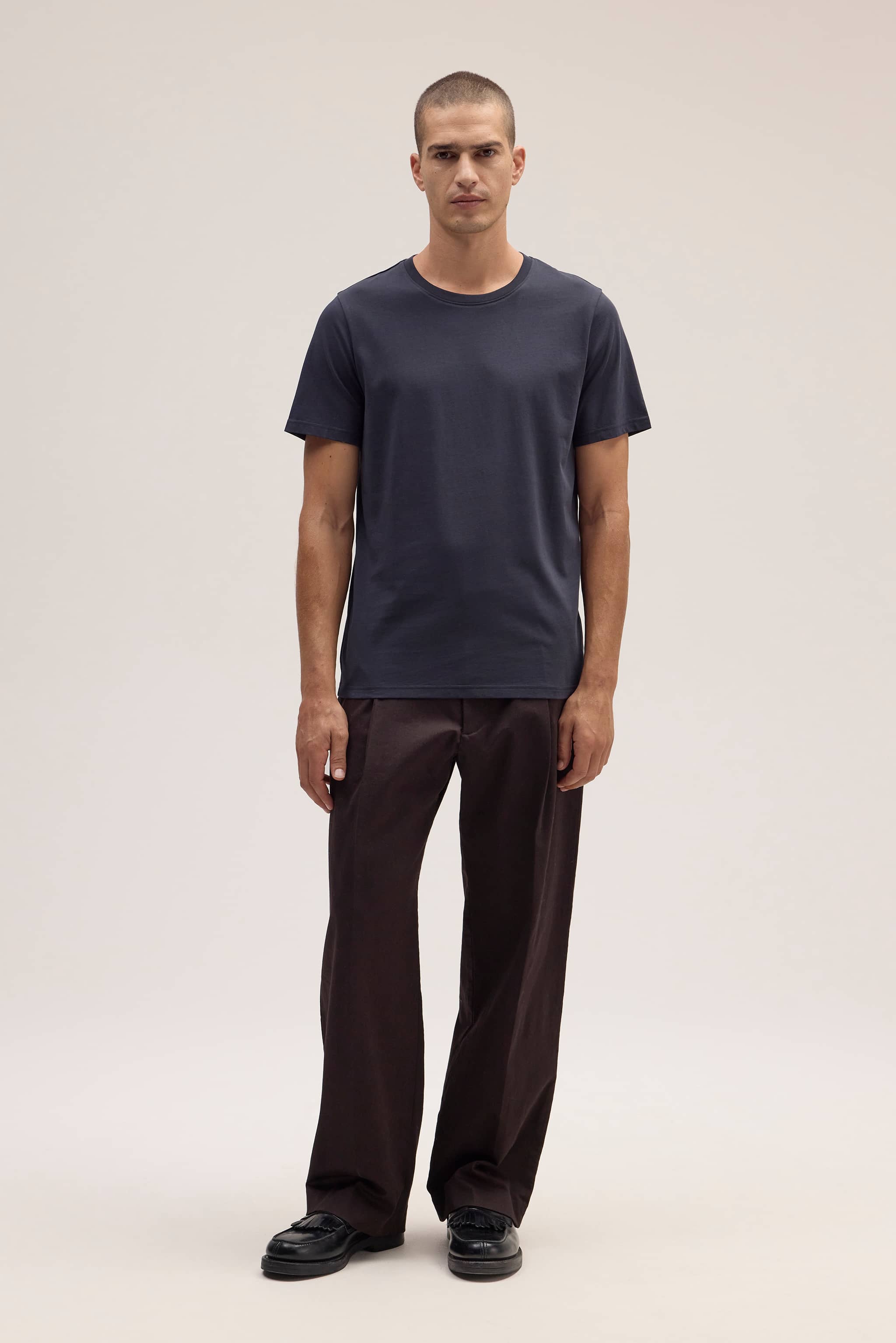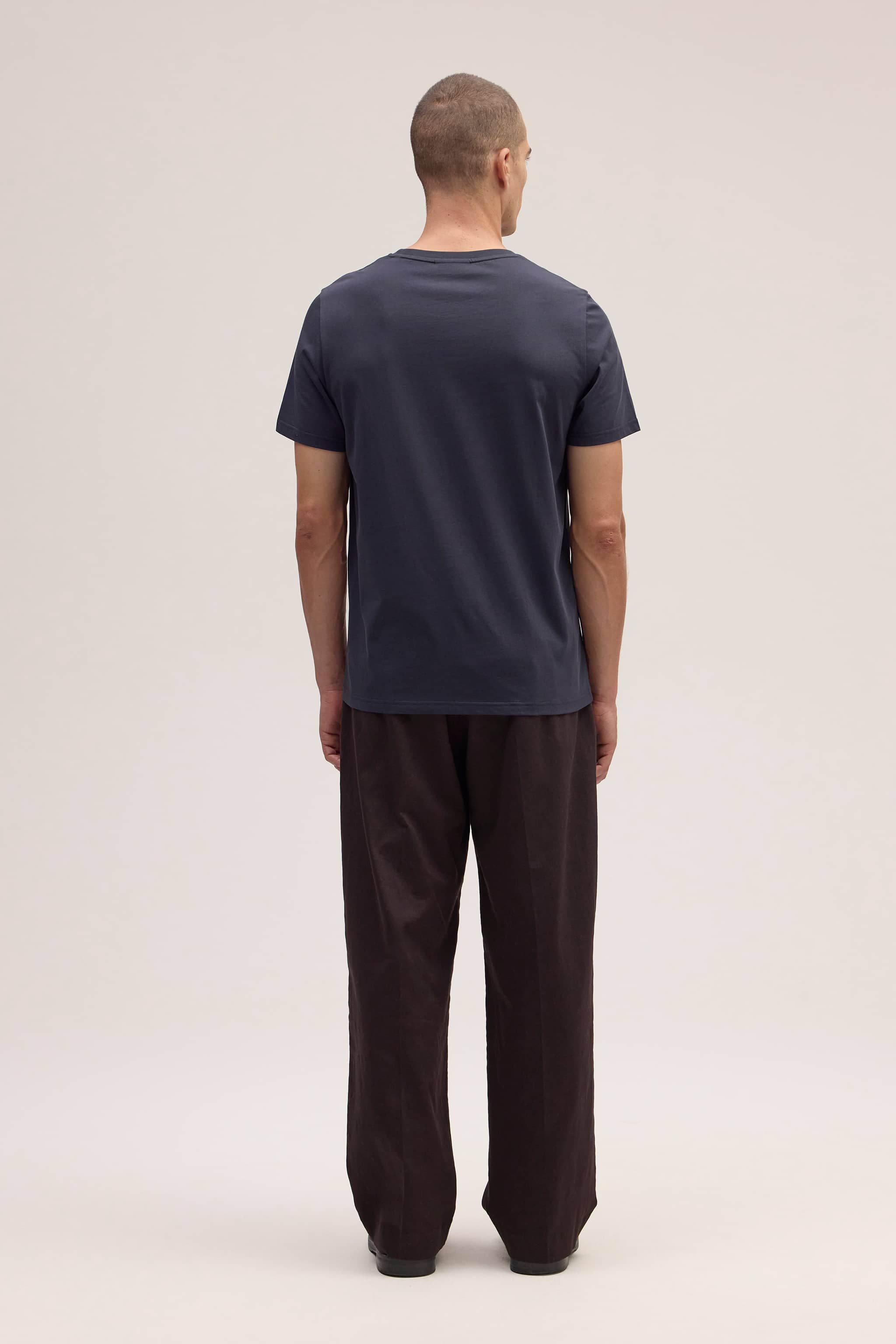Slim-fit t-shirt crafted from lightweight organic cotton with a fine, smooth handfeel. Designed with a ribbed neckline and edge stitching for a refined finish.