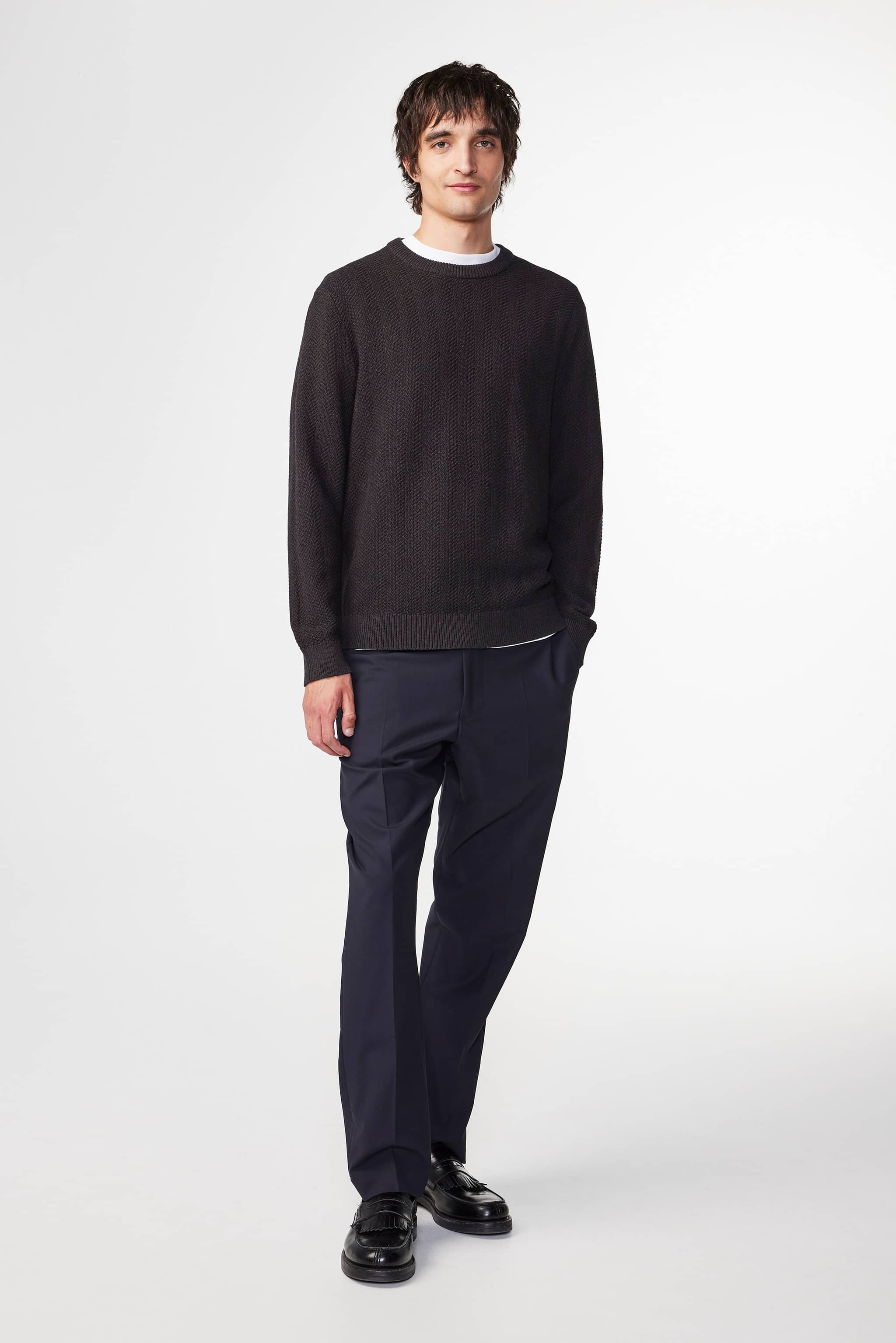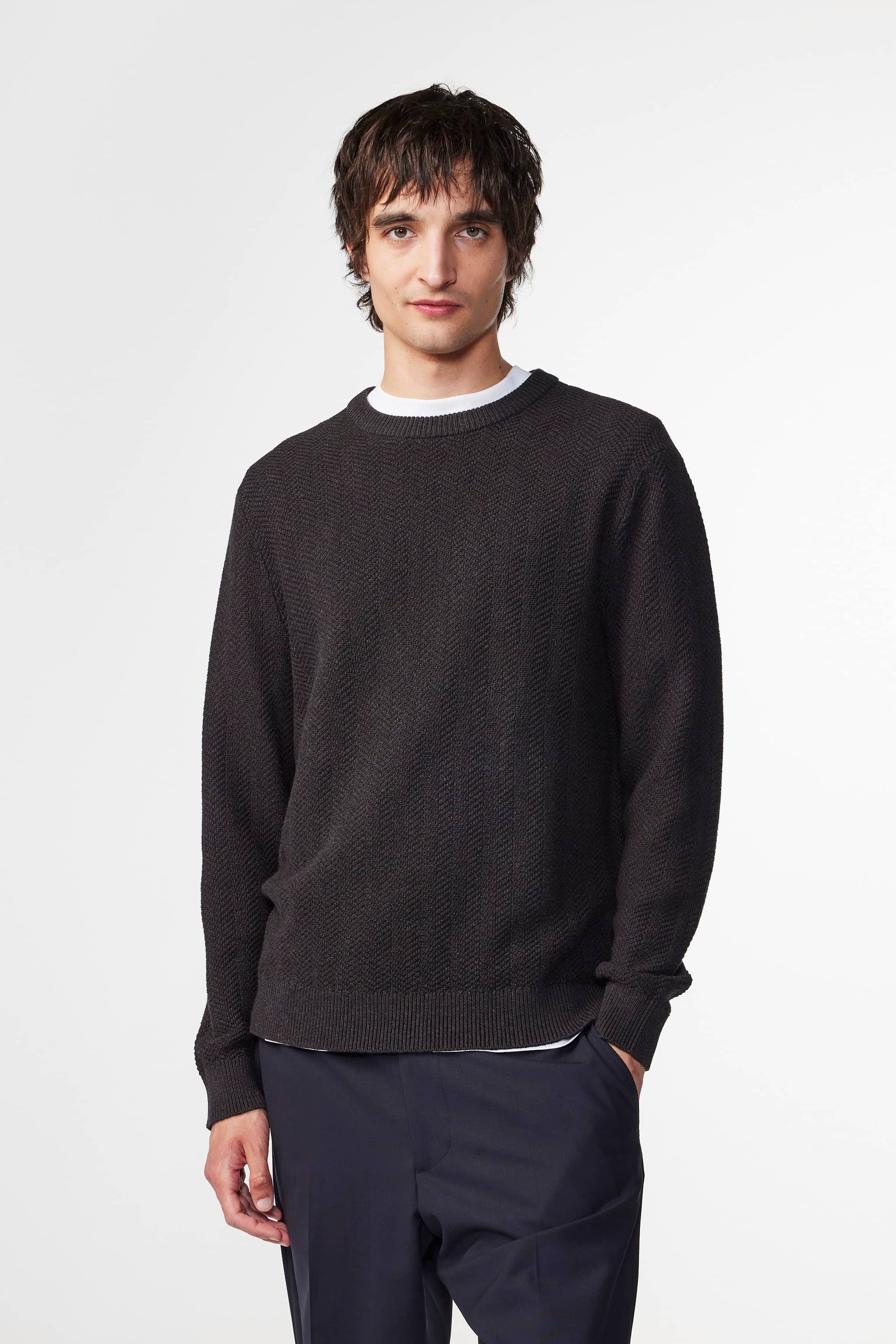 Crew neck crafted in a herringbone-textured stitch from organic cotton.