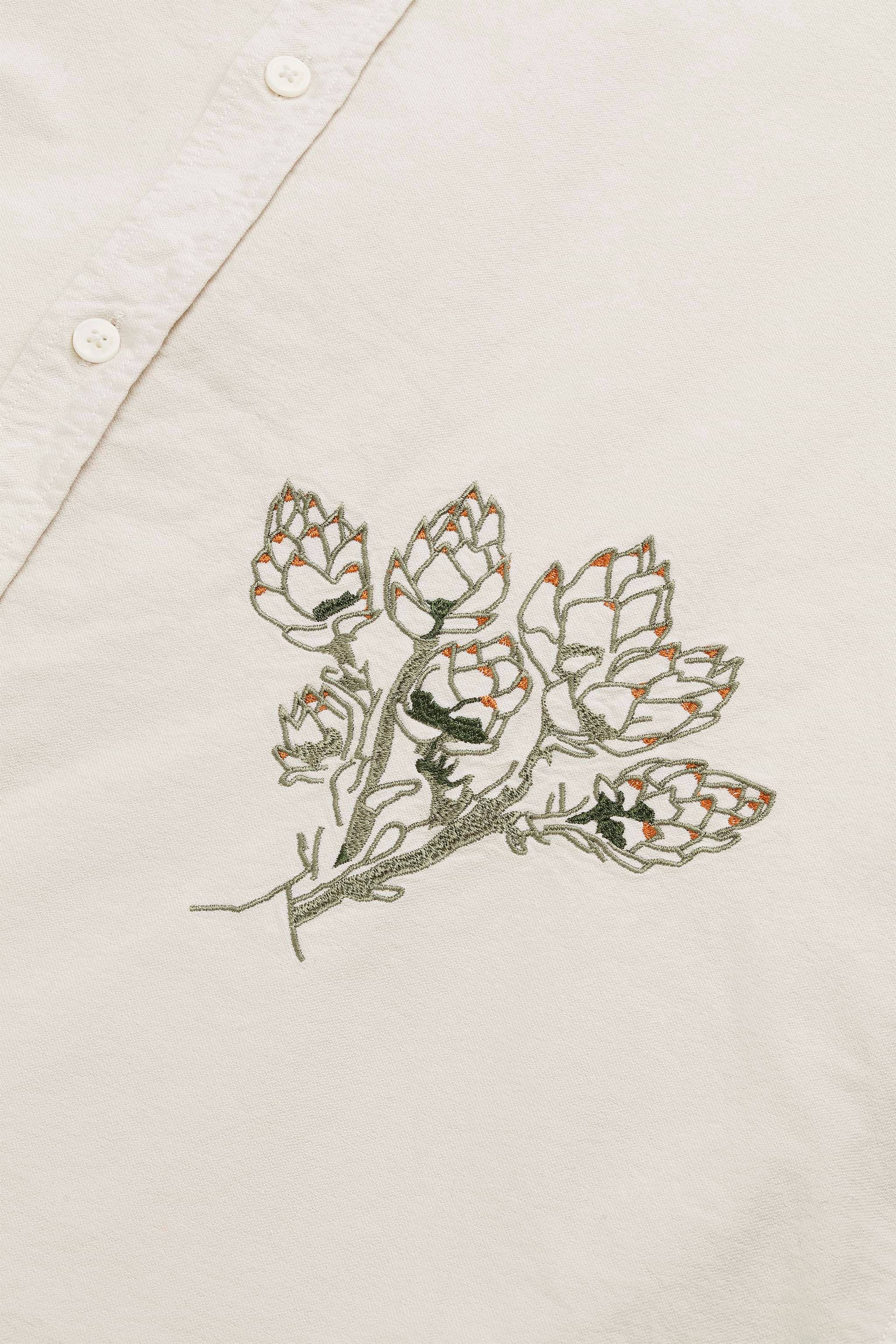 We have come together with SLOP Magazine for another limited-edition collaboration, reimagining our bestselling Deon shirt with elevated details and original embroidered artwork. Crafted in Portugal from 100% organic woven cotton, we’ve combined timeless design with a contemporary edge in our classic oxford shirt. Featuring a relaxed fit and a western-style yoke, the Deon Shirt exudes effortless versatility. Standout details include "NN.07 + SLOP" embroidered on the side, an artichoke motif delicately embroidered on the collar, and a striking artichoke flower embroidered on the left side of the shirt, transforming our classic staple into a true statement piece.