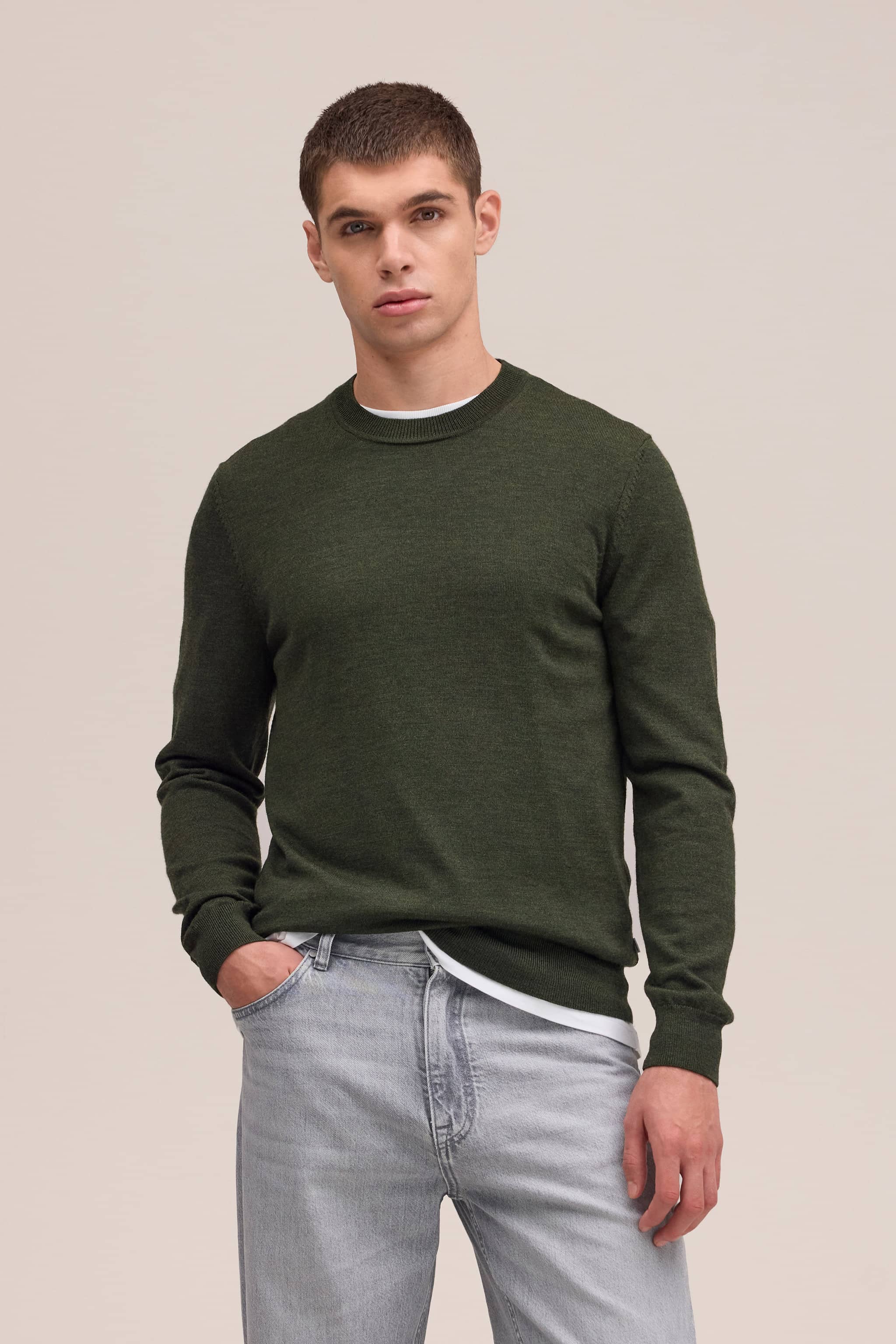 Crewneck pullover crafted in soft certified merino wool with a lightweight feel. Features a classic crew neckline and plain jersey knit that delivers comfort and versatility.