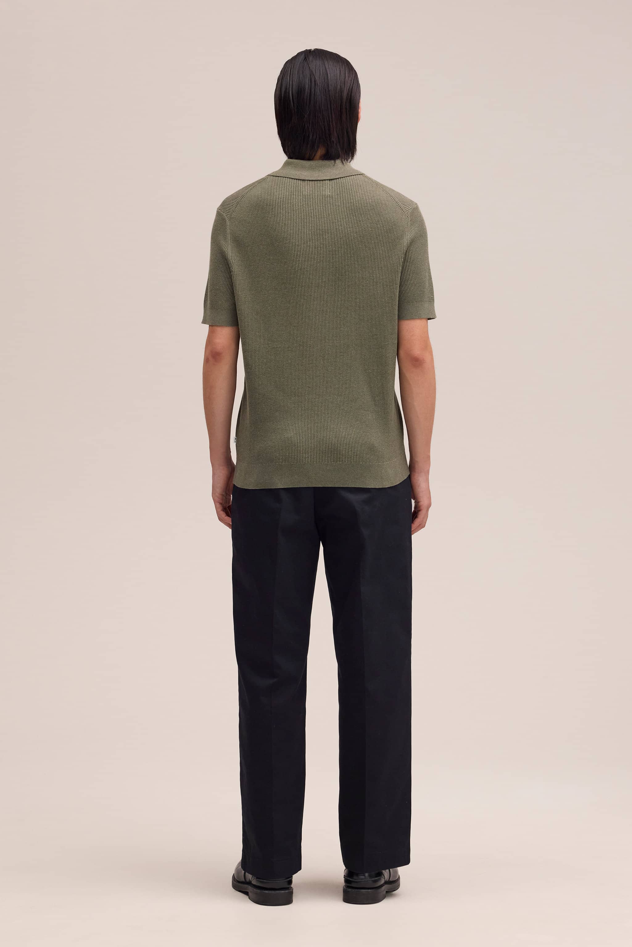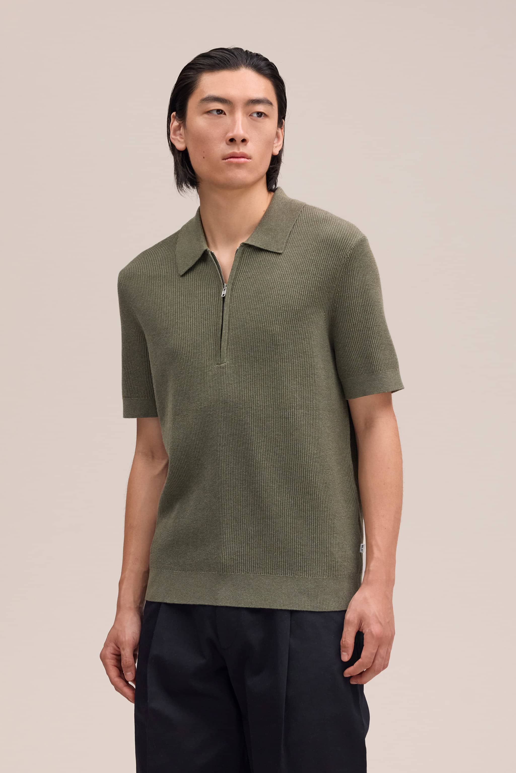 Polo with an all-over rib crafted in a smooth organic cotton yarn featuring a half zip closure.