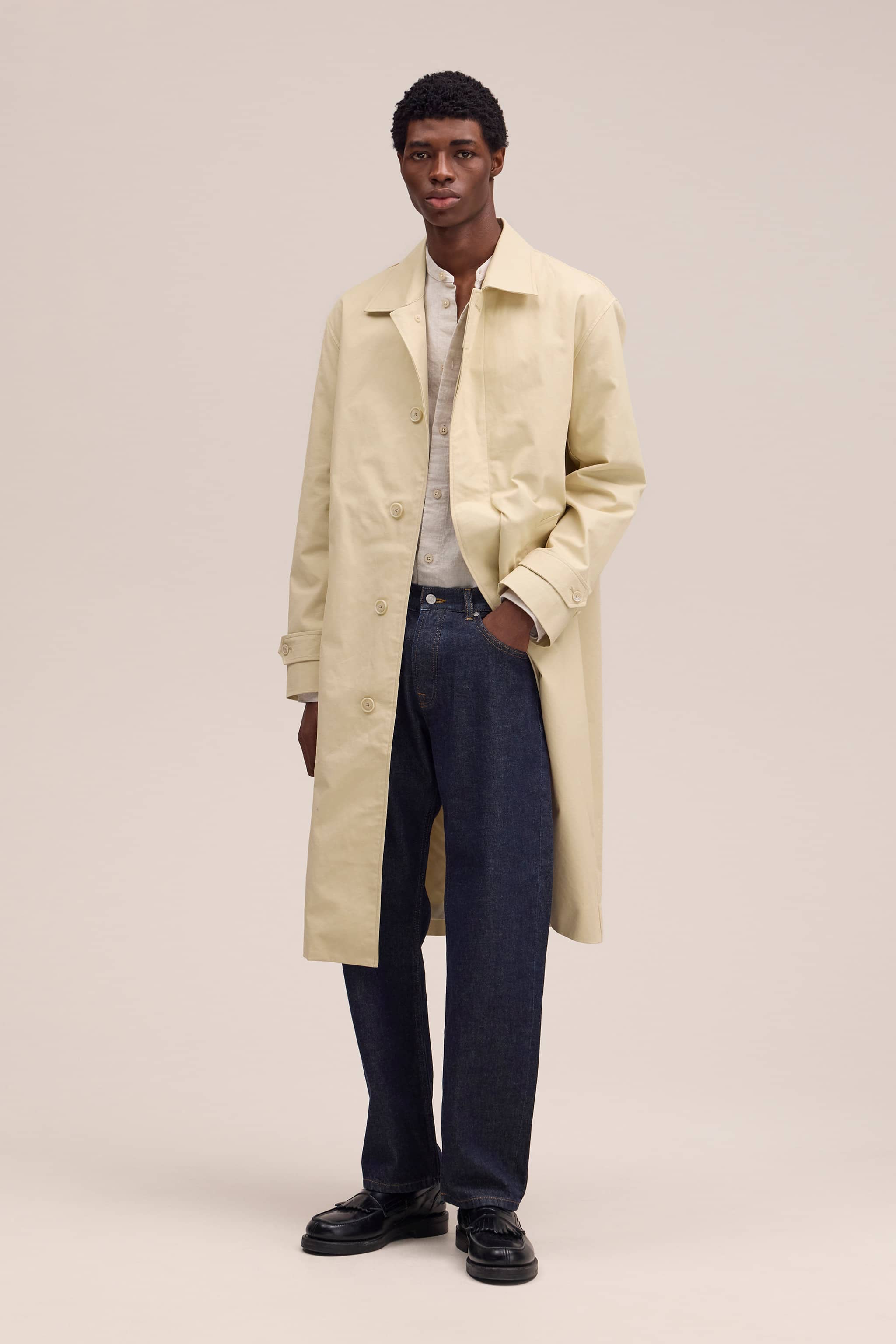 Regular, straight-leg jeans crafted from bleached, midweight 12.50 oz organic cotton denim.