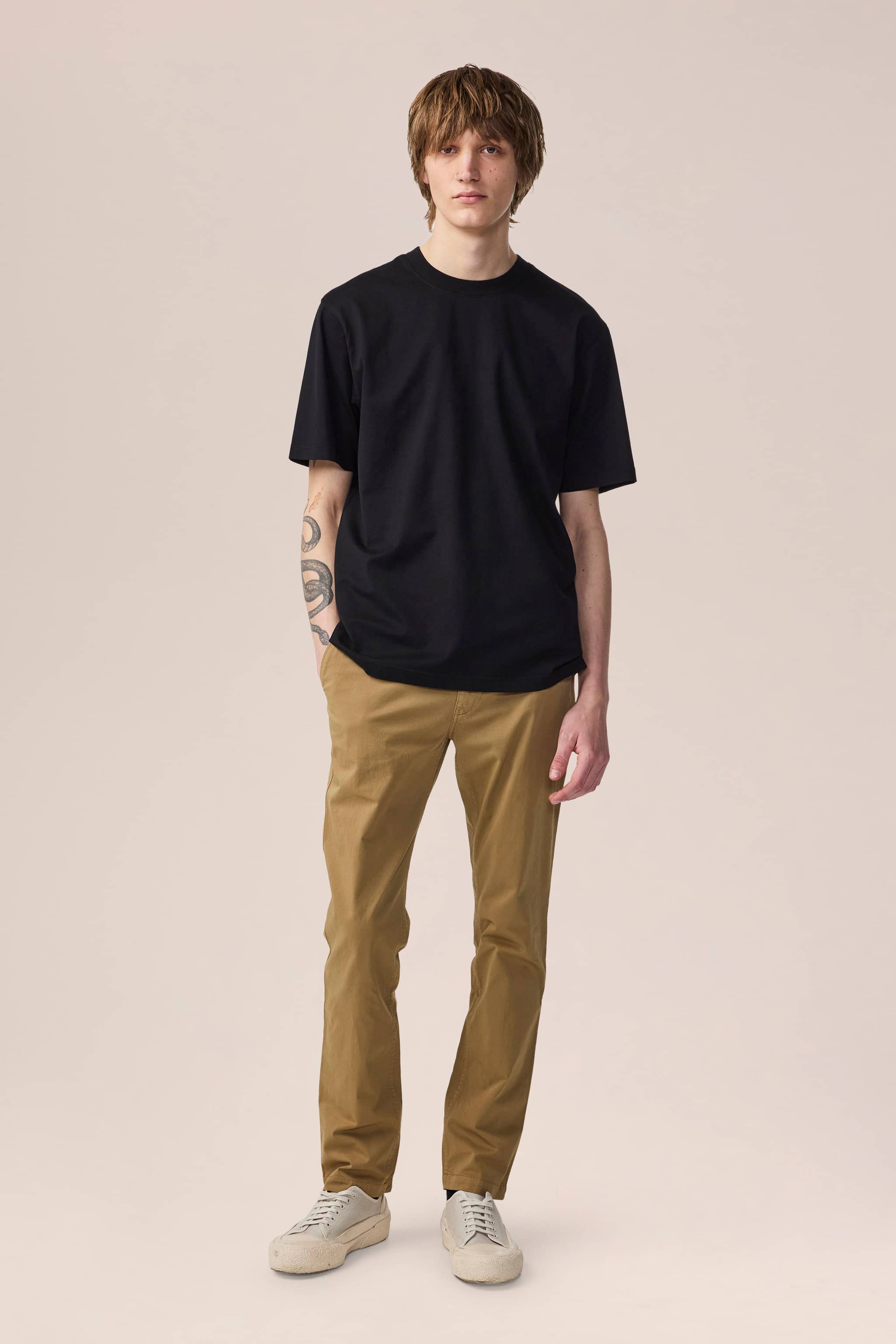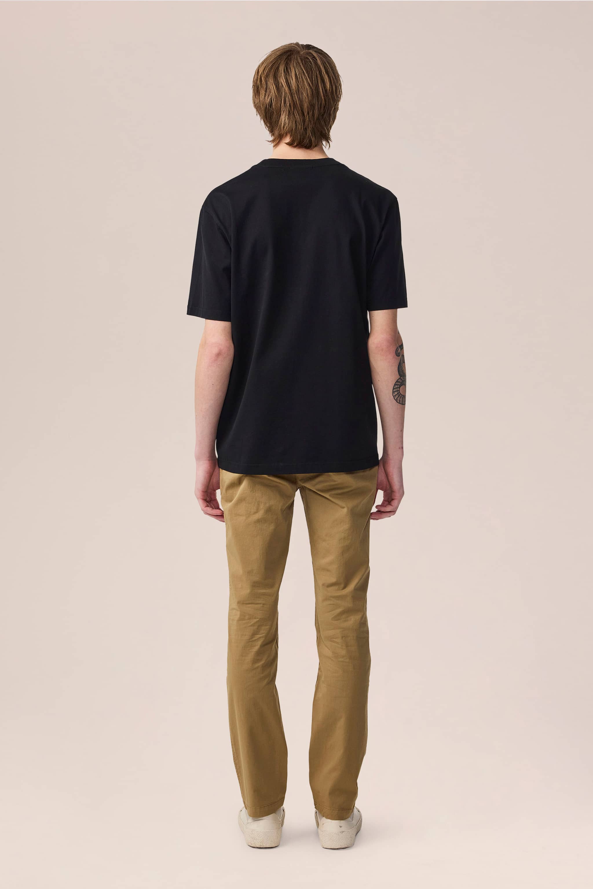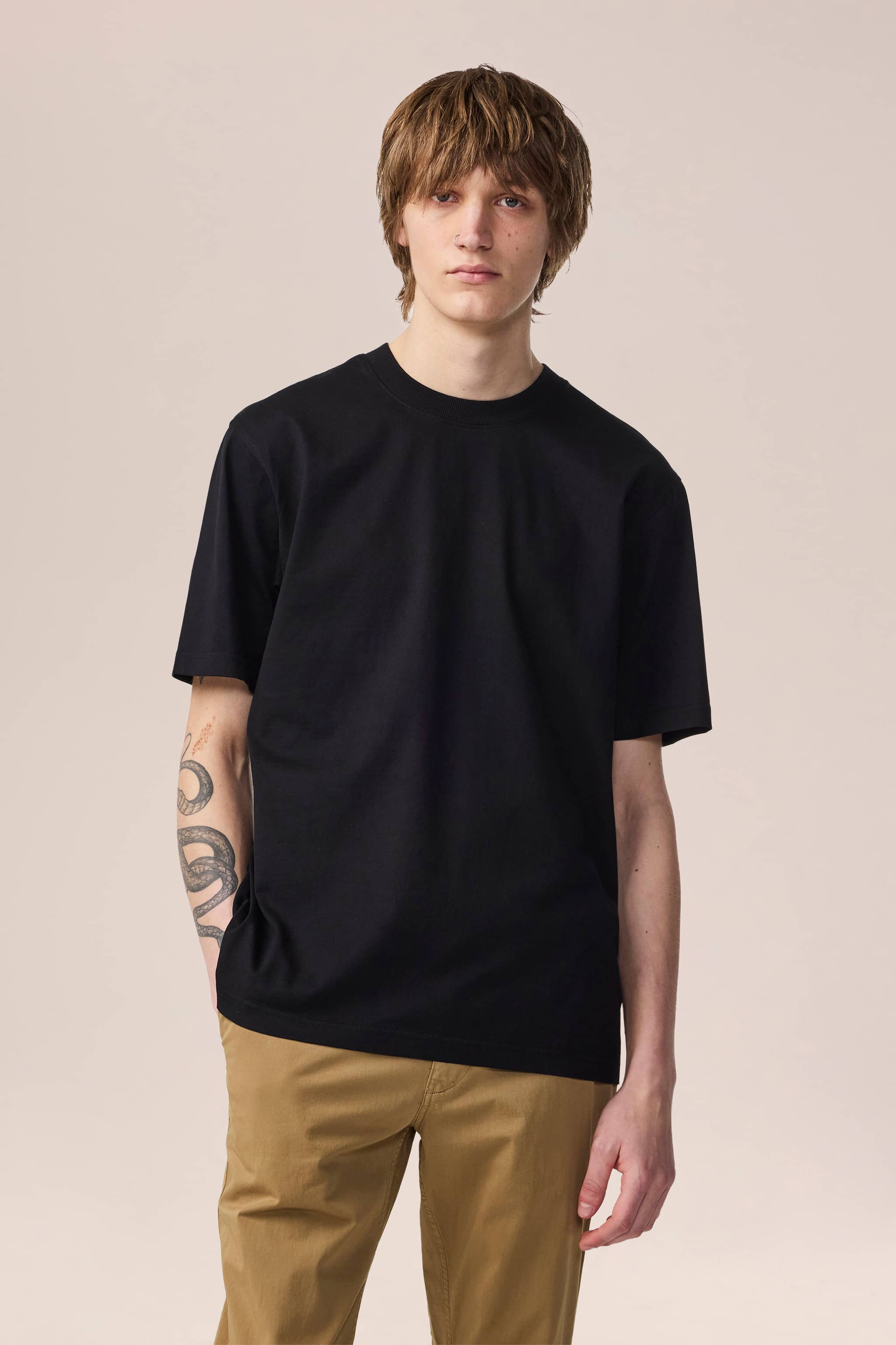 Casual tee made in a cotton jersey with twin needle stitching throughout and a rib detail along the neckline.