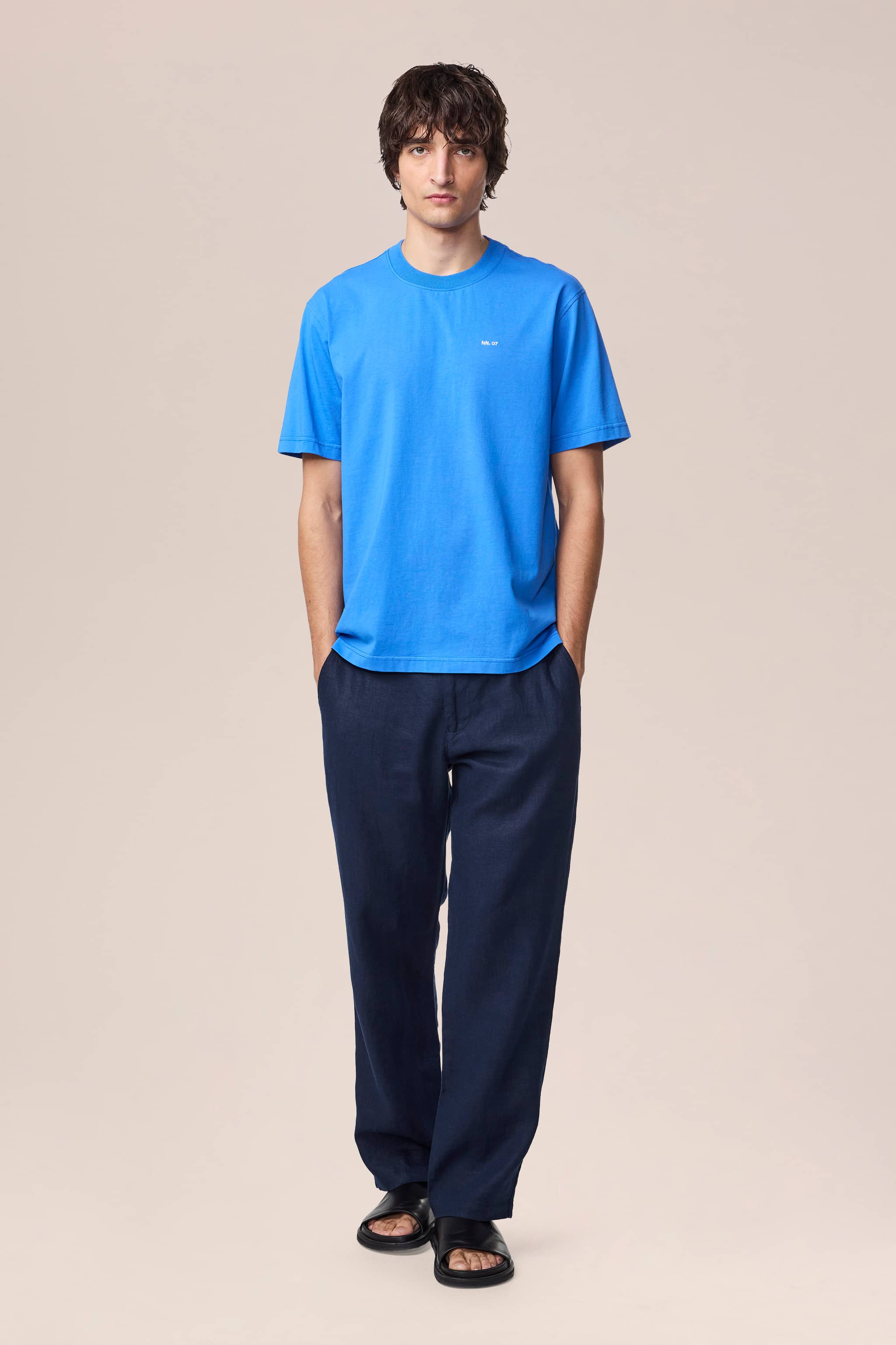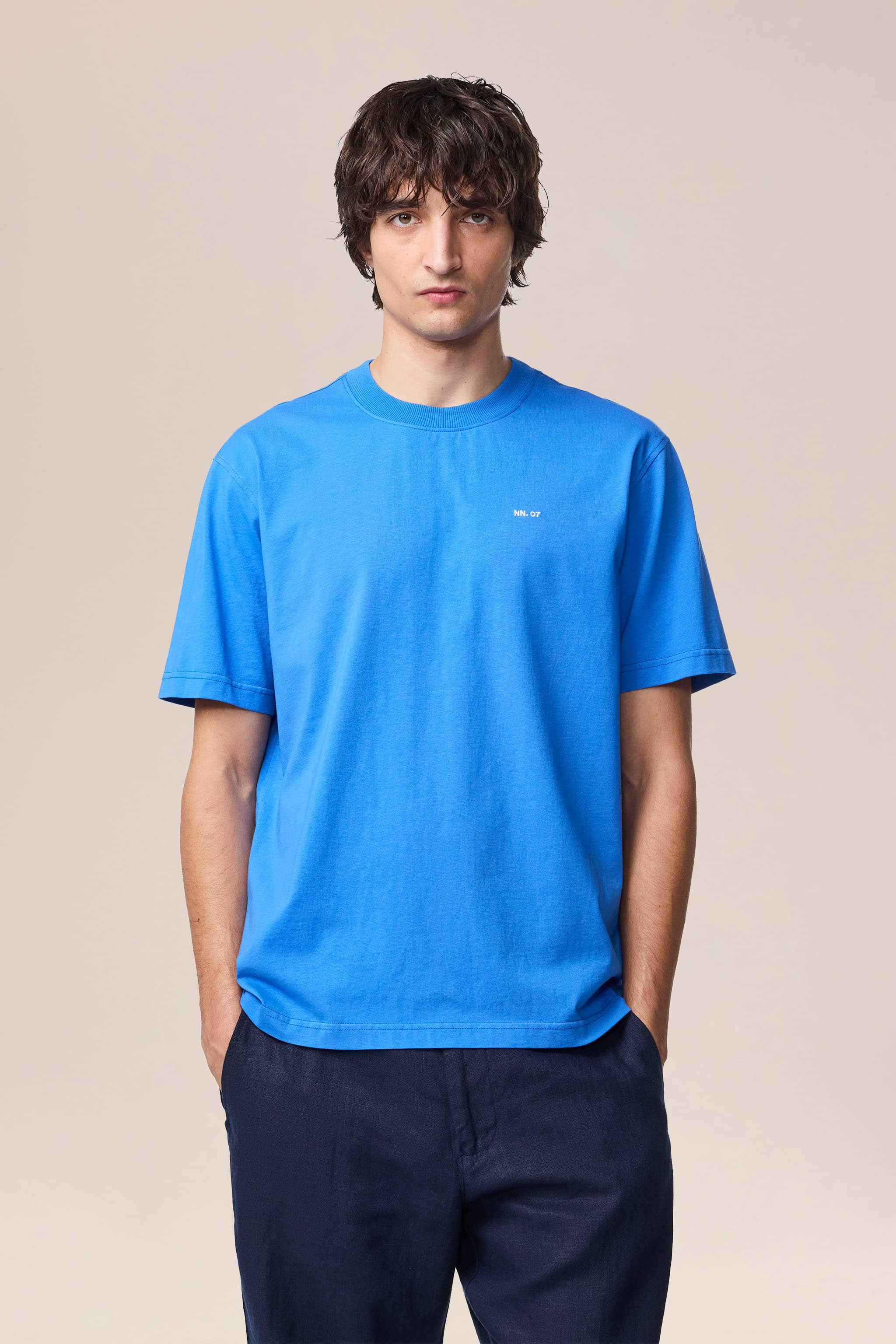 Casual tee made in a fine Pima cotton jersey with an NN.07 logo, twin needle stitching details and a neat rib along the neckline.