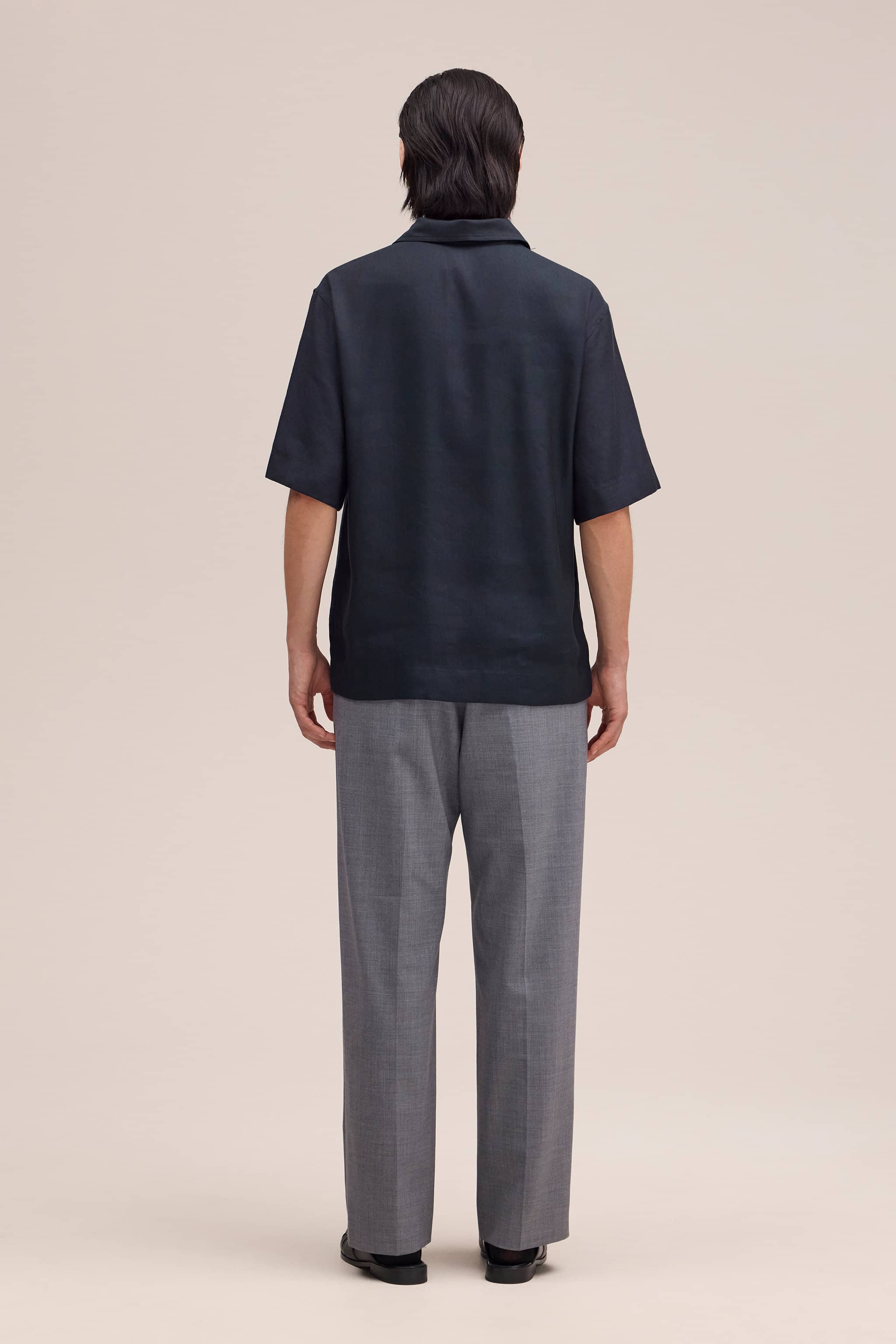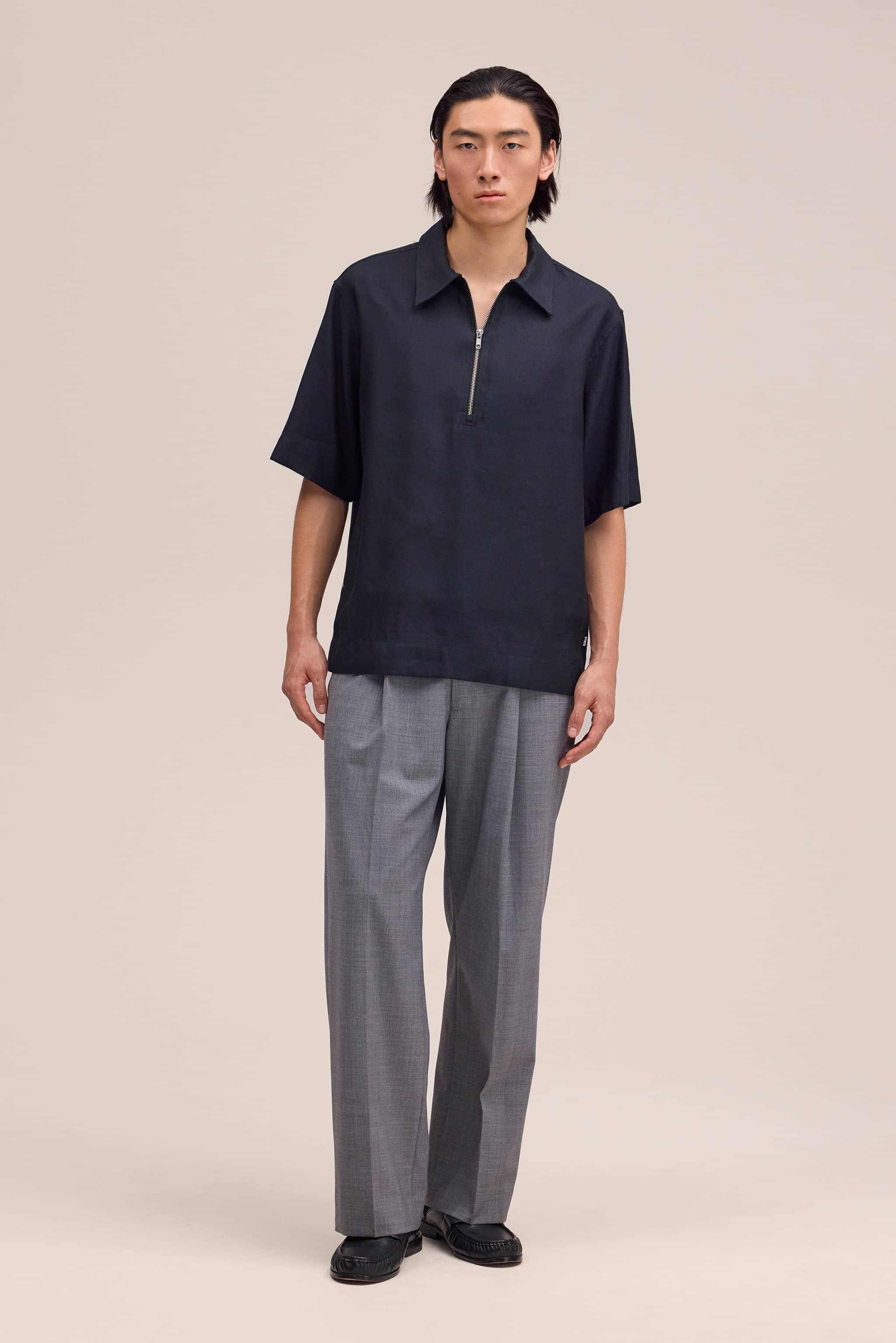 Relaxed fitted polo crafted in a drapey LENZING™ ECOVERO™ viscose and linen blend with a half-zip closure.