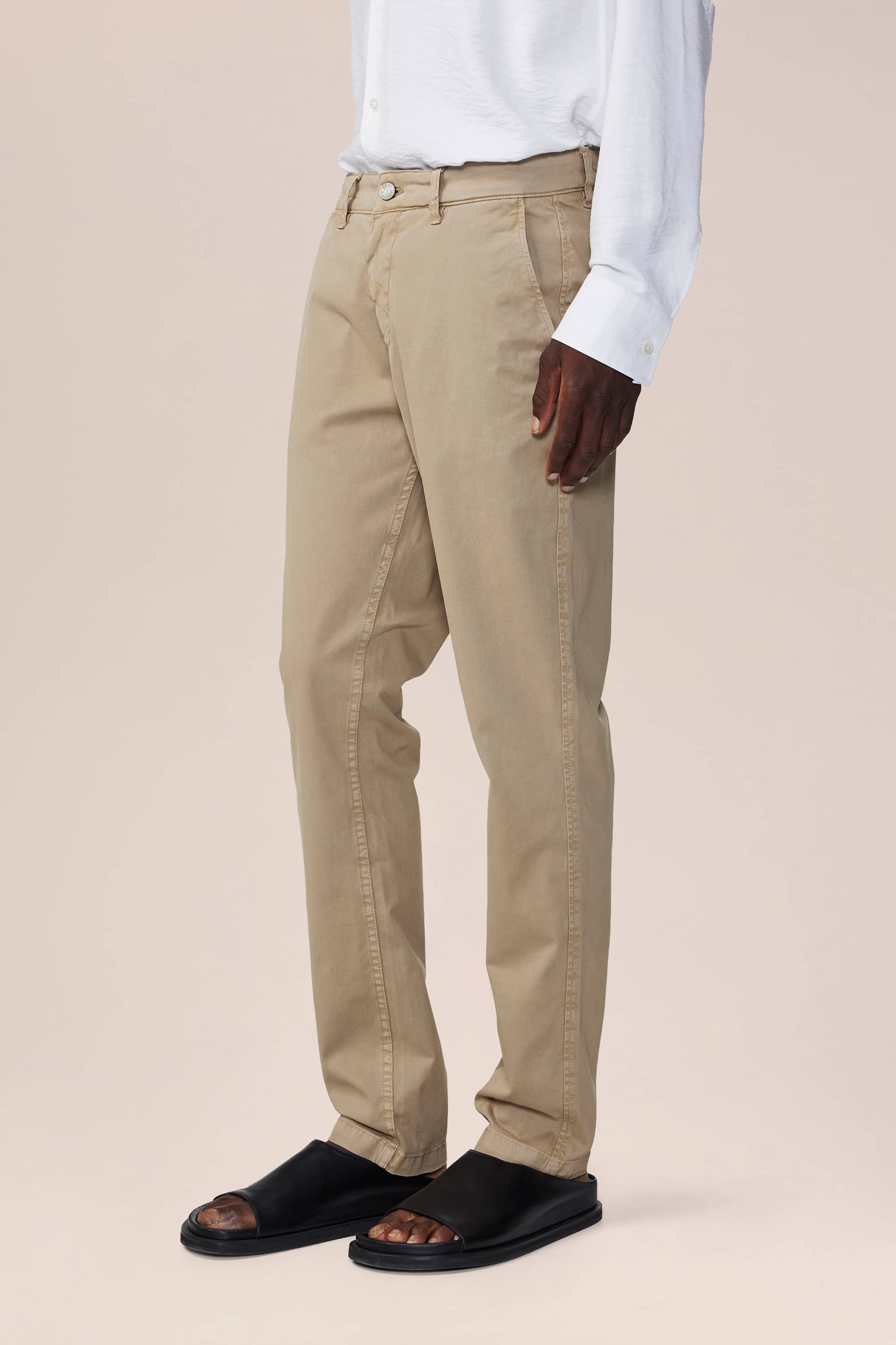 Regular fit chinos with a tapered leg in a Panama weave with a drapey handfeel and medium weight.