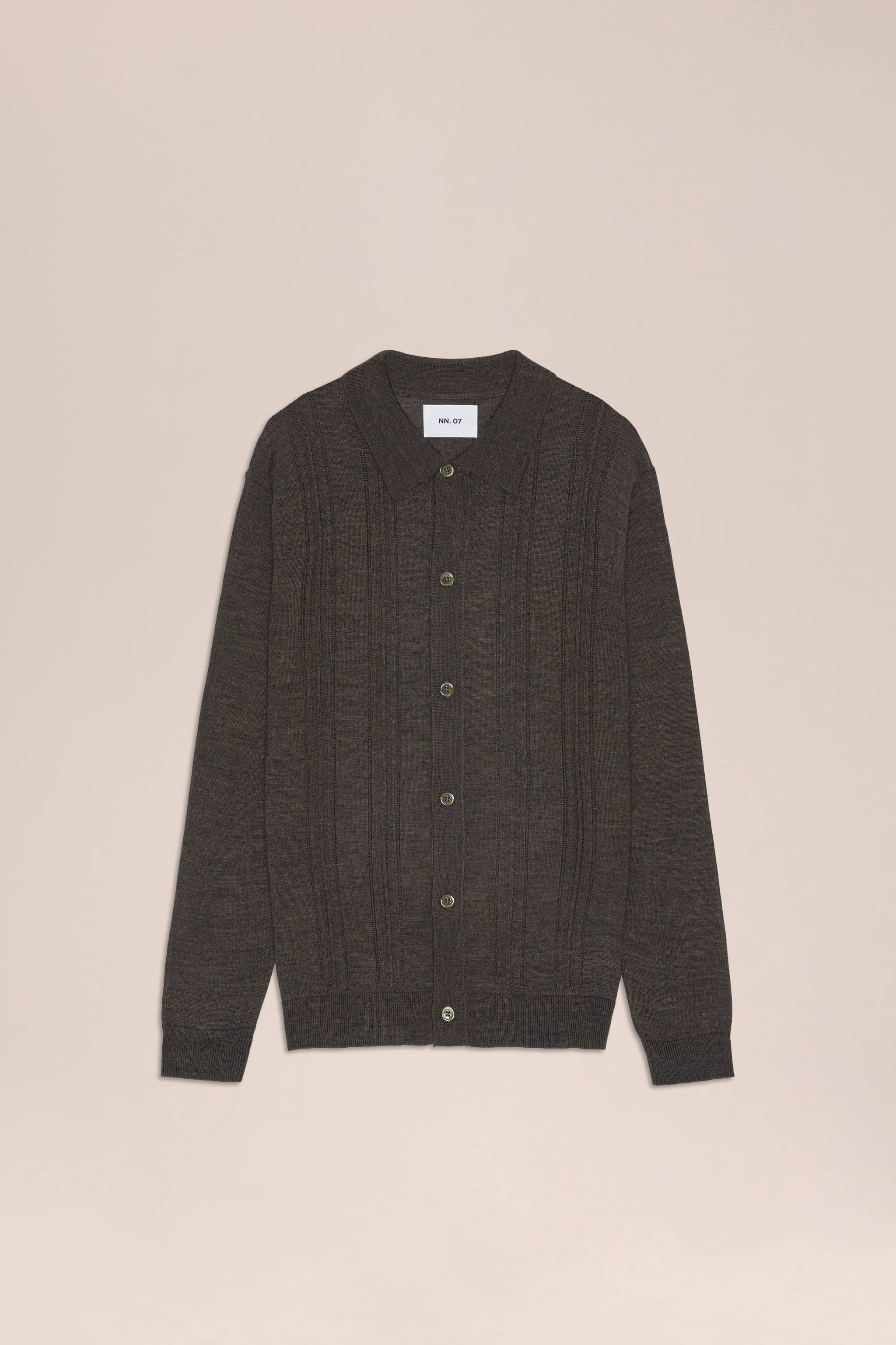 Polo cardigan crafted in a soft, certified wool blend, knitted in textured stitch.