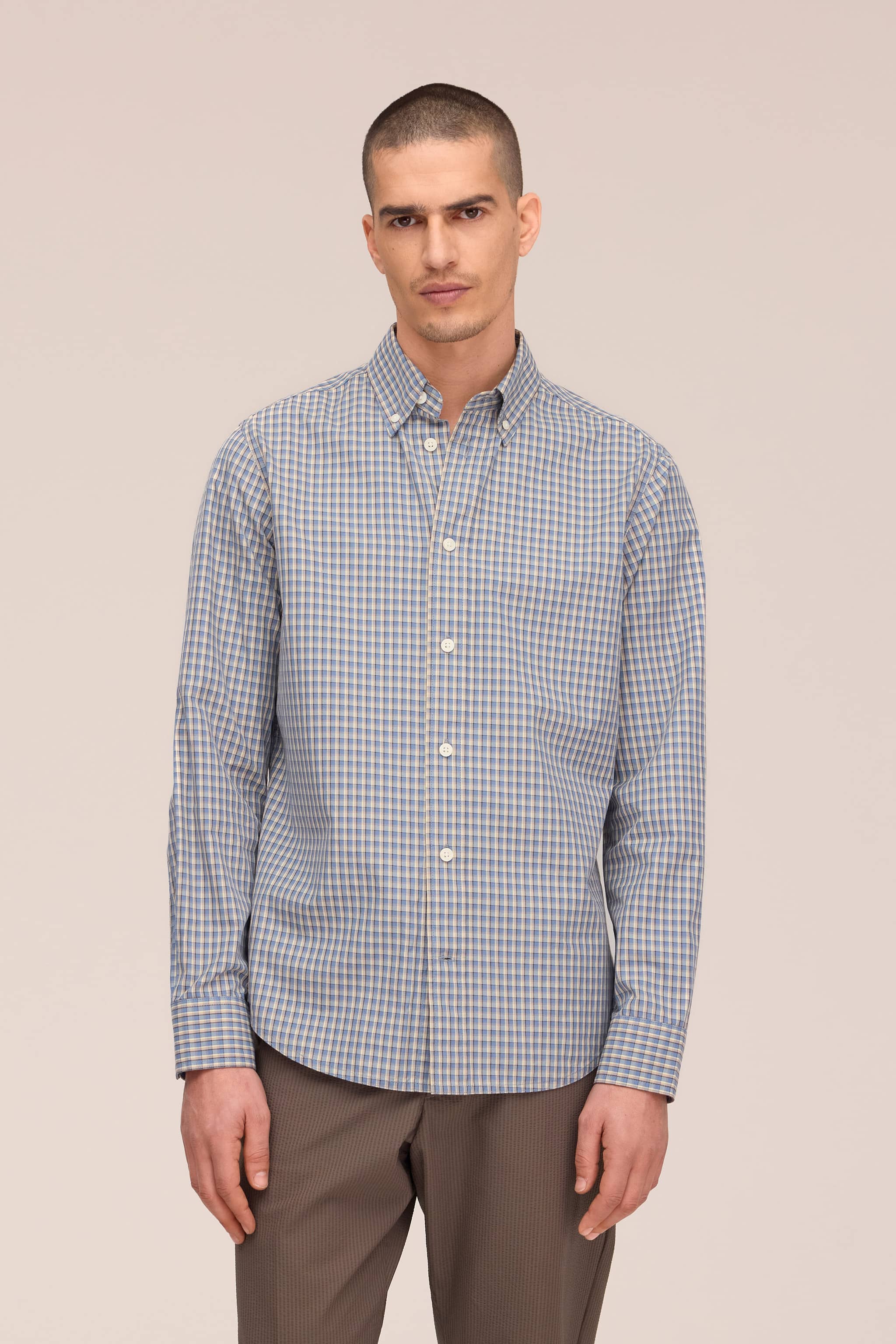 Shirt crafted in an organic cotton blend and woven in a compact twill weave.