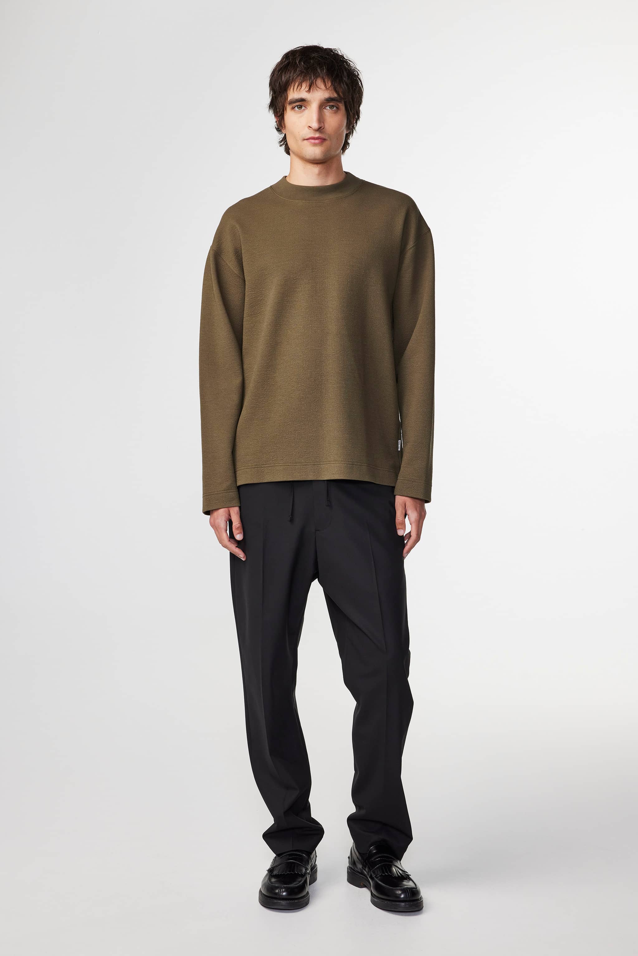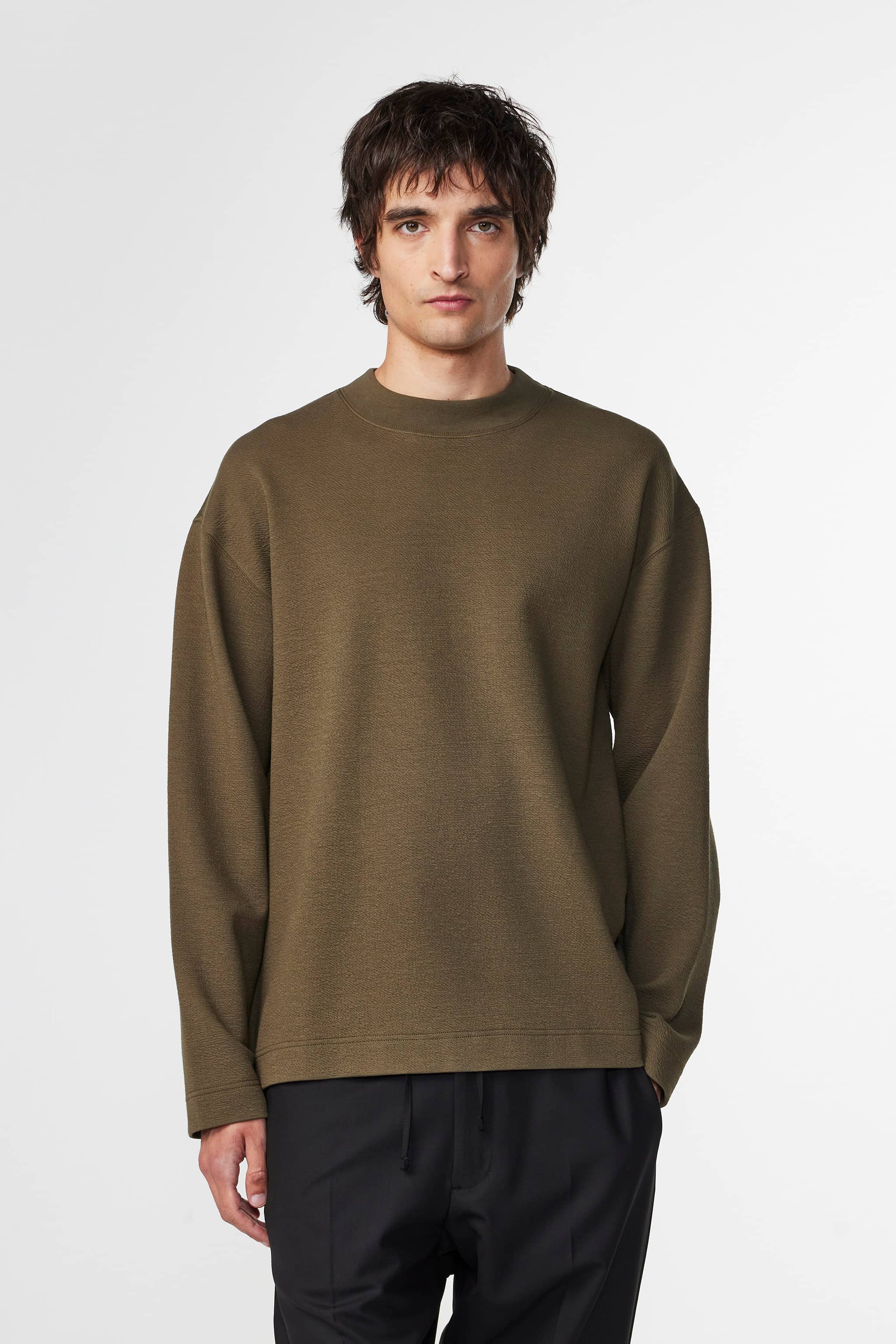Relaxed tee made in a soft organic cotton scuba jacquard blend. Designed with a wide rib at the neck.